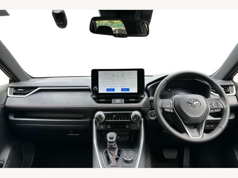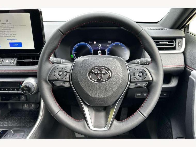 12.3" Digital Combimeter, Analog tachometer, Android Auto, Bluetooth system, Cyclist Detection, Digital speedometer, Drive mode selector, Driver attention alert system, eCall emergency call system, ECO-driving indicator, Electric power steering, EV audible alert, Front parking sensors, Full range intelligent adaptive cruise control, Hybrid system indicator, Lane departure alert with steering control, Lane trace assist, Lights on warning, Memory on adjustable speed limiter, MirrorLink, My T Connected services, Night Time Pedestrian Detection, Power boot opening and closing, Rear parking camera, Rear parking sensors, Remote boot door release in cabin, Remote boot door release in key, Road sign assist - RSA, Smart entry and push button start, Smartphone hazard lights notification, Tailgate, Toyota smart connect navigation, Traffic sign recognition, Trip computer, Voice control system, 6.6 kw fast charger, 7.5m cable with home charging plug, Vehicle Stability Control (VSC), 10.5" Toyota smart connect multimedia with wireless smartphone integration incl apple car play, 6 speakers, Auxiliary socket for external MP3 player, Digital audio broadcast (DAB)+, Gloss black surround on multimedia display, Multimedia Road Events, Rear USB connection, Toyota touch media system, USB in front armrest, Adaptive automatic high beam, Anti-jam protection on power windows, Auto dimming interior rear view mirror, Auto up and down function on power windows, Automatic headlights, Automatic wipers, Automatically retractable door mirrors, Black door moulding, Black front bumper, Black painted upper front grille, Black rear bumper, Black rear under-run, Black roof rails, Body colour door handles, Body colour rear roof spoiler, Body coloured door mirrors, Body coloured Shark-fin antenna, Chrome window surround, Dual exhaust pipes, Electric adjustable door mirrors, Electric heated door mirrors, Emergency brake-light signal (EBS), Follow me home headlights, Front wipers with variable intermittent facility, Honeycomb upper front grille, LED daytime running lights, LED dual beam projector headlights, LED front fog lights, LED front light guide, LED High mounted stop lamp, LED Indicators, LED rear brake lights, LED rear combination lights, PHEV badge in rear, Power front windows, Power rear windows, Privacy glass, Rear side wing doors, Rear windscreen defogger, Rear wiper, Silver front under-run, Smartphone remote power window operation, Trailer sway control, Turning signal integrated indicators in door mirrors, 1.5L front and rear bottle holder, 12 volt front socket, 12V power outlet - Boot, 220v power socket in boot, 2x Rear coat hooks, 3 rear headrests, 3 seat bench in 2nd row, 60/40 split fold rear seat back, Adjustable speed limiter switch on steering wheel, Array microphone, Black roof lining, Clean air filter, Cloth upholstery, Driver and front passenger personal light, Driver and front passenger Whiplash Injury Lessening seats, Driver and passenger seatback pockets, Driver and passenger sunvisors with illuminated vanity mirrors, Dual sided deck board in boot, Dynamic sports seats, Energy saving heat pump, Folding rear centre armrest, Front and rear cup holders, Front centre armrest, Front headrests, Front leather armrest, Front/rear roof mounted assist grips, Gloss black surround on centre console, Heated driver and front passenger seats, Heated rear seats, Illuminated entry system, Isofix child seat preparation, Leather gear shift with chrome surround, LED boot light, LED centre room light, Lockable glovebox, Manual telescopic and tilt 3-spoke nappa leather steering wheel, Manually reclining and sliding front passenger seat, Multimedia switches on steering wheel, Pollen filter, Power height-adjustable sliding reclining and lumbar support for driver seat, Rear console box, Rear door armrests, Rear passenger air vents, Rear view display in display audio screen with dynamic guide lines, Reclining rear seats, Remote dual zone automatic air conditioning, Retractable tonneau cover, Satin chrome interior door handles, Single front passenger seat, Sunglasses holder, Telephone and voice recognition switches on steering wheel, White ambient lighting in footwell, White ambient lighting on front cup holders, White ambient lighting on open tray, 3x3 point rear seatbelts, ABS/EBD, Acoustic vehicle alerting system, Adjustable front driver and passenger seat belt extender, Brake assist function, Brake hold function, Child proof door locks, Collision mitigation braking system, Driver/Front Passenger airbags, Driver/front passenger side airbags, Drivers knee airbag, Electronic parking brake, Electronic Stability Programme (ESP), Front and rear curtain airbags, Front and rear seatbelt reminder, Front passenger airbag detector, Hill start assist, Passenger airbag cut-off device, Pedestrian detection, Pre collision system, Seatbelt pretensioners with load limiters, Supplemental restraint system (SRS) airbags, Toyota safety sense 2, Traction control, Tyre pressure warning, Glass-breaking alarm sensors, Immobiliser, Intrusion alarm, Light - on and Key in reminder, Motion sensor alarm, Power door locks, Remote central locking, Smartphone remote door lock, Speed sensitive auto door locking, Tilt detection sensors, Black centre air vent surround, Gloss black centre console, Open tray on passenger dashboard, Soft-touch black upper dashboard with silver insert, Soft-touch texture on lower dashboard, 18" 5 spoke grey machined face alloy wheels, Full size spare wheel,