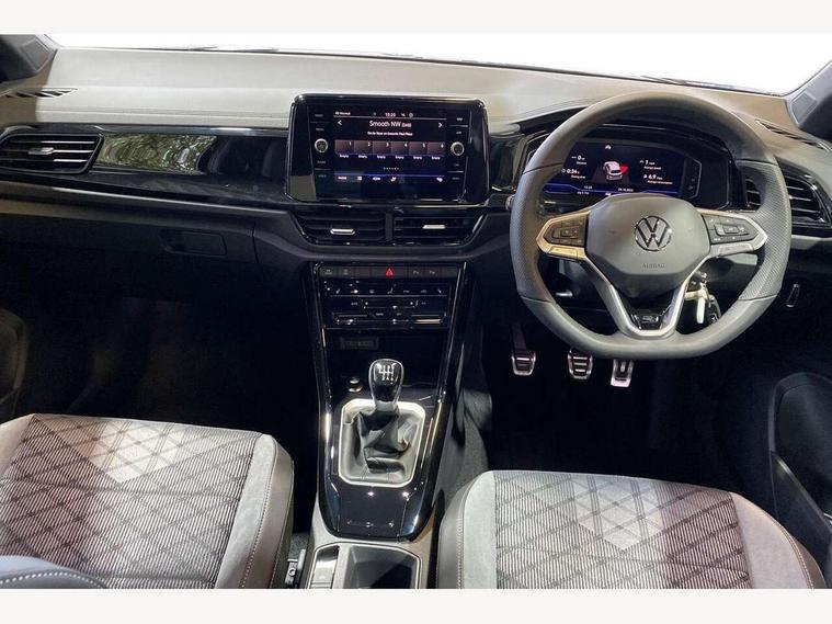 10.25" Digital cockpit pro, Advanced driver attention and drowsiness monitor, Emergency call service, Lane keeping system Lane Assist, Mobile phone interface, Modified key software - reduce switch off time for key status change to Long no motion, Online services, Park assist including front and rear parking sensors, Power assisted speed sensitive steering, Service interval indicator, Tailgate/trunk lid release from outside, Think blue trainer driver tips and journey analysis, Warning sound and light for front seatbelts unfastened, Wireless app connect, Battery regeneration during braking, Rear shock absorption chassis with increased ride height, Start/stop function with battery regeneration, DAB Digital radio, Diversity antenna for FM reception, Front and rear 6 speakers, Music playback - MP3, WMA and AAC files, Premium USB cable in choice of either Apple or Android smartphone compatibility, SD card slot, Simultaneous pairing of 2 compatible mobile devices, Title and cover art display, We Connect and We Connect Plus functionality, Auto dimming interior rear view mirror, Automatic hazard lights activation under emergency braking, Automatic headlight control with LED separate daytime running lights with coming/leaving home function, Dynamic cornering light, Electrically adjustable and heated door mirrors, Extended roof spoiler, Exterior mirrors aspherical on driver side, convex on front passenger side, External USB type C socket and charging sockets, Front windscreen wiper with intermittent wipe and 4 position delay, Heated rear window, Illuminated front grille, IQ LED matrix headlights, LED 3rd brake light, LED rear number plate lights, LED rear tail lights with dynamic turn signal, Light mode for poor weather, rain, fog or snow, Power windows with comfort operation and circuit breaker, R-Line design body coloured bumpers, Rain sensor, Rear exhaust tailpipe, Rear fog light on one side and reversing lights on both sides, Rear side wing doors, Rear wash/wipe with intermittent wipe setting, Remote electrically foldable door mirrors, puddle lights and reverse activated passenger's door mirror, 12V power socket in centre console, 3 rear head restraints, 3 seat bench in 2nd row, 4 load lashing points in luggage compartment, Air care climatronic air conditoning system with active combination filter and 2-zone temperature control, Artvelours cloth upholstery, Black roof lining, Chrome plated radiator grille inserts, air vent surrounds and light switch surrounds, Door and side trim panel with leatherette insert, Drawer under drivers seat, Driver seat height adjust, Driver's seat lumbar support, Front + rear carpet mats, Front centre armrest, Front comfort sports seats, Front cupholders x 2, Front footwell illumination, Front reading light, Front scuff plates with R Line logo, Front seat back storage pockets, Glove compartment door with light, Instrument lighting, white adjustable panel illumination, Interior ambient lighting and surround lighting, Interior light delay, Isofix child seat preparation, Leather gearshift handle, Load-through provision with cup holder when folded down ('Unsplit rear seat bench, split folding backrest, with centre armrest), Luggage compartment lighting, Non-folding front passenger seat backrest, Passenger seat height adjuster, Passenger seat lumbar support, Single front passenger seat, Stainless steel pedals, Storage compartment in left and right luggage area, Storage compartment in rear doors, Storage compartments in driver and front passenger doors, Sunvisors with illuminated vanity mirrors, Variable boot floor, height adjustable and removable, Winter pack without heated windscreen washer jets - T-Roc, 3 point height adj front seatbelts + pretensioners, 3 point seatbelts in outer rear with ECE label, ABS, Child locks on rear doors, City emergency braking and pedestrian monitoring, Driver and front passenger airbag with front passenger airbag deactivation, Driver and front passenger safety-optimised head restraints, Drivers seatbelt reminder, Electronic parking brake, Electronic Stability Control (ESC) inc EDL (Electronic Differential Lock) and ASR (Traction Control), Front and rear passengers curtain airbag system including front side airbags, Front disc brakes, Hill start assist, Predictive pedestrian protection, Rear disc brakes, Two tone horn, Tyre pressure loss indicator, Volkswagen roadside assistance, Tool kit, Trims for alloy wheels, Tyre mobility kit including compressor and sealing foam,