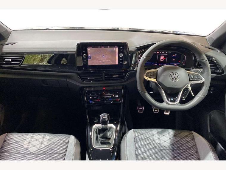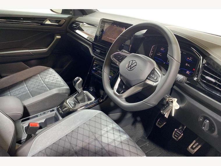10.25" Digital cockpit pro, Advanced driver attention and drowsiness monitor, Emergency call service, Lane keeping system Lane Assist, Mobile phone interface, Modified key software - reduce switch off time for key status change to Long no motion, Online services, Park assist including front and rear parking sensors, Power assisted speed sensitive steering, Service interval indicator, Tailgate/trunk lid release from outside, Think blue trainer driver tips and journey analysis, Warning sound and light for front seatbelts unfastened, Wireless app connect, Battery regeneration during braking, Rear shock absorption chassis with increased ride height, Start/stop function with battery regeneration, DAB Digital radio, Diversity antenna for FM reception, Front and rear 6 speakers, Music playback - MP3, WMA and AAC files, Premium USB cable in choice of either Apple or Android smartphone compatibility, SD card slot, Simultaneous pairing of 2 compatible mobile devices, Title and cover art display, We Connect and We Connect Plus functionality, Auto dimming interior rear view mirror, Automatic hazard lights activation under emergency braking, Automatic headlight control with LED separate daytime running lights with coming/leaving home function, Dynamic cornering light, Electrically adjustable and heated door mirrors, Extended roof spoiler, Exterior mirrors aspherical on driver side, convex on front passenger side, External USB type C socket and charging sockets, Front windscreen wiper with intermittent wipe and 4 position delay, Heated rear window, Illuminated front grille, IQ LED matrix headlights, LED 3rd brake light, LED rear number plate lights, LED rear tail lights with dynamic turn signal, Light mode for poor weather, rain, fog or snow, Power windows with comfort operation and circuit breaker, R-Line design body coloured bumpers, Rain sensor, Rear exhaust tailpipe, Rear fog light on one side and reversing lights on both sides, Rear side wing doors, Rear wash/wipe with intermittent wipe setting, Remote electrically foldable door mirrors, puddle lights and reverse activated passenger's door mirror, 12V power socket in centre console, 3 rear head restraints, 3 seat bench in 2nd row, 4 load lashing points in luggage compartment, Air care climatronic air conditoning system with active combination filter and 2-zone temperature control, Artvelours cloth upholstery, Black roof lining, Chrome plated radiator grille inserts, air vent surrounds and light switch surrounds, Door and side trim panel with leatherette insert, Drawer under drivers seat, Driver seat height adjust, Driver's seat lumbar support, Front + rear carpet mats, Front centre armrest, Front comfort sports seats, Front cupholders x 2, Front footwell illumination, Front reading light, Front scuff plates with R Line logo, Front seat back storage pockets, Glove compartment door with light, Instrument lighting, white adjustable panel illumination, Interior ambient lighting and surround lighting, Interior light delay, Isofix child seat preparation, Leather gearshift handle, Load-through provision with cup holder when folded down ('Unsplit rear seat bench, split folding backrest, with centre armrest), Luggage compartment lighting, Non-folding front passenger seat backrest, Passenger seat height adjuster, Passenger seat lumbar support, Single front passenger seat, Stainless steel pedals, Storage compartment in left and right luggage area, Storage compartment in rear doors, Storage compartments in driver and front passenger doors, Sunvisors with illuminated vanity mirrors, Variable boot floor, height adjustable and removable, Winter pack without heated windscreen washer jets - T-Roc, 3 point height adj front seatbelts + pretensioners, 3 point seatbelts in outer rear with ECE label, ABS, Child locks on rear doors, City emergency braking and pedestrian monitoring, Driver and front passenger airbag with front passenger airbag deactivation, Driver and front passenger safety-optimised head restraints, Drivers seatbelt reminder, Electronic parking brake, Electronic Stability Control (ESC) inc EDL (Electronic Differential Lock) and ASR (Traction Control), Front and rear passengers curtain airbag system including front side airbags, Front disc brakes, Hill start assist, Predictive pedestrian protection, Rear disc brakes, Two tone horn, Tyre pressure loss indicator, Volkswagen roadside assistance, Tool kit, Trims for alloy wheels, Tyre mobility kit including compressor and sealing foam,