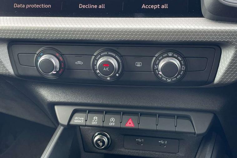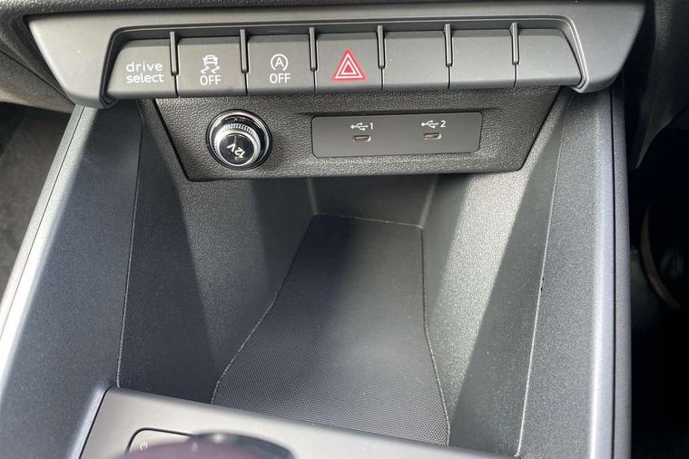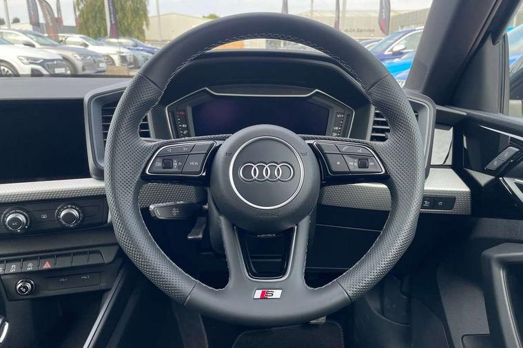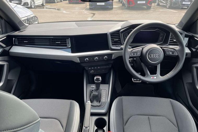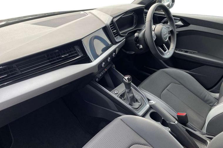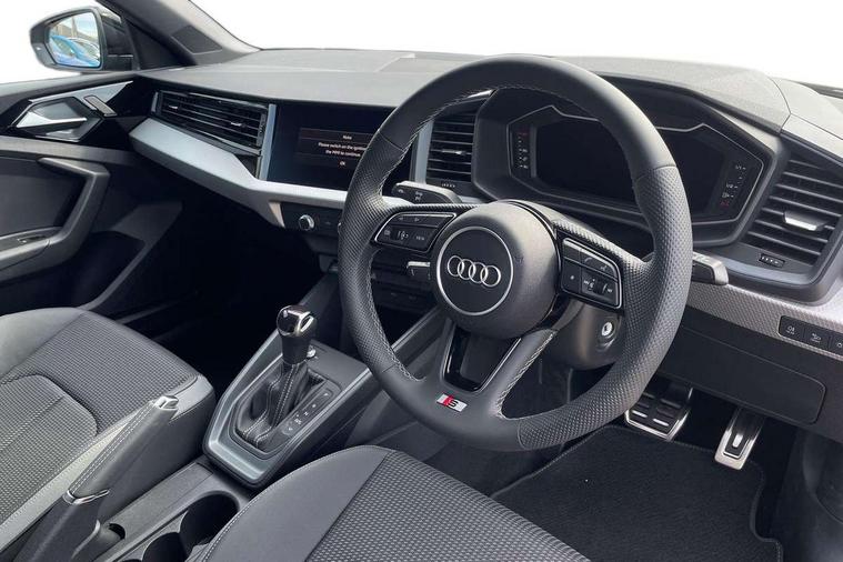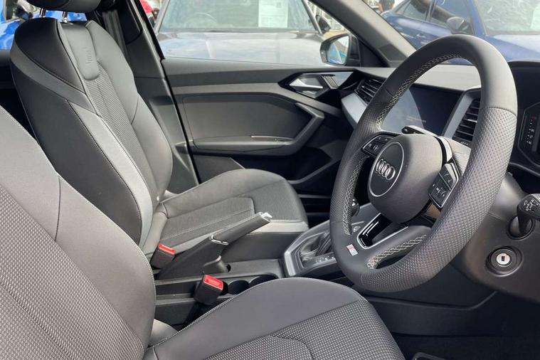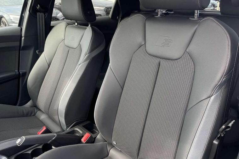 10.25" Digital instrument cluster display classis style instrument dials + speed, odometer, time, outside temperature, telephone menu + fuel level warning, Advanced driver attention and drowsiness monitor, Audi connect emergency call and service, Audi drive select, Audi remote connect and control, Audi smartphone interface, Bluetooth interface, Camera based traffic sign recognition, Cruise control, Driver's information system, Electromechanical power steering, Lane departure warning system, Rear parking sensor, Service interval indicator, Speed limiter, Start stop system with recuperation, Voice control system, Washer fluid level indicator, Sports suspension, 2 x USB type C connection points, 6 loudspeakers, DAB Digital radio, MMI radio plus with 10.1" colour MMI display screen and MMI touch, Auto dimming rear view mirror, Body coloured door mirrors, Door sill trims with aluminium inlays and S line logo in front, Electric front and rear windows, Electrically adjustable, heated, folding door mirrors with integrated LED side indicator, Front side air inlets in grained matt black and C frame in anthracite black, Headlight cleaning system, Heat insulating glass windscreen and side windows, Heated rear windscreen, High level LED brake light, LED daytime running lights, LED headlights with range control LED rear lights + dynamic rear indicators, Light and rain sensors, Privacy glass, Radiator grille and rear diffuser in matt anthracite black, Radiator protective grille frame in matt aluminium silver, Rear fog lights, Rear side wing doors, Rear wiper, S line badges on front wings, Side front spoiler lips in grained matt black, 12V socket in centre console with two cup holders, 3 rear seats with headrests, 3 seat bench in 2nd row, 3 spoke leather multi-function plus steering wheel features S badging and grips in perforated leather with contrast stitching, 40:60 Split folding rear seat or fully collapsed, Black cloth headlining, Front and rear velour black floor mats with contrast stitching in fine silver, Front head restraints, Front passenger seat, Height and reach adjustable steering wheel, Interior lighting includes roof module, front and rear reading lights and right luggage compartment lighting, ISOFIX child seat mounting for front passenger and outer rear seats including top tether attachment point of outer rear seats, Leather gear knob with aluminium trim, Leather handbrake grip, Manual air conditioning, Manual height adjustable for driver and front passenger seat, Manually adjustable lumbar support in front seats, Stainless steel pedals, Ambient lighting package - A1, Luggage compartment pack - A1, S line exterior styling pack - A1 Sportback, 3x3 point rear seatbelts, Audi pre-sense front with pedestrain and cyclist recognition, Brake assist function, Driver and front passenger airbag with front side and head airbags, Electronic Stability Control including ABS, EBD, ASR and EDL, Front passenger airbag deactivation switch, Hill hold assist, Manual rear child locks, Seatbelt height adjustment for front seats, Seatbelt monitoring, Tyre pressure loss indicator, Warning triangle and first aid kit, Anti theft alarm, Anti theft wheel bolts, Immobiliser, Remote control key with safelock, Aluminium trim for control switches, air vents and digital instrument cluster, Black dashboard, Silver grey inlays polygon structure in diamond paint finish, Structured grey accent surfaces insert of air vents, interior door handle recesses and centre console in quartz paint finish,