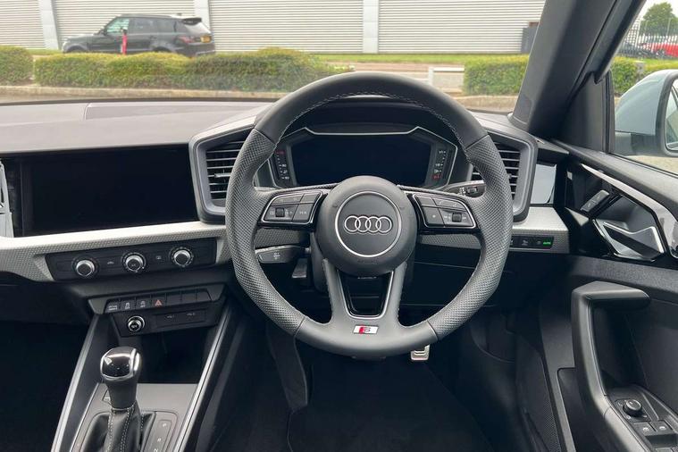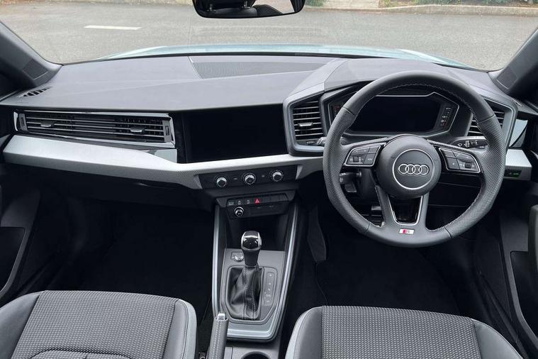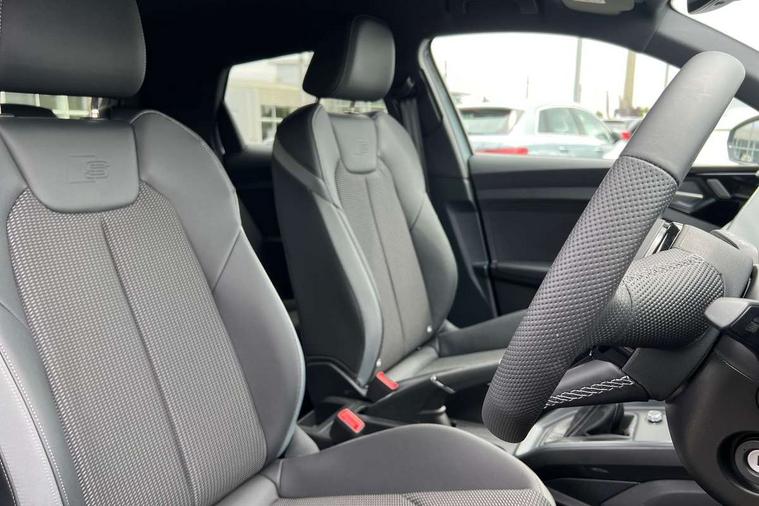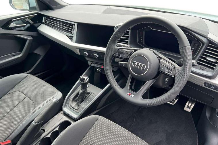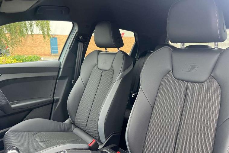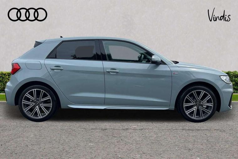 10.25" Digital instrument cluster display classis style instrument dials + speed, odometer, time, outside temperature, telephone menu + fuel level warning, Advanced driver attention and drowsiness monitor, Audi connect emergency call and service, Audi drive select, Audi remote connect and control, Audi smartphone interface, Bluetooth interface, Camera based traffic sign recognition, Cruise control, Driver's information system, Electromechanical power steering, Lane departure warning system, Rear parking sensor, Service interval indicator, Speed limiter, Start stop system with recuperation, Voice control system, Washer fluid level indicator, Sports suspension, 2 x USB type C connection points, 6 loudspeakers, DAB Digital radio, MMI radio plus with 10.1" colour MMI display screen and MMI touch, Auto dimming rear view mirror, Body coloured door mirrors, Door sill trims with aluminium inlays and S line logo in front, Electric front and rear windows, Electrically adjustable, heated, folding door mirrors with integrated LED side indicator, Front side air inlets in grained matt black and C frame in anthracite black, Headlight cleaning system, Heat insulating glass windscreen and side windows, Heated rear windscreen, High level LED brake light, LED daytime running lights, LED headlights with range control LED rear lights + dynamic rear indicators, Light and rain sensors, Privacy glass, Radiator grille and rear diffuser in matt anthracite black, Radiator protective grille frame in matt aluminium silver, Rear fog lights, Rear side wing doors, Rear wiper, S line badges on front wings, Side front spoiler lips in grained matt black, 12V socket in centre console with two cup holders, 3 rear seats with headrests, 3 seat bench in 2nd row, 3 spoke leather multi-function plus steering wheel features S badging and grips in perforated leather with contrast stitching, 40:60 Split folding rear seat or fully collapsed, Black cloth headlining, Front and rear velour black floor mats with contrast stitching in fine silver, Front head restraints, Front passenger seat, Height and reach adjustable steering wheel, Interior lighting includes roof module, front and rear reading lights and right luggage compartment lighting, ISOFIX child seat mounting for front passenger and outer rear seats including top tether attachment point of outer rear seats, Leather gear knob with aluminium trim, Leather handbrake grip, Manual air conditioning, Manual height adjustable for driver and front passenger seat, Manually adjustable lumbar support in front seats, Stainless steel pedals, Ambient lighting package - A1, Luggage compartment pack - A1, S line exterior styling pack - A1 Sportback, 3x3 point rear seatbelts, Audi pre-sense front with pedestrain and cyclist recognition, Brake assist function, Driver and front passenger airbag with front side and head airbags, Electronic Stability Control including ABS, EBD, ASR and EDL, Front passenger airbag deactivation switch, Hill hold assist, Manual rear child locks, Seatbelt height adjustment for front seats, Seatbelt monitoring, Tyre pressure loss indicator, Warning triangle and first aid kit, Anti theft alarm, Anti theft wheel bolts, Immobiliser, Remote control key with safelock, Aluminium trim for control switches, air vents and digital instrument cluster, Black dashboard, Silver grey inlays polygon structure in diamond paint finish, Structured grey accent surfaces insert of air vents, interior door handle recesses and centre console in quartz paint finish,