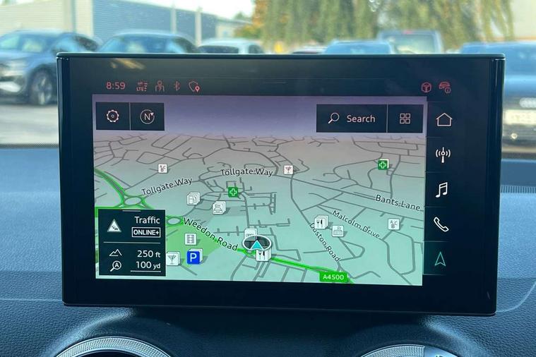 3D map display, Audi connect navigation and infotainment includes innovative services, Audi connect remote and control connects your vehicle to your smartphone, Audi drive select: S tronic - power steering assistance + engine + gearshift (modes: comfort, auto, dynamic, efficiency, individual), Audi smartphone interface - Apple carplay/Android Auto, USB connect, 2xSDXC card readers, voice control for navi, telephone, music and 3rd party apps, Audi virtual cockpit, Automatic start/stop system with recuperation, Bluetooth interface includes bluetooth audio streaming, Camera based traffic sign recognition, Cruise control, Distraction and Fatigue warning, E-call, Jukebox hard drive memory for music (10GB), Lane departure warning, MMI navigation plus with 8.8" touchscreen, Natural voice recognition, Power operated tailgate, Progressive steering, Rear parking sensors, Sport suspension, 6 passive loudspeakers, DAB Digital radio, USB type C port, Auto dimming rear view mirror, Black window trims, Body colour door mirrors, Electrically adjustable, folding, auto dimming and heated door mirrors with integrated LED side indicators, Front windscreen with grey tinted sunband, LED daytime running lights, LED headlights with dipped beam, high beam, position lights, indicators, LED rear lights, LED third brake light, Privacy glass - dark tinted rear and rear side windows from B-pillar backwards, Rear side wing doors, Rear wiper, S Line badges on the front wings, S Line body styling - front and rear bumpers, side skirts, radiator grille, rear diffuser insert and front air intakes, Variable front intermittent wipers, Wheel arch trims in manhattan grey, 12v socket in front, 3 seat bench in 2nd row, 3 spoke multi-function leather steering wheel with S badging, 4-way electric lumbar support for front seats including manual seat height adjustment for both front seats, 60/40 split folding rear seat bench, Black carpets, Black cloth headlining, Front and rear head restraints, Front centre armrest, Front sport seats, Front/rear floor mats, Height/reach adjust steering wheel, Illuminated door sill trims with S logo, ISOFIX child seat mounting in front passenger and rear outer seats, Manual air conditioning, Single front passenger seat, Stainless steel pedals, 3x3 point rear seatbelts, 6 airbags - Front, curtain and front side airbags, Electromechanical parking brake, Electronic stabilisation control including ABS, ASR and EDL, Front passenger airbag deactivation, Hill hold assist, Pre-sense front with pedestrian recognition, Seatbelt monitoring, Tyre pressure warning light with visual and acoustic warning, Warning triangle and first aid kit, Anti theft wheel bolts, Electronically operated child locks, Remote central door locking, Thatcham category 1 alarm, Aluminium interior element, Black dashboard, Gloss black centre console, Matt brushed aluminium trim inlays, Tool kit,