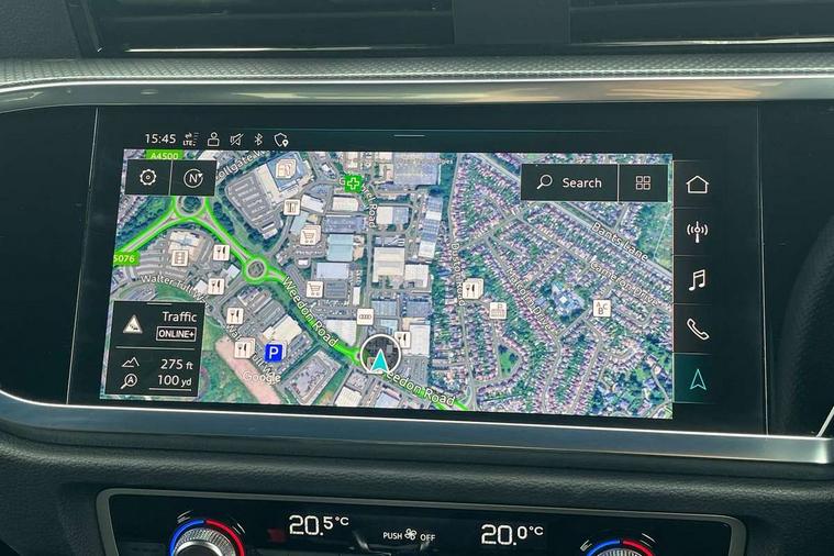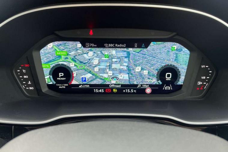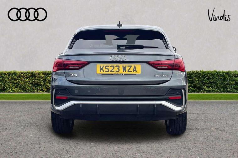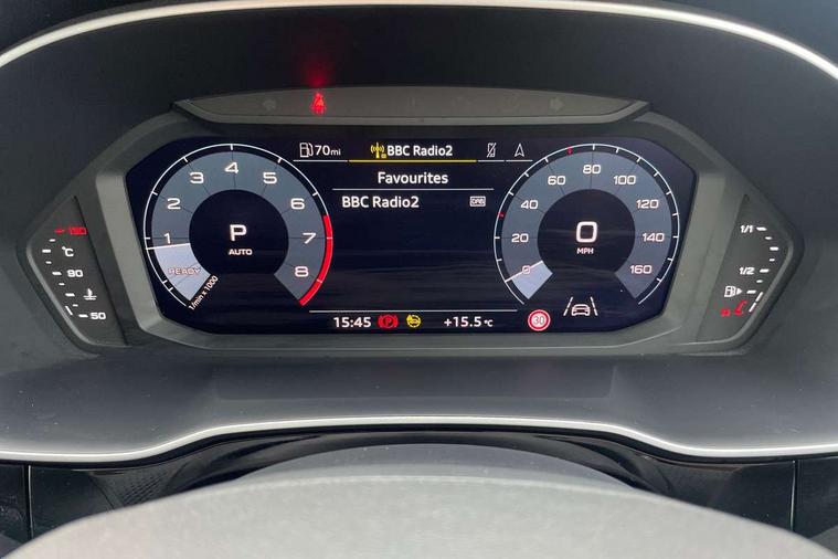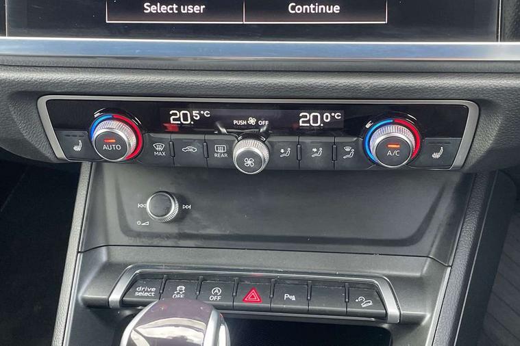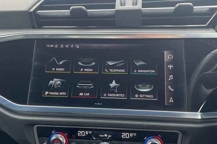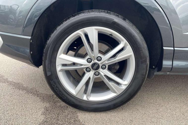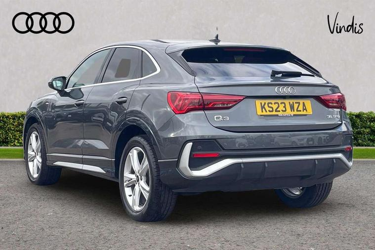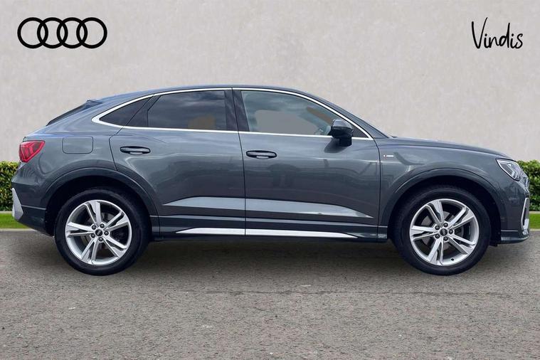 Audi drive select, Audi lane departure warning, Audi Virtual Cockpit - 10.25" display, Bluetooth interface, Camera based traffic sign recognition, Legal emergency call, MMI Navigation Plus with high resolution 10.1 inch touchscreen colour display, Power operated tailgate, Progressive steering, Service interval indicator, Smartphone interface includes wireless Apple carplay/Android Auto, Start stop system with recuperation, Voice control system with natural language interaction, Sports suspension, 2 USB-C ports with charge and data functions, 6 passive loudspeakers, DAB digital radio module, Acoustic windscreen, Aluminium window trim, Auto dimming frameless rear view mirror, Diffuser grille in grained matt black, Diffuser trim in selenite silver, Electrically folding, adjustable and heated door mirrors with integrated LED side indicators and kerb view function for passenger side, Front and rear electric windows, Front fog lights, Front side air inlets in selenite silver, Front underbody protection in manhattan grey paint finish, Grille surround in aluminium silver matt, High gloss black finish B and C pillars, LED Dynamic rear indicators, LED headlights with LED daytime running lights, LED rear lights, LED third brake light, Privacy glass dark tinted rear and rear-side windows (from B-pillar backwards), Radiator grille in anthracite black with inlay in matt aluminium silver, Rain and light sensors, Rear side wing doors, Rear underbody protection in matt black, Rear wiper, S line badges on front wings, S line front and rear bumpers and side skirts in contrasting Manhattan grey paint finish, Side skirt insert in matt Platinium grey, Variable front intermittent wipers, 12V socket in rear centre console, 3 seat bench in 2nd row, 3 spoke leather multifunction steering wheel features S badging and grips in perforated leather with contrast stitching, 40:20:40 folding with manual adjustment for 60:40 forwards/backwards position and backrest angle, Adjustable rear seat bench/backrest with centre armrest and cupholder, Black cloth headlining, Dual zone electronic climate control, Front and rear black floor mats with contrast stitching, Front and rear headrests, Front and rear roof module including reading lights, Front centre armrest, Glove compartment lighting, Height and reach adjustable steering wheel, Illuminated door sill trims with S logo, ISOFIX child seat mounting for front passenger with airbag deactivation and outer rear seat including top tether attachment point for outer rear seats, Luggage compartment light right in white, Luggage compartment sill protection in stainless steel, Manual front seats with height adjustment, Perforated leather gearknob, Single front passenger seat, Stainless steel pedals, Ambient lighting pack - Q3, Non smoking pack - Q3, 3x3 point rear seatbelts, 6 airbags - Driver, front passenger, curtain and side windows, Audi pre-sense front with pedestrain and cyclist recognition, Electrically operated child locks on rear doors, Electromechanical parking brake, Electronic stabilisation control including ABS, ASR and EDL, Front seatbelt reminder, Hill descent control, Hill hold assist, Pre sense basic, Seatbelt monitoring, Tyre pressure warning, Warning triangle and first aid kit, Anti theft alarm, Anti theft wheel bolts, Immobiliser, Remote central locking, Aluminium look interior elements, Black dashboard, Dark matt brushed aluminium inlay, Detail dashboard around MMI touch colour display in glass look, black with surround in aluminium look, Leatherette door armrest,