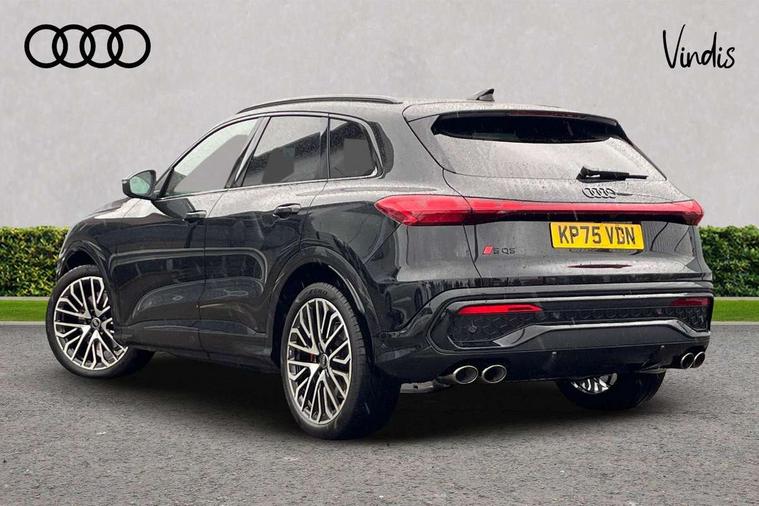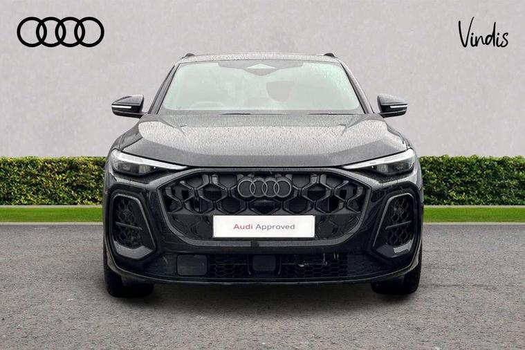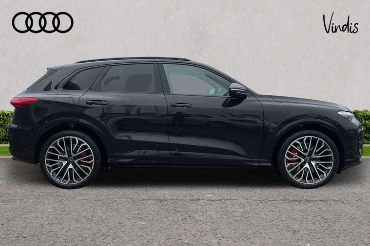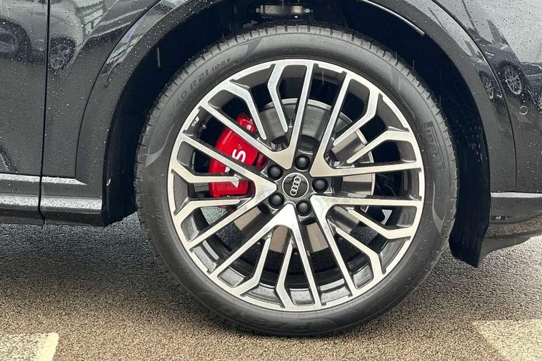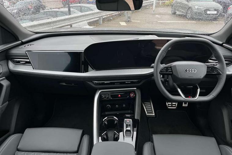 Adaptive cruise assist plus with steering intervention, Advanced driver attention alert, Audi application store, Audi connect emergency call and service, Audi digital key, Audi drive select, Audi smartphone interface, Audi virtual cockpit plus with 11.9" OLED colour display, Camera based traffic sign recognition, Fatigue monitor, Front cross traffic intersection assist, Garage door opener, Lane change assistant with exit warning system, rear cross traffic alert and rear turn assist, Lane departure warning with emergency assist, MMI 10.9" front passenger touch display, MMI navigation plus with high resolution 14.5" OLED touchscreen colour display, Park assist plus, Parking system plus with 360 display, PAS, Reversing camera, Swerve assist and turn assist, Top view camera, Traffic sign based speed limiter, S adaptive air suspension, 2 USB-C ports in both the front and rear, DAB Digital radio, Smartphone compartment with wireless charging, Acoustic glass for front door windows, Active digital light signatures - Six additional combinations of active daytime running light signature, Auto dimming rear view mirror, Coming/leaving home lighting function, Digital OLED tail lights including communication light, Electrically adjustable heated and folding + automatically dimming exterior mirrors, Exhaust tailpipes in dark chrome, Front and rear electric windows, Front door sill trims with aluminium inlays, illuminated with 'S' logo, Full body paint finish, Headlight cleaning system, Heated rear window, High beam assist, High gloss window surrounds, Inlay and front air inlets in matt anthracite chrome, Logo projection light in exterior mirrors, Matrix LED headlights, Memory function for door mirrors, Privacy glass, Projection light for rear window, Radiator grille in phantom black, Rear and side windows with heat insulating glass, Rear honeycombe grille in matt black with inlay in matt anthracite chrome, Rear side wing doors, Rear wash/wipe, Red S rhombus badging with 'S' lettering on rear, S exterior styling, Towbar preparation, Windscreen with acoustic glazing, 3 rear head restraints, 3 seat bench in 2nd row, 3 spoke leather steering wheel with multi-function buttons with touch control, flattened on top and bottom, with S badging and contrast stitching, 40:20:40 split folding rear seat bench with centre armrest and cup holders, Comfort centre armrest, Deluxe 3 zone electronic climate control, Electric steering wheel adjustment, Electrically adjustable front seats with memory function for driver's side, Front and rear floor mats, Front seat ventilation, Front sport seats with integrated head reastrains, Headlining in black cloth, Heated front seats, Heated outer rear seats, Heated steering wheel, i-Size child seat mounting on the front passenger side and outer rear seats, i-Size and top tether on the outer rear seats, Increased charging capacity for USB ports 2X100 Watts in rear, 2X60 Watts in front, Interior trim in aluminium look, Luggage compartment lid, electrically opening and closing, Perforated fine nappa leather with diamond stitching incl. ventilation and massage function for front seats, Pneumatically adjustable lumbar support with massage function for front seats, S embossed logo on front sport seats, Single front passenger seat, Softwrap in Dinamica, Stainless steel pedals and footrest, Steering wheel grips in perforated leather and shift paddles, Ambient lighting package plus - Q5, Black styling package plus - Q5, Sound and Vision pack - Q5, Storage and luggage compartment pack - Q5, 3x3 point rear seatbelts, ABS, Acoustic vehicle alerting system, Convenience key with safelock, Driver and front passenger airbag with passenger airbag deactivation, Electric child safety locks, First aid kit with warning triangle and high visibility vests, Front emergency brake assist, Front side airbags with head airbag system and front interaction airbag, Hill hold assist, Occupant detection in rear seat area, Proactive passenger protection system for front, sides and rear, Red brake calipers, Side airbags in front and rear with head airbag system and front interaction airbag, Tyre pressure loss indicator, Anti theft alarm, Anti-theft wheel bolts, Remote control key with SAFELOCK and keyless go, Accent surfaces and control buttons in gloss black, Black dashboard with contrast stitching, Steel grey seat stitching, Upper and lower interior elements in dinamica microfiber, Tyre repair kit,