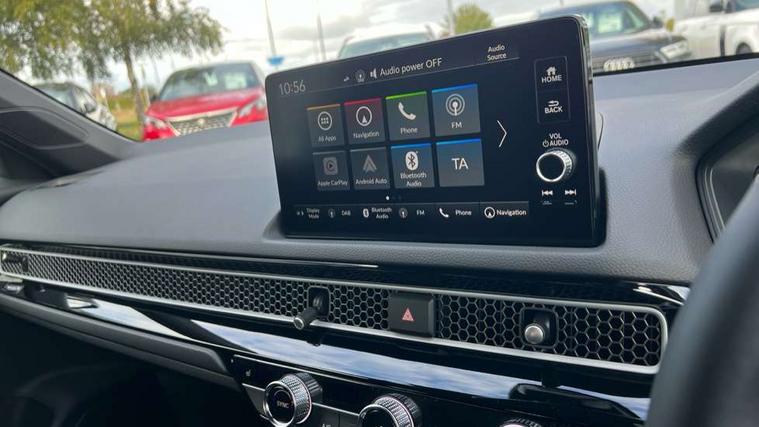 7" Multi information display screen, Adaptive cruise control, Adaptive motion for electric power steering, Adjustable speed limiter, Agile handling assist, BLIS (Blind Spot Information System) with Cross Traffic Monitor, Bluetooth hands free telephone connection, Driving modes, Economy mode, Electric power steering wheel with variable gear ratio steering, Emergency call service, Emergency stop signalling system, Forward collision warning, Front and rear parking sensors, Honda CONNECT with Navigation 9" touchscreen, AM/FM/DAB, Apple Carplay and Android Auto, live traffic info, Honda sensing, Idle stop, Intelligent speed limiter, Lane departure warning system, Lane keep assist, Low speed following, Power meter, Rear parking camera, Road departure mitigation, Tailgate, Traffic jam assist, Traffic sign recognition, Wireless apple carplay, Vehicle stability assist, 'Shark fin' mobile antenna, 2x USB Front socket (1 data & 1 charge), 8 Speakers, Digital Audio Broadcast (DAB) Tuner, Front tweeters, Steering wheel mounted audio controls, Aspherical driver door mirrors, Auto headlight adjuster, Auto headlights, Automatic coming/leaving home lighting function, Automatic rain sensing wipers, Body colour door handles, Chrome window garnish, Electric adjustable heated door mirrors, Electric front and rear windows, Electrically folding door mirrors, Headlight extension black, High beam assist, High level LED brake light, LED daytime running lights, LED front turn type, LED Headlights, LED rear lights, Material finish grille, Pop up hood, Privacy glass, Rear side wing doors, Rear wiper, Single hidden exhaust pipe, Variable front intermittent wipers, 3 seat bench in 2nd row, 60/40 split folding rear seat, Cargo accessory power socket, Cargo net hooks, Driver and front passenger seat armrests, Driver's electric lumbar adjustment, Driver's seat height adjustment, Dual climate control air conditioning system, Fabric upholstery, Front accessory power socket, Front map lights, Front/rear courtesy lights, Glovebox light, Heated front seats, Hybrid emblem, Isofix points/i size, Leather steering wheel, Meter Illumination white, Passenger seat back pocket, Platinum chrome interior door handles, Rear head restraints, Rear reading lights, Rear seat centre armrest, Single front passenger seat, Sunvisors with illuminated vanity mirrors, Tilt/telescopic adjustable steering wheel, Tonneau cover, Trunk light, USB Rear number 2 x charge, White ambient roof light, 3x3 point rear seatbelts, ABS+EBD+Brake assist, Airbags - driver and front passenger, Airbags - Knee (AS), Airbags - Knee (DR), Anti-whiplash front headrests, Brake hold function, Collision mitigation braking system, Collision mitigation throttle control, Deflation detection system, Driver SRS airbag (single stage inflation), Electronic parking brake with auto hold, Front and rear curtain airbags, Front and rear seat belts with emergency locking retractor (ELR), Front centre airbag, Front side airbags, Hill start assist, Low speed brake system, Manual child lock in rear doors, Passenger airbag deactivate switch, Rear airbags, Regenerative braking/deceleration paddle control, Immobiliser, Mirrors and windows key fob, Remote central locking with 2 jack knife keys, Security alarm, Selectable door unlock, Smart entry + Smart start, Superlocking, Tilt sensors, Ultrasonic security sensor, 17" 2 tone diamond cut alloy wheels, Tyre repair kit,