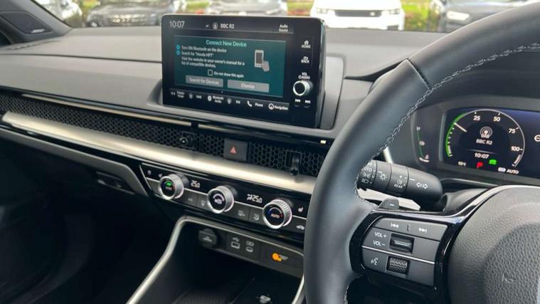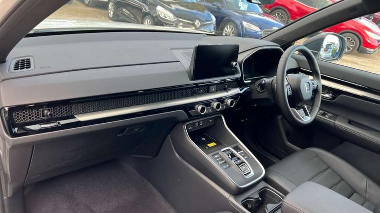 10.2" Multi information display, 4 x front 4 x rear 4 x side parking sensors, Active lane change assist, Adaptive cruise control with Cornering speed assist, Adjustable speed limiter, Agile handling assist, BLIS (Blind Spot Information System) with Cross Traffic Monitor, Bluetooth hands free telephone connection, Crossing traffic warning front, Drive Mode (EV, Econ, Sport, Normal, Snow, Tow), Driver attention monitoring system, E-call, eCall emergency call system, Electric power steering, Emergency stop signalling system, Forward collision warning, Handfree power tailgate with kick sensor and walk away close, Head up Display, HEV mode, Honda 360 sensing, Honda CONNECT navigation with My Honda+ 9" touchscreen, AM/FM/DAB, Apple Carplay and Android Auto, live traffic info, Honda parking pilot, Intelligent speed limiter, Lane change collision mitigation, Lane departure warning system, Lane keep assist system, Lane watch, Lead car departure notification system, Low speed following, Power meter, Road departure mitigation, Traffic jam assist, Traffic sign recognition, Wireless apple carplay, Wireless charging, Adaptive performance damper, Vehicle stability assist, 12 speakers, 1X USB (A/2.5A) and 1x Charger (C/3A) on Front, Bose premium sound system, Centre speakers, DAB+ radio, Dashboard centre speaker, Front tweeters, Rear USB 2x Charger (C/3A), Steering wheel mounted controls, Subwoofer, Active cornering lights, Adaptive driving beam, Auto dimming rear view mirror, Auto headlight adjuster, Auto headlights, Auto wipers, Black door mirror caps, Black paint + exculsive grille, Black Shark-fin antenna, Body colour bumpers, Body colour door handles, Body colour plus black colour roof spoiler, Electrically adjustable and heated door mirrors, Electrically folding door mirrors, Exhaust pipe finisher, Exterior mirror tilt for reverse, Front and rear electric windows, Front LED Indicator lights, Front turn type led with sequential, Headlight auto on/off timer, High gloss black window garnish, LED 3rd brake light, LED daytime running lights, LED front fog lights, LED Headlights, LED rear lights, Multi view camera system in door mirrors, Panoramic opening glass sunroof, Privacy glass, Rain sensor, Rear side wing doors, Rear wiper, Roof rails, Trailer stability assist, Welcome home function, 3 seat bench in 2nd row, 4 way driver lumbar support, 4 way electrically adjustable passenger seat without height adjust, 60/40 split folding rear seat, 8 way electrically adjustable drivers seat + mirror memory, Accessory sockets in Front & Trunk, Air conditioning - Rear vent, Ambient light in roof, Cargo net hooks, Courtesy lights, Dark roof lining, Driver and front passenger seat armrests, Driver/passenger front seatback pockets, Driver/passenger sunvisors and vanity mirrors, Driver/passenger sunvisors with illuminated vanity mirrors, Dual zone automatic climate control, Film layered honeycomb metal interior panels, Footwell ambient interior light front and rear, Front and rear ambient light (door handle&door line) and front cup holder, Front centre armrest, Front map lights, Front ventilated seats, Genuine leather steering wheel, Heated front seats, Heated rear seats, Heated steering wheel, Hybrid emblem, I-Size ISO Fix Points, Instrument panel with garnish wood film, Leather upholstery, Luggage floor box, Meter illumination, Platinum chrome interior door handles, Rear centre armrest, Rear headrests, Rear reading lights, Reclining rear seats, Single front passenger seat, Sport pedals, Sunglasses holder with mirror, Synthetic headrest, Tilt/telescopic adjustable steering wheel, Tonneau cover, Trunk light, Exclusive styling with sport paint pack - CR-V, 5 x 3 point seatbelts, ABS/EBD, Anti-whiplash front headrests, Brake assist function, Collision mitigation braking system, Deflation detection system, Driver airbag, Driver SRS airbag (single stage inflation), Electronic parking brake with auto hold, Front and rear collision mitigation throttle control, Front and rear curtain airbags, Front and rear seat belts with emergency locking retractor (ELR), Front centre airbag, Front passenger airbag, Front side airbags, Hill descent control, Hill start assist, Knee airbags (DR) and (AS), Low speed brake system, Manual child lock in rear doors, Paddle deceleration control, Passenger SRS airbag with cut off switch, Rear side airbags, Honda super locks, Immobiliser, Mirrors and windows key fob operation, Remote central locking with 2 key fobs, Security alarm, Selectable door unlock, Smart entry + Smart start, Tilt sensors, Ultrasonic security sensor, Flat tyre solution temper tyre/repair kit,