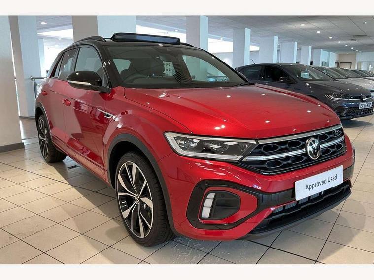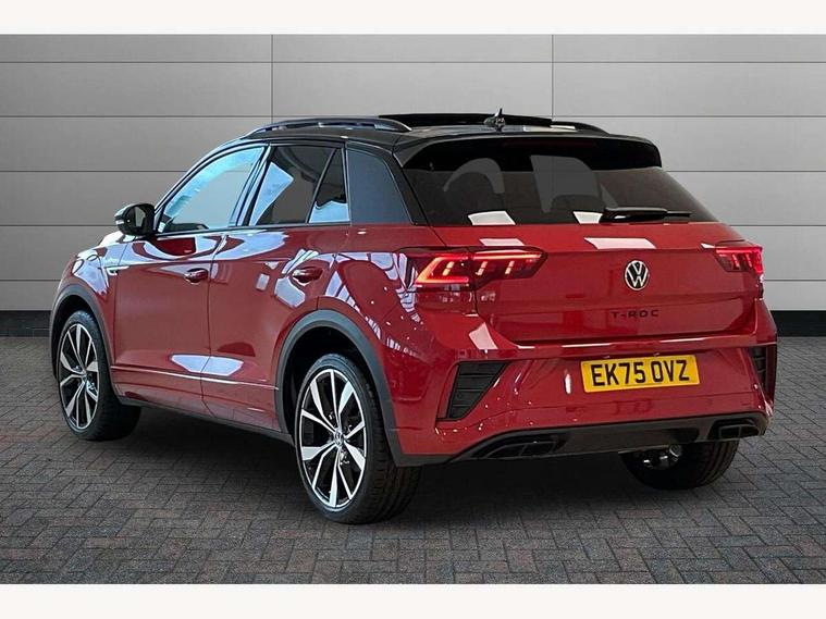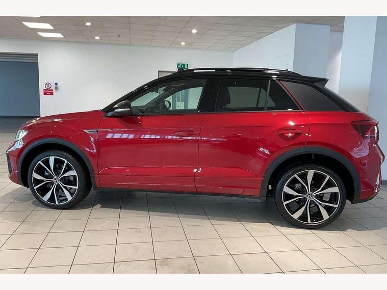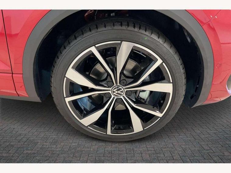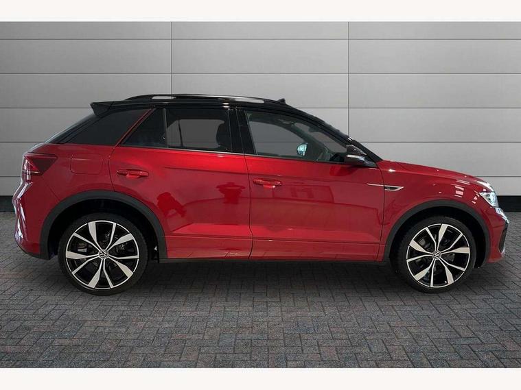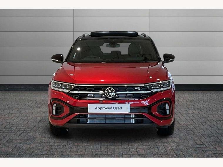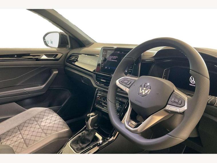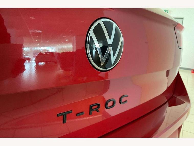 10.25" Digital cockpit pro, Advanced driver attention and drowsiness monitor, Emergency call service, Lane keeping system Lane Assist, Mobile phone interface, Modified key software - reduce switch off time for key status change to Long no motion, Online services, Park assist including front and rear parking sensors, Power assisted speed sensitive steering, Service interval indicator, Tailgate/trunk lid release from outside, Think blue trainer driver tips and journey analysis, Warning sound and light for front seatbelts unfastened, Wireless app connect, Battery regeneration during braking, Rear shock absorption chassis with increased ride height, Start/stop function with battery regeneration, DAB Digital radio, Diversity antenna for FM reception, Front and rear 6 speakers, Music playback - MP3, WMA and AAC files, Premium USB cable in choice of either Apple or Android smartphone compatibility, SD card slot, Simultaneous pairing of 2 compatible mobile devices, Title and cover art display, We Connect and We Connect Plus functionality, Auto dimming interior rear view mirror, Automatic hazard lights activation under emergency braking, Automatic headlight control with LED separate daytime running lights with coming/leaving home function, Dynamic cornering light, Electrically adjustable and heated door mirrors, Extended roof spoiler, Exterior mirrors aspherical on driver side, convex on front passenger side, External USB type C socket and charging sockets, Front windscreen wiper with intermittent wipe and 4 position delay, Heated rear window, Illuminated front grille, IQ LED matrix headlights, LED 3rd brake light, LED rear number plate lights, LED rear tail lights with dynamic turn signal, Light mode for poor weather, rain, fog or snow, Power windows with comfort operation and circuit breaker, R-Line design body coloured bumpers, Rain sensor, Rear exhaust tailpipe, Rear fog light on one side and reversing lights on both sides, Rear side wing doors, Rear wash/wipe with intermittent wipe setting, Remote electrically foldable door mirrors, puddle lights and reverse activated passenger's door mirror, 12V power socket in centre console, 3 rear head restraints, 3 seat bench in 2nd row, 4 load lashing points in luggage compartment, Air care climatronic air conditoning system with active combination filter and 2-zone temperature control, Artvelours cloth upholstery, Black roof lining, Chrome plated radiator grille inserts, air vent surrounds and light switch surrounds, Door and side trim panel with leatherette insert, Drawer under drivers seat, Driver seat height adjust, Driver's seat lumbar support, Front + rear carpet mats, Front centre armrest, Front comfort sports seats, Front cupholders x 2, Front footwell illumination, Front reading light, Front scuff plates with R Line logo, Front seat back storage pockets, Glove compartment door with light, Instrument lighting, white adjustable panel illumination, Interior ambient lighting and surround lighting, Interior light delay, Isofix child seat preparation, Leather gearshift handle, Leather wrapped multifunction steering wheel with paddle shift, Load-through provision with cup holder when folded down ('Unsplit rear seat bench, split folding backrest, with centre armrest), Luggage compartment lighting, Non-folding front passenger seat backrest, Passenger seat height adjuster, Passenger seat lumbar support, Single front passenger seat, Stainless steel pedals, Storage compartment in left and right luggage area, Storage compartment in rear doors, Storage compartments in driver and front passenger doors, Sunvisors with illuminated vanity mirrors, Variable boot floor, height adjustable and removable, Winter pack without heated windscreen washer jets - T-Roc, 3 point height adj front seatbelts + pretensioners, 3 point seatbelts in outer rear with ECE label, ABS, Child locks on rear doors, City emergency braking and pedestrian monitoring, Driver and front passenger airbag with front passenger airbag deactivation, Driver and front passenger safety-optimised head restraints, Drivers seatbelt reminder, Electronic parking brake, Electronic Stability Control (ESC) inc EDL (Electronic Differential Lock) and ASR (Traction Control), Front and rear passengers curtain airbag system including front side airbags, Front disc brakes, Hill start assist, Predictive pedestrian protection, Rear disc brakes, Two tone horn, Tyre pressure loss indicator, Volkswagen roadside assistance, Tool kit, Trims for alloy wheels, Tyre mobility kit including compressor and sealing foam,