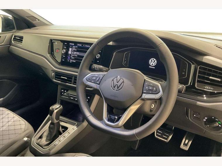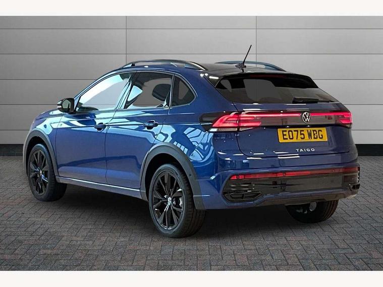 Adaptive cruise control, Advanced driver attention and drowsiness monitor, App-Connect including App-Connect Wireless, Digital cockpit pro - 10.25" high resolution TFT dash display screen with customizable menus and information, Driving profile selection, Dynamic road sign display, e-Call (emergency call), Power Steering, Travel assist including emergency assist, Washer fluid level indicator, Wireless Charging including Bluetooth, Start-stop system with battery regeneration (recuperation - energy recovery during braking), XDS electronic differential lock for improved traction and handling, Digital radio reception (DAB+), Diversity antenna for FM reception, WeConnect plus, Ambient lighting with logo projection, Aspherical driver's exterior mirror, Auto headlights, Body coloured bumpers, Bumpers in R-Line style, Electric windows, External USB type C socket and charging sockets, Front scuff plates with R-Line logo, LED rear combination lamp, LED third brake light, Left convex exterior mirror, Power folding adjustable/heated exterior mirrors and front passenger exterior mirror lowering function, Rear fog light on one side, reversing light on both sides, Rear side wing doors, Rear wash/wipe with intermittent wipe setting, 12V socket in centre console, 2 front reading lights, 3 rear head restraints, 3 seat bench in 2nd row, Air care climatronic air conditoning system with active combination filter and 2-zone temperature control, Black carpets, Black roof lining, Child seat anchor for child seat system i-Size, 2x top tether and child seat anchor in front on front passenger side, Chrome bezel for instrument cluster, vents, door handles + gear shift, Driver and front passenger seat height adjustment, Front + rear carpet mats, Front centre armrest, Front footwell illumination, Front sports comfort seats, Height and reach adjustable steering wheel, Interior ambient lighting and surround lighting, Karoso artvelours cloth upholstery, Leather trimmed gear knob, Leather wrapped multifunction steering wheel, Luggage compartment floor, Luggage compartment light, Lumbar support for driver's and front passengers seat, Seat covers in grey + titanium black, Single front passenger seat, Split folding backrest with centre armrest and unsplit rear seat bench, Stainless steel pedals, Storage compartment under front seats, Sun visors with illuminated vanity mirrors, Chrome Package - Taigo, Drivers assistance pack - Taigo, Light and Sight pack including High beam assist - Taigo, 2 x 3-point seatbelts/outer rear seats with ECE label, 3-point seat belts in front with pretensioner and height adjustment, 3-point seatbelt for centre rear seat, Adaptive driver and front passenger airbags with passenger airbag deactivation function, Driver and front passenger safety-optimised head restraints, Electronic stability control, Extended and predictive pedestrian/ cyclist protection, Front and rear disc brakes, Front curtain and side airbags with center airbag, Hill start assist, Manual rear child locks, Single tone horn, Tyre pressure loss indicator, Anti-theft alarm system with interior monitoring, backup horn, and towing protection, Grey anodised matte decorative inserts in dash and front door panels, Low rolling resistance tyres,