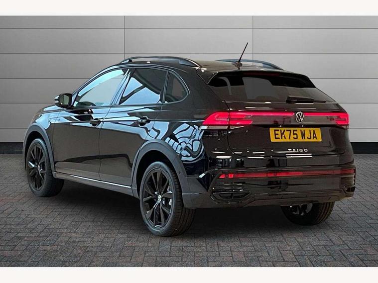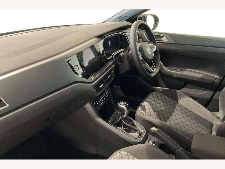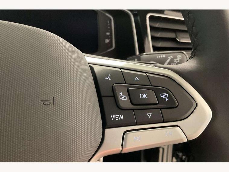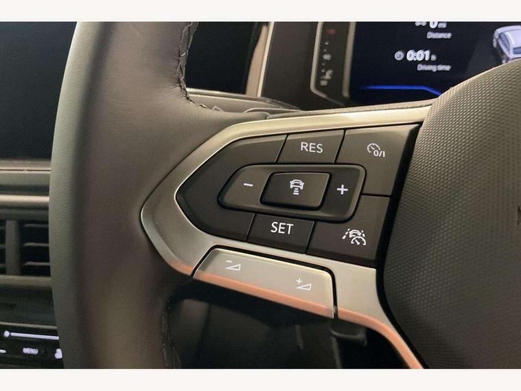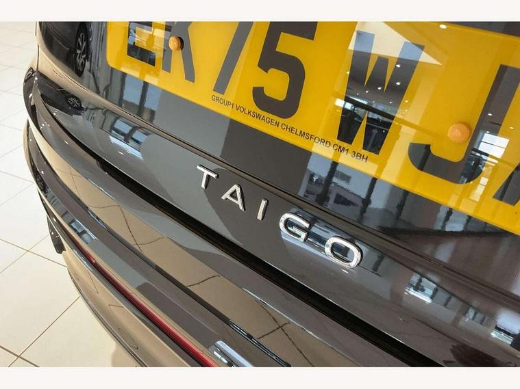 Adaptive cruise control, Advanced driver attention and drowsiness monitor, App-Connect including App-Connect Wireless, Digital cockpit pro - 10.25" high resolution TFT dash display screen with customizable menus and information, Driving profile selection, Dynamic road sign display, e-Call (emergency call), Power Steering, Travel assist including emergency assist, Washer fluid level indicator, Wireless Charging including Bluetooth, Start-stop system with battery regeneration (recuperation - energy recovery during braking), XDS electronic differential lock for improved traction and handling, Digital radio reception (DAB+), Diversity antenna for FM reception, WeConnect plus, Ambient lighting with logo projection, Aspherical driver's exterior mirror, Auto headlights, Body coloured bumpers, Bumpers in R-Line style, Electric windows, External USB type C socket and charging sockets, Front scuff plates with R-Line logo, LED rear combination lamp, LED third brake light, Left convex exterior mirror, Power folding adjustable/heated exterior mirrors and front passenger exterior mirror lowering function, Rear fog light on one side, reversing light on both sides, Rear side wing doors, Rear wash/wipe with intermittent wipe setting, 12V socket in centre console, 2 front reading lights, 3 rear head restraints, 3 seat bench in 2nd row, Air care climatronic air conditoning system with active combination filter and 2-zone temperature control, Black carpets, Black roof lining, Child seat anchor for child seat system i-Size, 2x top tether and child seat anchor in front on front passenger side, Chrome bezel for instrument cluster, vents, door handles + gear shift, Driver and front passenger seat height adjustment, Front + rear carpet mats, Front centre armrest, Front footwell illumination, Front sports comfort seats, Height and reach adjustable steering wheel, Interior ambient lighting and surround lighting, Karoso artvelours cloth upholstery, Leather trimmed gear knob, Leather wrapped multifunction steering wheel, Luggage compartment floor, Luggage compartment light, Lumbar support for driver's and front passengers seat, Seat covers in grey + titanium black, Single front passenger seat, Split folding backrest with centre armrest and unsplit rear seat bench, Stainless steel pedals, Storage compartment under front seats, Sun visors with illuminated vanity mirrors, Chrome Package - Taigo, Drivers assistance pack - Taigo, Light and Sight pack including High beam assist - Taigo, 2 x 3-point seatbelts/outer rear seats with ECE label, 3-point seat belts in front with pretensioner and height adjustment, 3-point seatbelt for centre rear seat, Adaptive driver and front passenger airbags with passenger airbag deactivation function, Driver and front passenger safety-optimised head restraints, Electronic stability control, Extended and predictive pedestrian/ cyclist protection, Front and rear disc brakes, Front curtain and side airbags with center airbag, Hill start assist, Manual rear child locks, Single tone horn, Tyre pressure loss indicator, Anti-theft alarm system with interior monitoring, backup horn, and towing protection, Grey anodised matte decorative inserts in dash and front door panels, Low rolling resistance tyres,