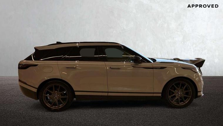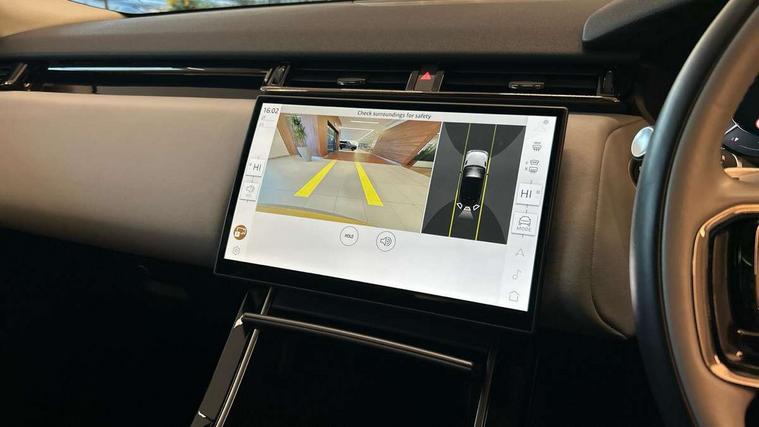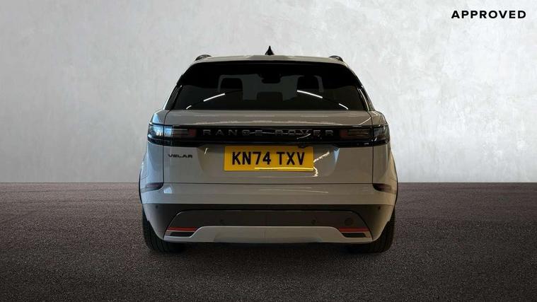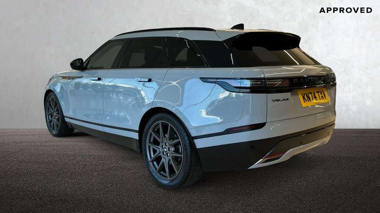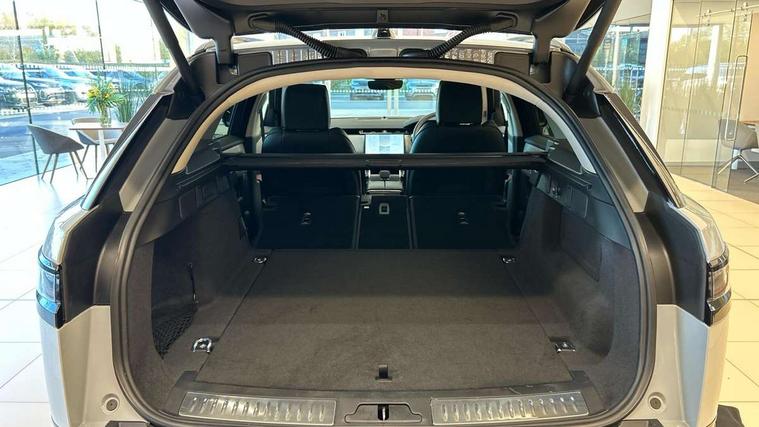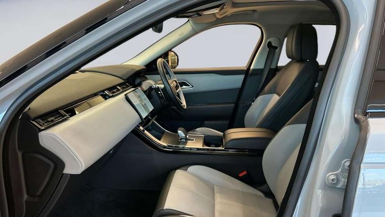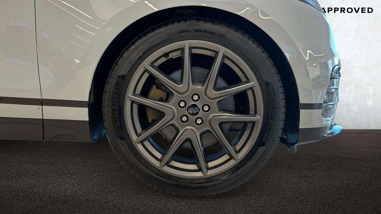 Adaptive cruise control with steering assist, Android Auto, Apple CarPlay, Blind spot assist, Bluetooth connectivity, Brake pad wear indicator warning light, Driver condition monitor, eCall emergency call system, Front and rear parking aid, InControl remote, Land Rover InControl apps, Lane keep assist, Pivi pro with connected navigation, Rear collision monitor, Rear traffic monitor, Service indicator, Speed proportional electronic power assisted steering (EPAS), Traffic sign recognition with adaptive speed limiter, Trip computer, Voice control system, Wireless device charging, 8 speed automatic transmission, Adaptive dynamics, All terrain progress control, Electronic air suspension, Open differential with torque vectoring by braking, Single speed transfer box, DAB radio, Steering wheel mounted controls, 3rd brake light, Acoustic laminated windscreen, Auto dimming interior rear view mirror, Automatic headlamp levelling, Automatic headlights, Body coloured bumpers, Boot protection plate, Electric windows with one touch open/close and anti trap, Flush deployable exterior door handles, Follow me home headlights, Heated rear window with timer, Heated washer jets, Heated windscreen, Metal front tread plates, Metal load space scuff plates, Pixel LED headlights with signature DRL, Power fold, auto-dimming, heated door mirrors with memory and approach lights, Rain sensor windscreen wipers, Rear animated directional indicators, Rear fog lights, Rear side wing doors, Rear wash/wipe, Tailgate/boot lid spoiler, Trailer stability assist, Velar badge, 3 seat bench in 2nd row, Ambient lighting, Bright metal pedals, Carpet mats, Driver/passenger sunvisors with illuminated vanity mirrors, Ebony morzine headlining, Electrically adjustable steering column, Extended leather upgrade, Heated steering wheel, Isofix system on outer rear seats, Loadspace cover, Overhead lighting console, Overhead stowage for sunglasses, Passive front headrests, Rear air vents, Rear centre headrest, Single front passenger seat, Twin front cupholders, Twin sliding front centre armrest, Online pack with data plan - Velar, Power socket pack 2 - Velar, 380mm front brakes and 325mm rear brakes, 3x3 point rear seatbelts, Anti-lock braking system (ABS), Cornering brake control, Curtain airbags, Customer configurable autolock, Door side intrusion beams, Driver airbag, DSC - Dynamic Stability Control, Electronic brake force distribution, Electronic parking brake, Electronic traction control, Emergency braking, Front and rear seatbelt reminder, Hill descent control, Hill launch assist, Low traction launch, Passenger airbag, Power operated child locks, Rear airbags, Roll stability control, Side airbags, Tyre pressure monitoring system (TPMS), Global lock and unlock switch on driver door, Immobiliser, Intrusion sensor, Keyless entry, Lock only switch on front passenger door, Locking wheel nuts, Perimetric alarm, Remote central locking, All season tyres,