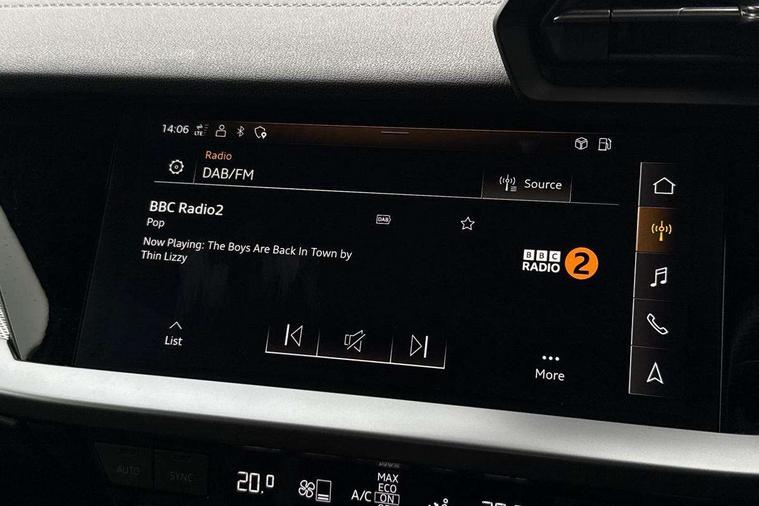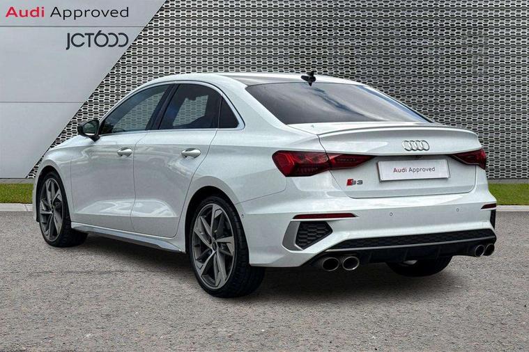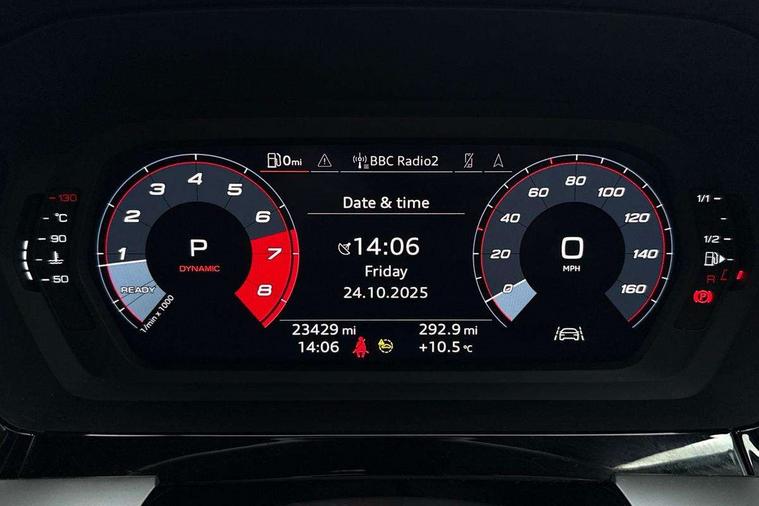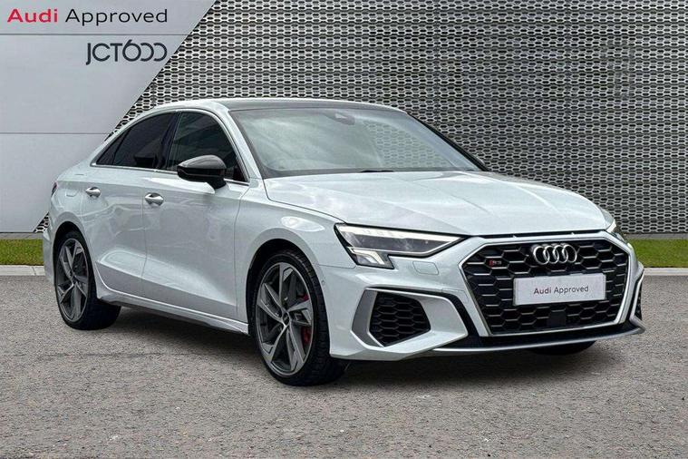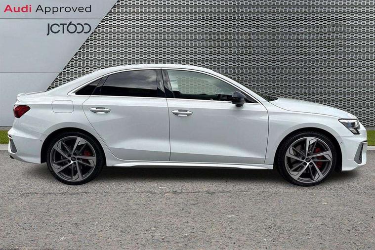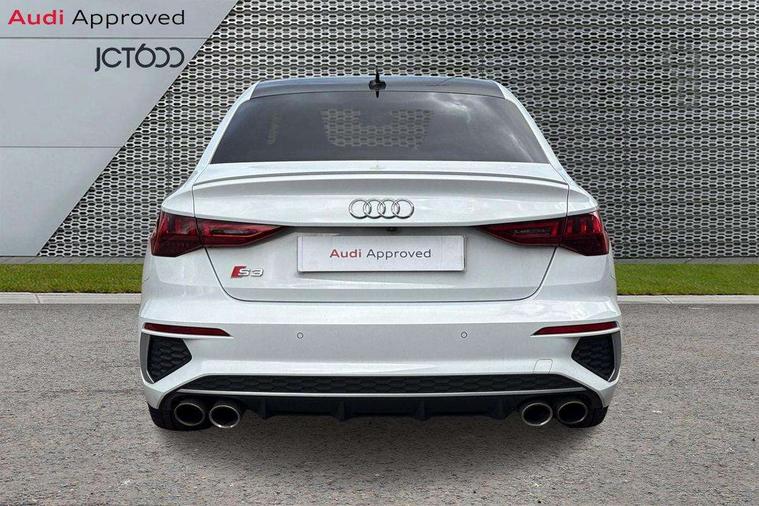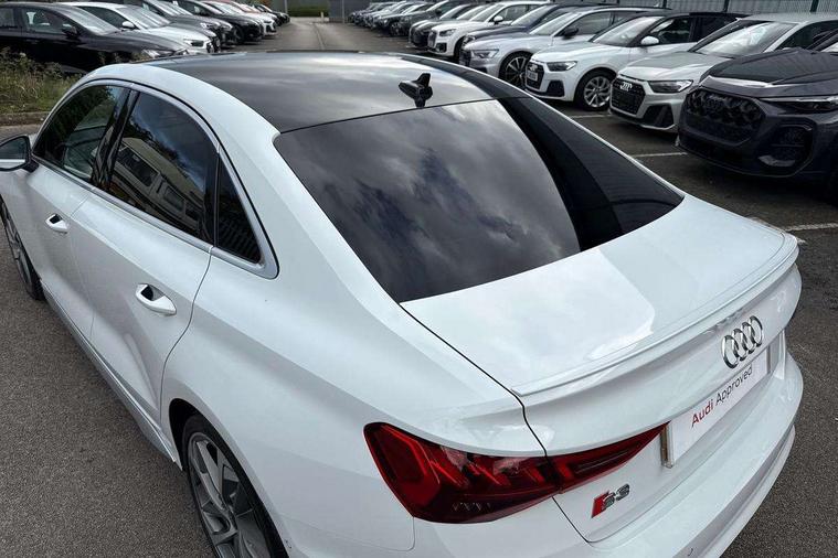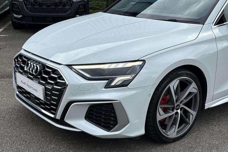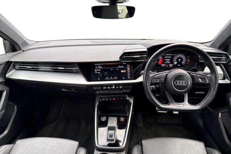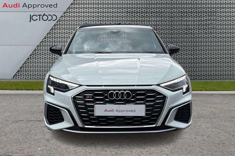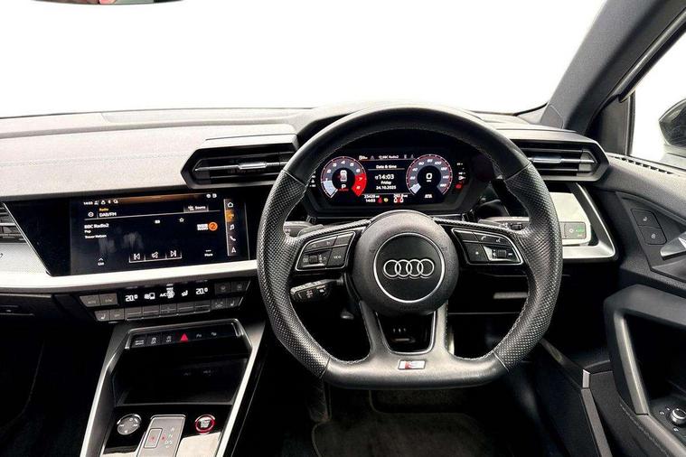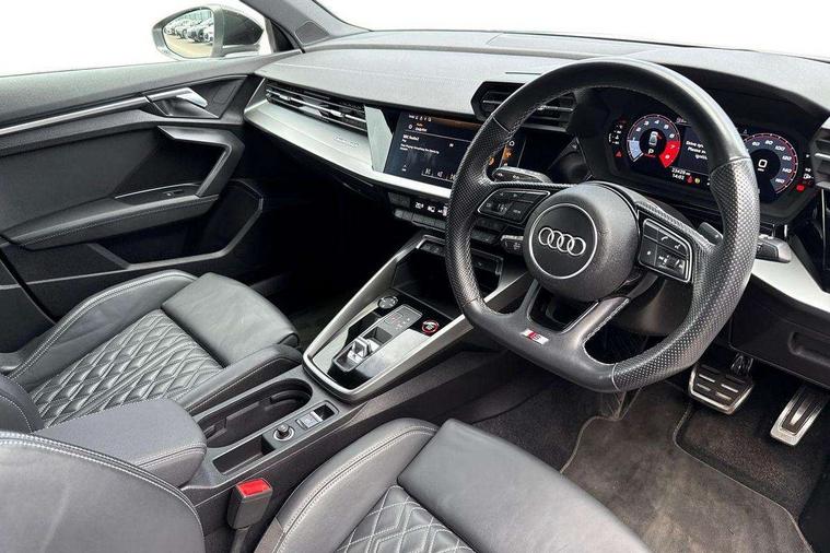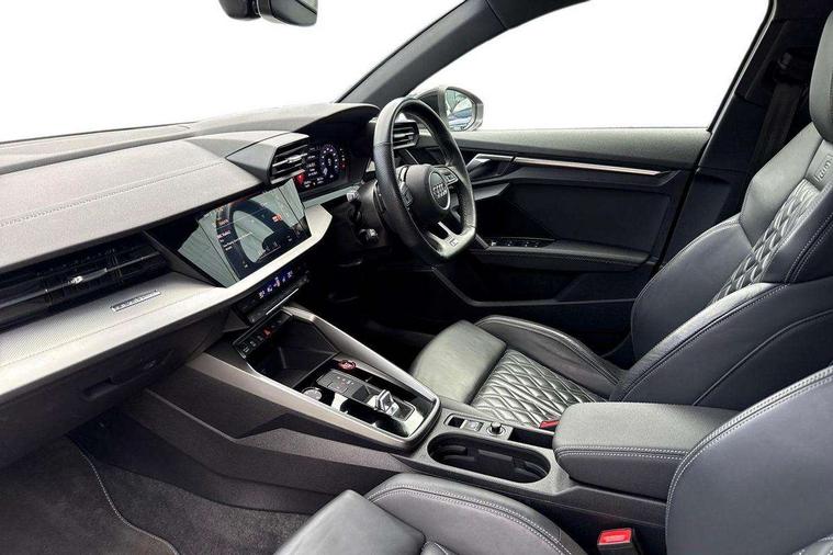 Audi connect, Audi smartphone interface, Bluetooth interface, Colour driver's information system display, Progressive power assisted steering, SD card based satellite navigation system, Service interval indicator, Voice control system, Audi magnetic ride, S sports suspension, 2 USB ports, Audi music interface, Aux-in socket, Bang + Olufsen advanced sound system, CD player, DAB Digital radio, MMI radio plus with 7" colour MMI screen and MMI controller, Automatic lights and wipers, Black door mirrors, Black rear diffuser, Body colour roof spoiler, Electric operated/heated door mirrors, Front and rear electric windows, Headlight washers, Heated rear window, Heated windscreen washer jets, LED daytime running lights, Privacy glass, Twin oval exhaust tailpipes with chrome finish, 3 adjustable rear headrests, 3 spoke flat bottom multi-function leather steering wheel including paddle shift, 4 lashing points to secure luggage, Adjustable front armrest, Cloth headlining, Driver/passenger sunvisors, Dual zone electronic climate control, Front and rear interior lights with delay, Front/rear floor mats, Heated front seats, Height/depth adjustable steering column, Illuminated door sills, Illuminated glovebox, ISOFIX child seat preparation+airbag deactivation, Jack and tool kit, Stainless steel pedals, Storage compartment in centre console, Storage compartments in doors, Storage under driver's seat, Black styling pack - A3/S3, LED interior light pack - A3/RS3, Non smoking pack - A3, Storage and luggage pack - A3/RS3, 3 point seatbelts on all seats, ABS/EBD, ASR, Curtain airbags, Driver and passenger side airbags, Driver/Front Passenger airbags, Drivers knee airbag, EDL, Electromechanical parking brake, ESC - Electronic Stability Control + traction control, Front passenger airbag deactivation, Seatbelt warning, Tyre pressure warning, Warning triangle and first aid kit, Anti theft alarm, Anti-theft wheel bolts, Immobiliser, Remote control central locking, Aluminium air vent surrounds, Aluminium trim elements,