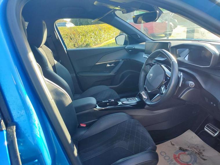 Blind spot monitoring, Bluetooth telephone facility, Connected 3D navigation, Driver attention warning, e-Toggle driving selector, Exterior temperature indicator with ice warning, Lane keep assist, Mirror screen with mirror link, apple carplay and android auto, Multi function trip computer, PEUGEOT i-Cockpit with 10" capacitive colour touchscreen, PEUGEOT i-Cockpit with compact steering wheel, PEUGEOT i-Cockpit with configurable 3D headup instrument panel, PEUGEOT SOS and assistance, Smart phone docking station, Speed limit recognition and recommendation, Start/stop system, Visio Park 1 with 180 degree Colour reversing camera, 2 front USB socket with USB-C, 2 USB sockets in rear, DAB Radio (Digital Audio Broadcasting), Voice recognition for radio, navigation and telephony features, 2 X Rear number plate lights, Acoustic windscreen, Automatic front windscreen wipers, Automatic hazard light activation upon heavy brake application, Black diamond roof, Black front wing trim with gloss black detail and GT badging, Body coloured exterior door handles, Chrome Lion Badge front and rear, Dark tinted rear side and tailgate windows, Diamond black mirror shells, Diamond black rear spoiler (roof), Electric, heated, and power folding door mirrors, Frameless electrochrome interior rear view mirror, Front bumper - Silver lower trim, Full LED headlights with smartbeam assist, Gloss black finish on B pillar, Gloss black longitudinal roof rails, Gloss black rear cluster connecting strip, Gloss black roof bars, Gloss black window surround, GT model designation badging on tailgate, Headlights left on audible warning, LED daytime running lights with 3 claw headlight with distinctive tooth design, LED front fog lamps with remote cornering function, LED side indicator lights integrated into door mirrors, LED third brake light, Model designation badges front and rear, One touch electric front/rear windows with pinch protection, Radiator grille - Dark chrome chequered and gloss black edge trim, Radiator grille - gloss black top edge trim, Rear full LED 3D peugeot signature claw effect lights with daylight function, Rear reversing lights, Rear side wing doors, Rear windscreen wiper triggered automatically in reverse gear, Stainless steel door sill scuff plates, Tailgate with heated rear windscreen and wiper blade, Trailer Stability Programme, Twin chromed exhaust pipes, Variable front intermittent wipers, Welcome lighting, Wheel arch extensions, 1/3 to 2/3 split folding rear seats, 12v power outlet - front, 12V socket, 3 seat bench in 2nd row, 8 Colour personalisable ambient lighting, Aluminium pedals, Automatic air conditioning with pollen and active carbon filter, Central front armrest with storage compartment, Driver and front passenger sport seats, Electric power steering with reach and rake adjustable steering column, Front and rear carpet mats in black with lime green stitch detail, Front centre armrest, Front LED interior light with 2 reading spotlights and rear interior light with timer, Front passenger seat manual adjustment - height, longitudinal and back rest angle, High centre console, ISOFIX child seat mounting points on passenger seat, Lime green contrast stitching to front centre console, door panels and dashboard facia, Mistral full-grain perforated leather steering wheel with Lime Green stitch detail and satin chrome 'GT' emblem, Modular boot floor, Multifunction steering wheel, Paddle shifts, Piano keys: Gloss black and chrome toggle switches to access main functions of the vehicle and touchscreen functions, Roof lining - Mistral black, Seatbelt unfastened on the move audible and visual alert for front and rear seats, Single front passenger seat, Switch for Push Button Start finished in black with chrome surround, Drive assist Plus pack - 2008, Visibility pack - 2008, 2x 2nd row ISOFIX child seat mountings, ABS (Anti-lock Braking System) with EBD (Electronic Brakeforce Distribution) and EBA (Emergency Braking Assistance), Acoustic vehicle alerting system, Active safety brake with night function/cyclists/pedestrians, Adaptive driver and front passenger airbags with passenger airbag deactivation function, Child locking functionality on rear doors, Driver/front passenger side airbags, Electric parking brake, ESP (Electronic Stability Program) + Hill Start Assist, Front and rear curtain airbags, Front and rear disc brakes, Front and rear three-point retractable seatbelts, with force limiters, Front optimised safety headrests and rear retractable headrests (x3), height adjustable, Tyre pressure sensor, Alarm system with anti-lift sensor, Automatic door locking when moving off, Deadlocks, Electronic code immobiliser, Exterior door lock x1 (Left-hand or passenger’s side), Peugeot Open and Go (keyless entry and push button start), Remote central locking, Carbon effect Dashboard, front and rear door panel finish,