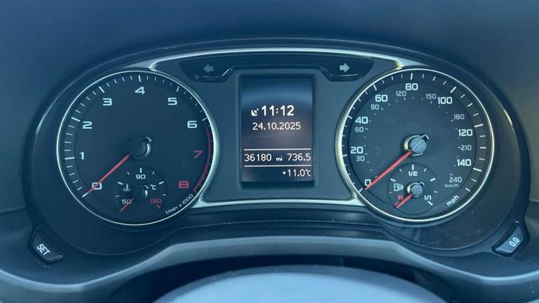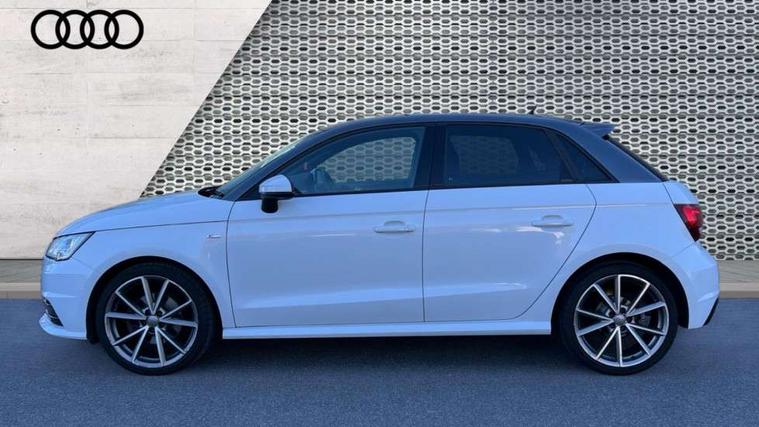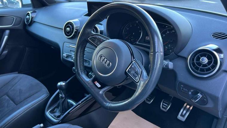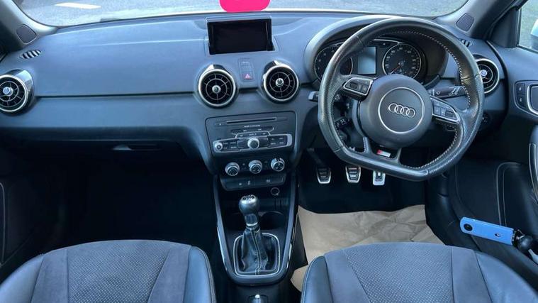 Aluminium trim, High gloss black air vent sleeves, High gloss black centre console, High-gloss black styling pack - A1, Tyre repair kit, Locking wheel bolts, Remote central locking with 2 remote folding keys, Thatcham category 1 alarm + immobiliser, Additional SD card reader, Audi music interface, Bluetooth audio streaming, DAB Digital radio, 3x3 point rear seatbelts, ABS/EBD, Brake assist function, Driver and passenger side airbags, Driver/Front Passenger airbags, EDL, ESP with ASR, First aid kit, Front and rear seatbelt reminder, Front passenger airbag deactivation, Head airbags, Height adjustable front seatbelts, Tyre pressure monitor, Warning triangle, Adaptive brake lights, Body coloured bumpers, Body coloured door mirrors, Electric adjustable door mirrors, Electric front windows, Electric rear windows, Front fog lights, Heat insulating glass, Heated door mirrors, Heated rear windscreen, Privacy glass, Rain and light sensors, Rear diffuser, Rear wiper, Roof spoiler, S Line body styling, Twin oval high gloss black exhaust tail pipes, Xenon plus headlights including automatic headlights, LED daytime running lights, LED rear lights, dynamic range control and headlight washers, 12V Accessory socket in centre console, 3 rear seats, 3 spoke flat bottomed multi-function leather steering wheel, Adjustable rear head restraints, Alcantara/leather upholstery, Black cloth headlining, Cupholders in centre console, Door sills trims with aluminium inlays, Electronic climate control (ECC), Front floor mats, Front head restraints, Front sports seats, Height adjustable front seats, Isofix attachments on rear seats, Jack and tool kit, Leather gear knob, Leather handbrake, Lumbar adjustment for front seats, Rake/reach adjustable steering wheel, Split folding rear seats, Stainless steel pedals, Cruise control, Driver's information system, Electro-mechanical PAS, Low washer fluid indicator, Service interval indicator, Voice control system,