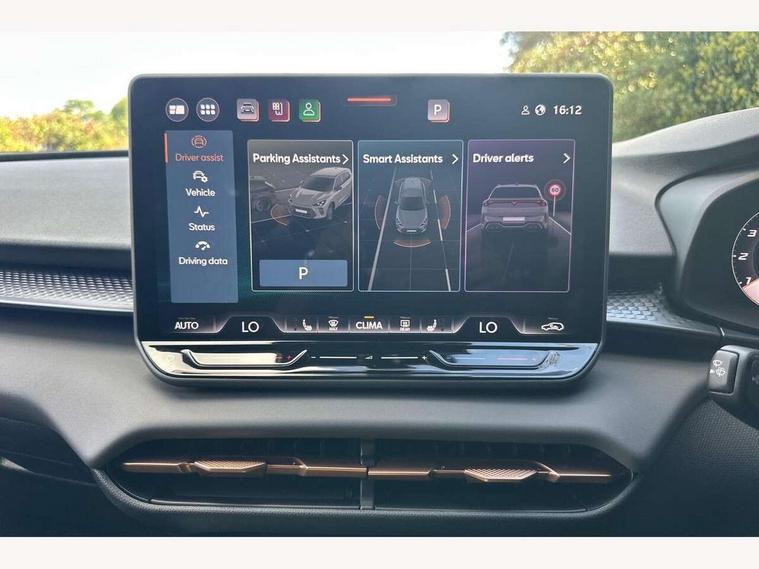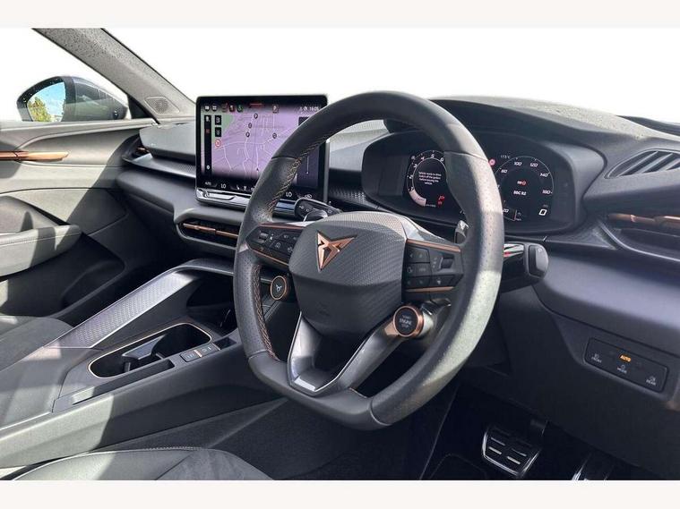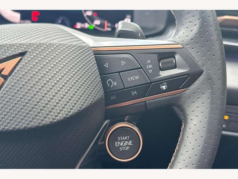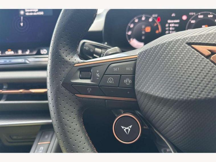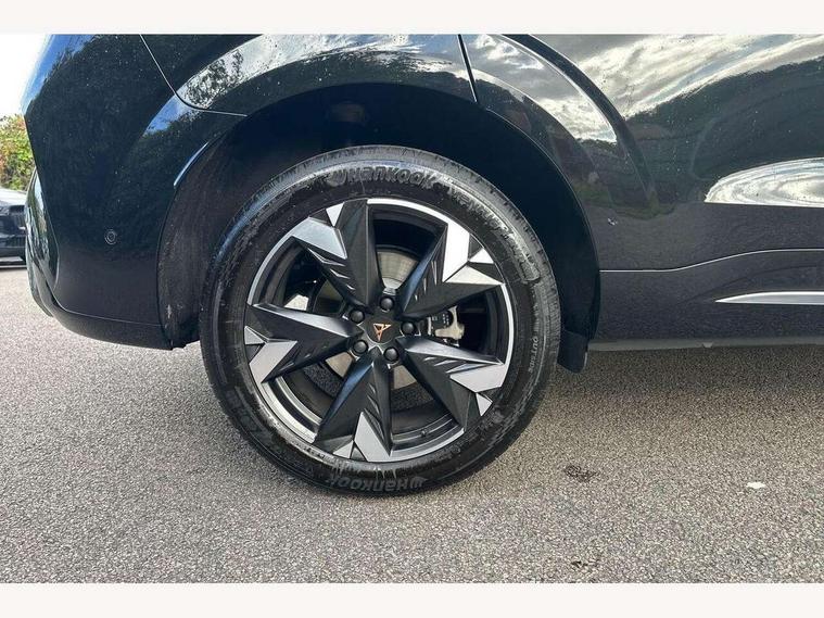 10.25" digital cockpit and configurable dashboard, Adaptive cruise control with follow-to-stop and speed limiter, Advanced driver alert system, Advanced lane assist with semi-automatic vehicle control in a medical emergency and traffic jam assist, Driving profile selection and conventional shock absorber, Dynamic road sign display, E-call, Electric tailgate with virtual pedal, Emergency steering support with turn assist, Four x USB Type C ports (2 in front and 2 in rear), Front and rear parking sensors, Front assist (Forward collision warning with automatic braking) with multifunction camera and front cross traffic assist, Head up Display, Intelligent park assist, Media system with Nav - 12.9" touch display, voice control, full link phone (wired/wireless), DAB and Steering wheel mounted controls, Rear traffic assist, Side and exit assist, Speed sensitive power steering, Start/stop system with regenerative braking, Top view camera (front camera, rear camera, 2 side cameras), Wireless phone charger, Auto dimming rear view mirror, Black roof rails, CUPRA 3D rear lights with ceremony & swiping indicator and illuminated logo, Dark tinted rear windows, Daytime running lights with automatic headlight control and Coming and Leaving home function, Door mirrors with memory function and lowing function on passenger mirror, Dynamic headlight range control, Electric front/rear windows, Electrically adjustable, heated and folding door mirrors, Front fog lamps with cornering function, Heat reflecting windscreen, High beam assist, LED headlamps with signature "CUPRA LED", Rain sensing wipers, Rear fog light on one side, back up light on both sides, Rear side wing doors, Rear wash/wipe, Third brake light, Welcome lights (within exterior mirror housing), 3 seat bench in 2nd row, Black roof lining, Cupra sports pedals, Dinamica cloth upholstery, Driver seat memory function, Electrically adjustable front seats including lumbar support, Front and rear head restraints, Front and rear reading lights X 4, Front centre armrest, Heated front seats, Heated leather wrapped multi function sports steering wheel with tiptronic, Illuminated interior front door sills, Isofix, Operating voltage 12V, Single front passenger seat, Smart wraparound interior lighting, Sunvisors with illuminated mirror, Three zone climate control with control panel in rear, Unsplit rear seat bench, split folding backrest, with centre armrest, Variable luggage/load compartment floor, 3 point seatbelts in front with pretensioner and electric height adjustment, 3 point seatbelts on all rear seats, Brake control system - ESC and brake booster, Child proof door locks, Driver and front passenger airbags, Electronic parking brake, Front and rear disc brakes, Front interaction airbag, Front passenger airbag deactivation switch, Front side airbags with curtain airbags, Pre-crash front and rear seat belt tensioner, window closure and hazard lights, Tyre pressure monitoring system, Visual and acoustic seat belt reminder, electric contact in front and rear, Anti theft alarm, Keyless locking and starting system with keyless access, Locking wheel bolts, Black decorative trims, Chrome interior detailing, 19" Spectrum exclusive machine alloy wheels, Tool kit,