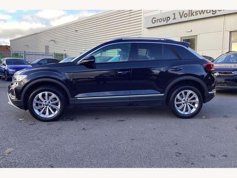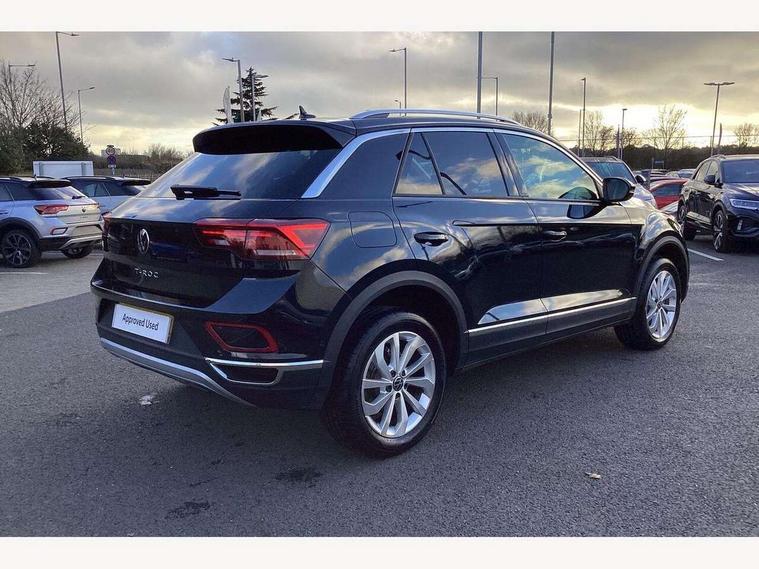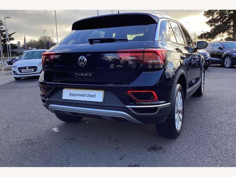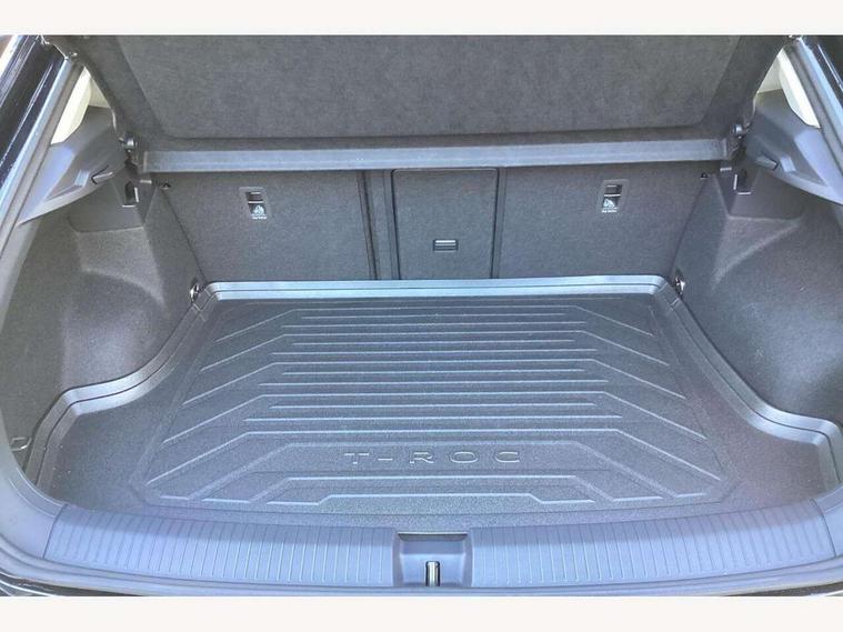 10.25" Digital cockpit pro, Advanced driver attention and drowsiness monitor, Emergency call service, Lane keeping system Lane Assist, Mobile phone interface, Modified key software - reduce switch off time for key status change to Long no motion, Online services, Park assist including front and rear parking sensors, Power assisted speed sensitive steering, Service interval indicator, Tailgate/trunk lid release from outside, Think blue trainer driver tips and journey analysis, Warning sound and light for front seatbelts unfastened, Wireless app connect, Battery regeneration during braking, Start/stop function with battery regeneration, DAB Digital radio, Diversity antenna for FM reception, Front and rear 6 speakers, Music playback - MP3, WMA and AAC files, Premium USB cable in choice of either Apple or Android smartphone compatibility, SD card slot, Simultaneous pairing of 2 compatible mobile devices, Title and cover art display, We Connect and We Connect Plus functionality, Auto dimming interior rear view mirror, Automatic hazard lights activation under emergency braking, Automatic headlight control with LED separate daytime running lights with coming/leaving home function, Body colour sports bumpers with silver metallic underbody fascia, Body coloured exterior mirror housings and door handles, Dynamic headlight range control with self adjusting whilst driving, Electrically adjustable and heated door mirrors, Extended roof spoiler, Exterior mirrors aspherical on driver side, convex on front passenger side, External USB type C socket and charging sockets, Front windscreen wiper with intermittent wipe and 4 position delay, Heated rear window, LED 3rd brake light, LED rear combination lamps, LED rear number plate lights, Light mode for poor weather, rain, fog or snow, Power windows with comfort operation and circuit breaker, Privacy glass for rear side windows and rear window, Rain sensor, Rear exhaust tailpipe, Rear fog light on one side and reversing lights on both sides, Rear side wing doors, Rear wash/wipe with intermittent wipe setting, Remote electrically foldable door mirrors, puddle lights and reverse activated passenger's door mirror, 12V power socket in centre console, 3 rear head restraints, 3 seat bench in 2nd row, 4 load lashing points in luggage compartment, Air care climatronic air conditoning system with active combination filter and 2-zone temperature control, Chrome plated radiator grille inserts, air vent surrounds and light switch surrounds, Door and side trim panel with leatherette insert, Drawer under drivers seat, Front + rear carpet mats, Front centre armrest, Front comfort sports seats, Front cupholders x 2, Front footwell illumination, Front seat back storage pockets, Glove compartment door with light, Instrument lighting, white adjustable panel illumination, Interior ambient lighting and surround lighting, Interior light delay, Isofix child seat preparation, Leather gearshift handle, LED interior light with switch off delay/dimmer and 2 front/rear LED reading lights, Load-through provision with cup holder when folded down ('Unsplit rear seat bench, split folding backrest, with centre armrest), Luggage compartment lighting, Non-folding front passenger seat backrest, Single front passenger seat, Storage compartment in left and right luggage area, Storage compartment in rear doors, Storage compartments in driver and front passenger doors, Sunvisors with illuminated vanity mirrors, Variable boot floor, height adjustable and removable, Driver assistance pack without proactive passenger protection - T-Roc, 3 point height adj front seatbelts + pretensioners, 3 point seatbelts in outer rear with ECE label, ABS, Child locks on rear doors, City emergency braking and pedestrian monitoring, Driver and front passenger airbag with front passenger airbag deactivation, Driver and front passenger safety-optimised head restraints, Drivers seatbelt reminder, Electronic parking brake, Electronic Stability Control (ESC) inc EDL (Electronic Differential Lock) and ASR (Traction Control), Front and rear passengers curtain airbag system including front side airbags, Predictive pedestrian protection, Rear disc brakes, Two tone horn, Tyre pressure loss indicator, Volkswagen roadside assistance, Deep iron grey decorative inserts in dashboard, centre console and front door trim panels, Trims for alloy wheels,