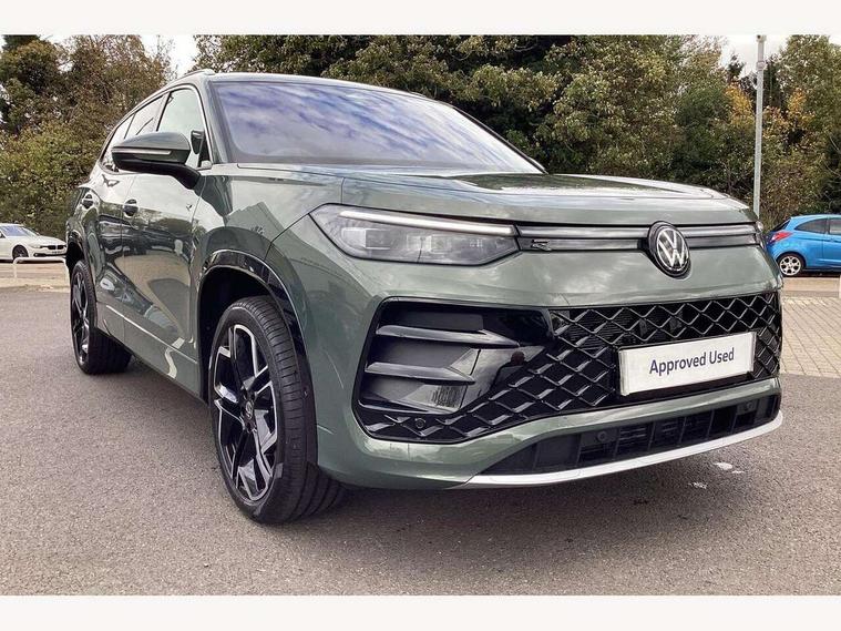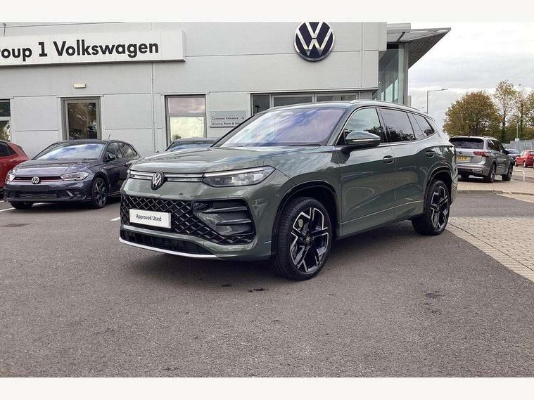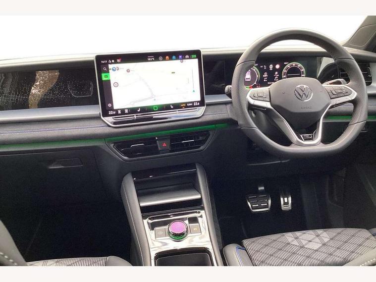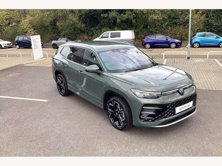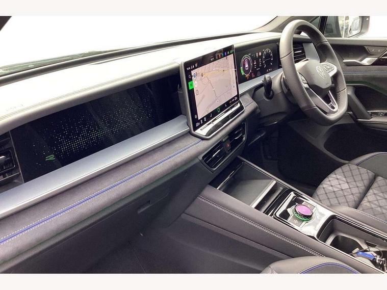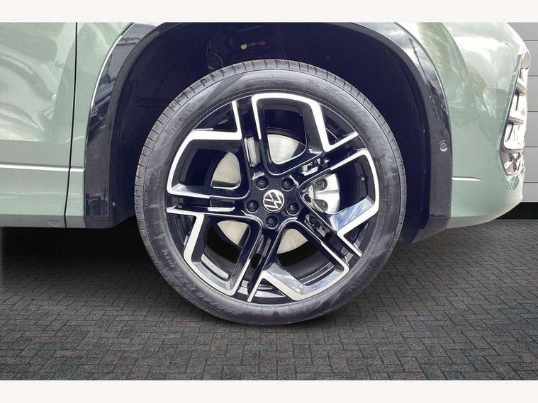 Adaptive cruise control (ACC), Digital Cockpit Pro - 10.25" high resolution dash display screen with customisable menus and information, Driver alert system, Driver attention monitoring system, Dynamic road sign display, E-Sim card for online connectivity, eCall emergency call system, Lane change system, Side assist, Rear traffic alert and Exit warning system, Multifunction front facing camera, Oncoming vehicle braking when turning including swerve support, Start/stop system with regenerative braking, Voice activation spoken voice commands for telephone and navigation system, Warning signal and warning light for front and rear seatbelts not fastened, Wireless App-Connect, Front wheel drive, Digital radio reception (DAB), Diversity antenna for FM reception, Air intake with Chrome trim, Auto dimming interior rear view mirror, Automatic headlight control system, Body colour door handles, Chrome moldings on the side windows, Coming/leaving home lighting function, Dynamic headlight range control with dynamic cornering light, Exterior mirrors convex on the left and aspherical on the right, Heat insulating glass in side and rear windows, Illuminated Volkswagen logo rear with animation, Laminated safety glass winshield, heat insulating, LED 3rd brake light, LED separate signature day time running light, Puddle lights, Rain sensor windscreen wipers, Rear fog light on one side, reversing light on both sides, Rear side wing doors, Rear wiper, Reverse activated passenger's door mirror, Surround lighting with welcome light, Volkswagen logo in front, illuminated lighting animation with wake up/goodbye scenario and illuminated door handles, 10 colour interior ambient lighting, 12V outlet in center console rear and in luggage compartment, 3 rear headrests, 3 rear seat bench in 2nd row, backrest split folding with centre armrest and 2 seats in 3rd row of seats, Black roof lining, Brushed stainless steel pedals, Carpet mats, front and rear, Centre console with illuminated storage compartment with sliding cover and two drinks holders, Chrome elements on the mirror switch and power window switches and door pulls, Door and side trim panel insert in Art velour, Flat luggage compartment floor, Front centre armrest, Front scuff plates in alumium, ISOFIX anchors for child seats on outer rear seats and front passenger seat compatible with i-Size, Mechanical rear seat release, Power adjustable lumbar support in front, Single front passenger seat, Sports comfort seats in front, Sun visors with illuminated vanity mirrors, 3 Point seat belts in front with pretensioners, 3 point seatbelts in outer rear with ECE label, Autonomous emergency braking front assist with pedestrian and cyclist monitoring, Driver and front passenger airbag with front passenger airbag deactivation, Electronic parking brake with auto hold, First aid kit with warning triangle and safety vest, Front and rear curtain airbags, Front and rear side airbags, Front centre airbag, Front disc brakes, Hill start assist, Rear disc brakes, Two tone horn, Decorative material set R-Line, Interior door handle in matte chrome,