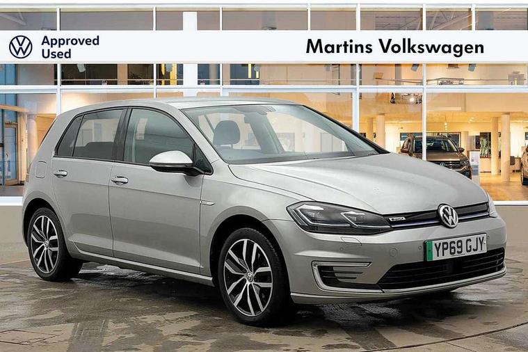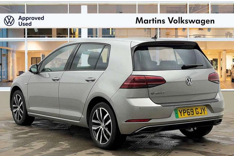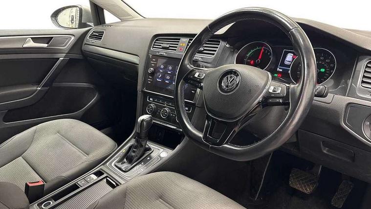 'Lights On' Reminder warning buzzer, ACC - Adaptive cruise control with front assist, forward collision warning, distance monitoring, city emergency brake and speed limiter, Bluetooth telephone and audio connection for compatible devices, Brake pad wear indicator warning light, Driver alert system, Driving Mode Selection with four preset modes - Eco, normal, sport or individual modes, Instrument cluster in white, Multifunction computer with visual gear change recommendation for fuel consumption, Power assisted speed sensitive electro-mechanical steering, Push tank flap, Speedo, rev counter, electronic odometer, trip, service interval display, exterior temperature and fuel gauge, Stop/start system, Think blue trainer driver tips and journey analysis, Unique e-Golf instrument cluster, Warning buzzer and light for front seatbelts unfastened, Battery regeneration during braking, XDS electronic differential lock, Composition media system, DAB Digital radio receiver, Driver Personalisation profile selection, MP3/WMA compatability, Multi device interface (MDI) with USB connection, Premium USB cable in choice of either Apple or Android smartphone compatibility, SMS Functionality, USB and SD card connectivity, 3D-LED tinted rear light clusters with indicator sweep function, Automatic coming/leaving home lighting function, Black front air intake and radiator grille with chrome insert, Black rear diffuser, Body colour bumpers, Body colour door handles, Body colour door mirrors with integrated indicators, Body colour rear roof spoiler, Dusk sensor + automatic driving lights, Electric front windows, Electric rear windows, Electrically adjustable and heated door mirrors, Fully galvanised body, High level 3rd brake light incorporating LED Technology, No visible rear tailpipe, Rain sensor, Rear fog lamp, Rear window aerial, Rear window wash/wipe with intermittent wipe, Reflectors in all doors, Remote electrically foldable door mirrors, door mirror puddle lights and reverse activated kerb-view adjustment on passengers door mirror, Unique e golf radiator grille with blue stripe, Unique e-Golf badging, Unique front C Signature LED daytime running light, Uniquely shaped front/rear bumpers, Windscreen wipers/ intermittent wipe + 4 position delay, 12V socket in luggage compartment, 3 rear headrests, 4 load lashing points in luggage compartment, 60/40 split folding rear seat backrest, Bag hook in luggage compartment x 2, Climate control - 2 zone electronic air conditioning with automatic air recirculation and allergy filter, Cooled glovebox, Cover for storage compartment in centre, Dust/pollen filter, Front centre armrest with storage compartment and two rear air vents, Front comfort seats with height and lumbar adjustment, Front seat back storage pockets, Grab handles front x 2, rear x 2 with integrated coat hooks, Height and reach adjustable steering wheel, Illuminated door sills, Illuminated vanity mirrors, Interior light delay, Isofix preparation for 2 rear child seats, Load through provision with rear centre armrest and cupholders x2, Luggage compartment lighting, Overhead storage box, Pearl grey headlining, Storage box in luggage compartment, Storage compartment in roof console with cover, Storage compartments in front doors, Storage compartments in rear doors, Stowable luggage compartment cover, Sun visors, Three spoke multifunction leather steering wheel with e-golf logo and blue stitching including gear knob gaiter, Two charging cables 16amp for wallbox/chargepoints (mode 3) and 10amp mains charge cable (mode 2), Two charging cables 32amp for wallbox/chargepoints (mode 3) and 10amp mains charge cable (mode 2), Variable boot floor, height adjustable and removable, Convenience Pack - Golf, Mirror pack - Golf, 3 rear three point seatbelts, Airbags - Driver's and front passenger's, curtain airbag, Driver's knee, front side impact and passenger's airbag deactivation switch, Anti-lock Braking System (ABS) with Hydraulic Brake Assist (HBA), Automatic post collision braking system, Child locks on rear doors, Driver/Passenger optimised head restraints, Electronic parking brake with auto hold, Electronic stability control (ESC) including Electronic differential lock (EDL) and ASR (Traction control) with deactivation via infotainment system, Front ventilated disc brakes and rear disc brakes, Pre crash preventive occupant protection, Three point height adjustable front seatbelts with tensioners, Tyre pressure loss indicator, Alarm with interior protection and deactivation via infotainment system, Electronic engine immobiliser, Brushed dark silver decorative inserts in dash and door panels, Chrome plated air vent surround, Chrome-plated light switch surround, Polar night black decorative inserts in centre console, Tyre repair kit,