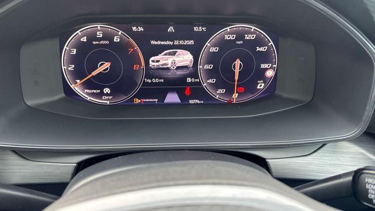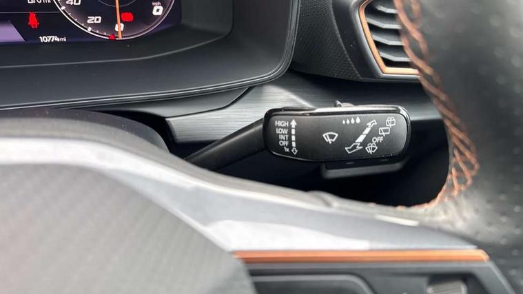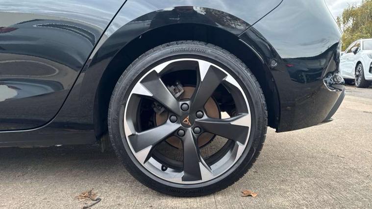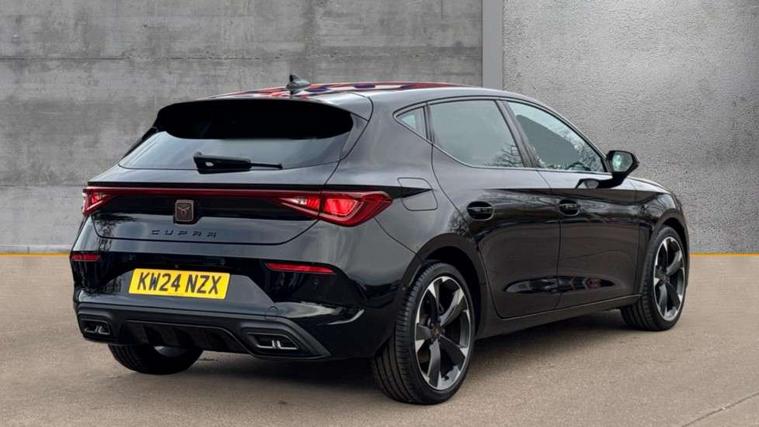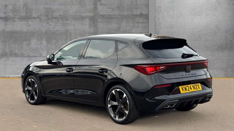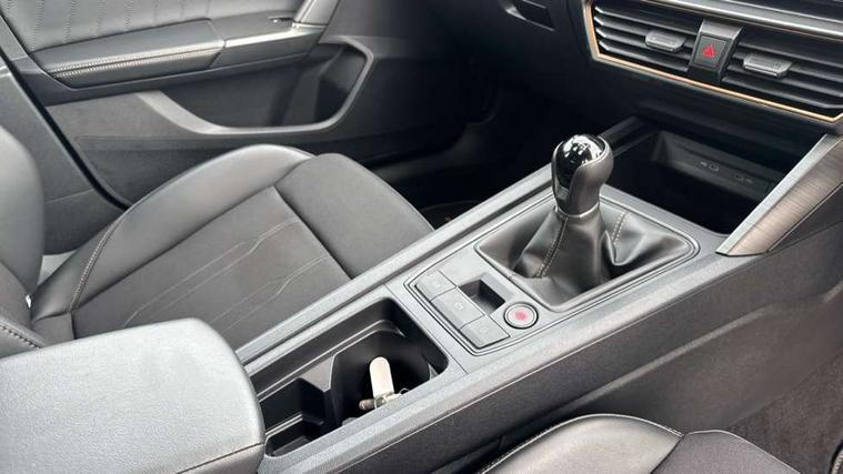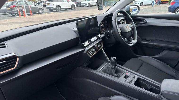 CUPRA drive profile selection with (Comfort/Sport/Individual), throttle response and gearshift mode, Digital cockpit, E-call, Electro mechanical speed sensitive power steering, Four x USB Type C ports (2 in front and 2 in rear), Front assist with forward collision warning braking reaction to vehicles, pedestrians and cyclists, Full link smartphone integration with Mirror Link, wireless Apple CarPlay and wired Google Android Auto, Lane assist, Lockable tailgate, Park assist (inc front/rear parking sensors), Rear view camera, RPM, trip computer, outside temp gauge, instrument light brightness, low fuel warning light, lights on reminder, gearshift indicator, Service interval indicator, Start/stop system with regenerative braking, Wireless phone charger, Sports suspension, Auxiliary input socket, Auto dimming rear view mirror, Body colour door handles, Body coloured bumpers, Cupra sports bumpers, Dark tinted rear windows, Electric front/rear windows, Electrically adjustable, heated and folding door mirrors, LED front fog lamps with cornering function, LED headlights with dynamic turn signals, tail lights, rear fog lights with rear coast to coast lighting, Rain sensing wipers, Rear diffuser with twin exhaust pipe on each side, Rear side wing doors, Rear wash/wipe, Separate daytime running light with automatic headlight control and coming home feature, Third brake light, 12v power supply in centre console, 3 seat bench in 2nd row, 5 headrests, 60/40 split rear bench seat with armrest, Ambient lighting with glovebox, footwell and single monocolour, Cupra Leather flat bottomed, perforated steering wheel, Driver/passenger manual seat height adjustment, Folding boot cover, Front and rear reading lights X 4, Front centre armrest, Front seats manual lumbar adjustment, Grey headlining, Height/reach adjust steering wheel, Illuminated interior front door sills, ISOFIX points in outer rear seats with top tether anchorage points, Jack and tool kit, PVC/Cloth upholstery with copper stitching, Single front passenger seat, Sports seats, Sunvisors with illuminated mirror, Three zone climate control, Media system plus with navigation pack - Leon Cupra, Safety and driving pack (M) - Cupra leon, 3 point seatbelts on all rear seats, ABS, Brake control system - ESC and brake booster, Child proof door locks, Cupra black brake calipers, Driver and front passenger airbags with front passenger airbag de-activation, front side and curtain airbags, Electronic parking brake, Extended safety system - seat belt tensioner, window closure and hazard lights, Hill hold control, Rear disc brakes, Seat belt reminder for front and rear seats, Tiredness recognition system, Tyre pressure monitoring system, Anti theft alarm system with interior monitoring in cab, backup horn and towing protection, KESSY Advanced - Keyless start, keyless entry, Locking wheel bolts, Chrome and copper interior detailing, 18" Machined sport black and silver alloy wheels with 92Y tyres,