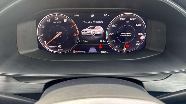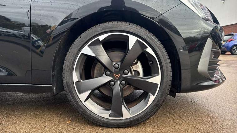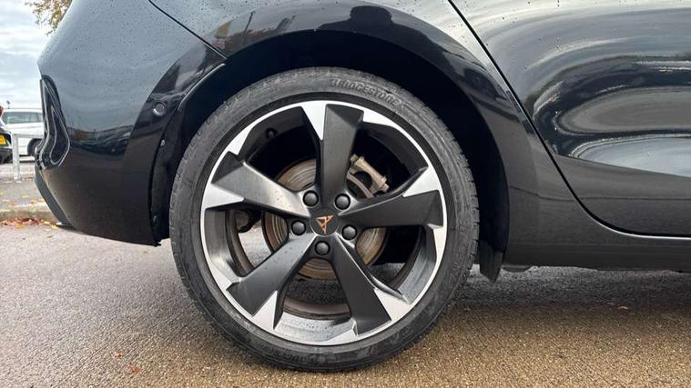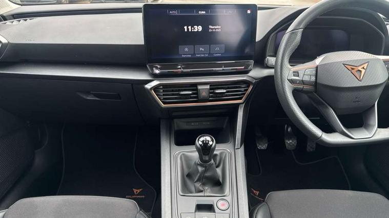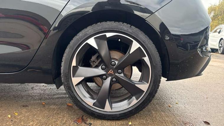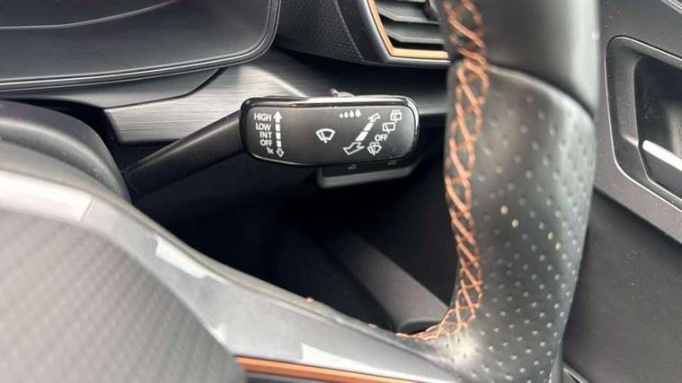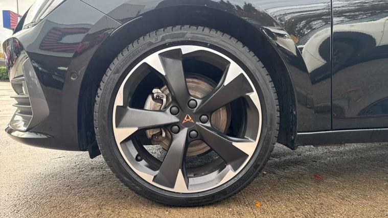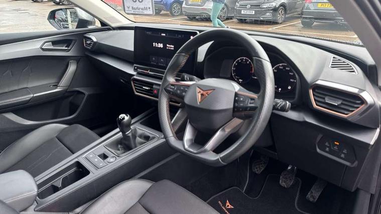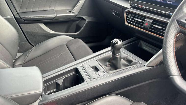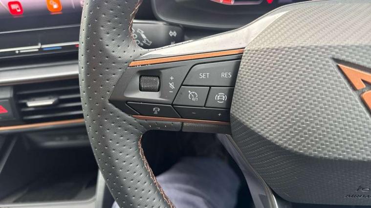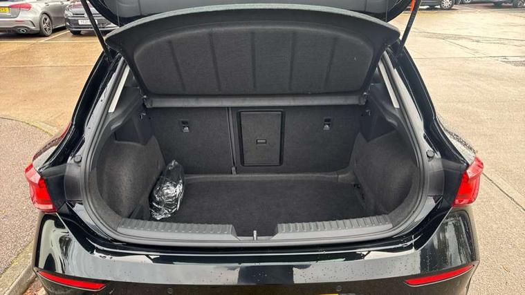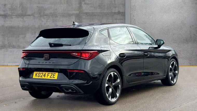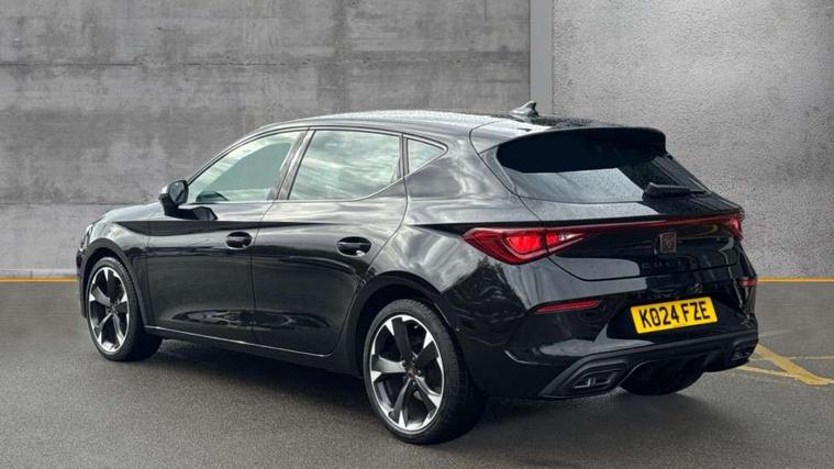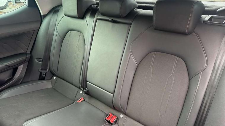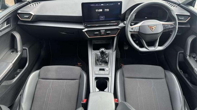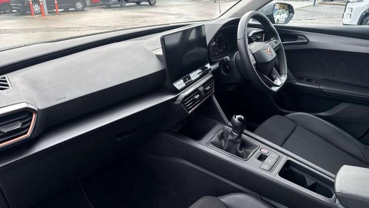 CUPRA drive profile selection with (Comfort/Sport/Individual), throttle response and gearshift mode, Digital cockpit, E-call, Electro mechanical speed sensitive power steering, Four x USB Type C ports (2 in front and 2 in rear), Front assist with forward collision warning braking reaction to vehicles, pedestrians and cyclists, Full link smartphone integration with Mirror Link, wireless Apple CarPlay and wired Google Android Auto, Lane assist, Lockable tailgate, Park assist (inc front/rear parking sensors), Rear view camera, RPM, trip computer, outside temp gauge, instrument light brightness, low fuel warning light, lights on reminder, gearshift indicator, Service interval indicator, Start/stop system with regenerative braking, Wireless phone charger, Sports suspension, Auxiliary input socket, Auto dimming rear view mirror, Body colour door handles, Body coloured bumpers, Cupra sports bumpers, Dark tinted rear windows, Electric front/rear windows, Electrically adjustable, heated and folding door mirrors, LED front fog lamps with cornering function, LED headlights with dynamic turn signals, tail lights, rear fog lights with rear coast to coast lighting, Rain sensing wipers, Rear diffuser with twin exhaust pipe on each side, Rear side wing doors, Rear wash/wipe, Separate daytime running light with automatic headlight control and coming home feature, Third brake light, 12v power supply in centre console, 3 seat bench in 2nd row, 5 headrests, 60/40 split rear bench seat with armrest, Ambient lighting with glovebox, footwell and single monocolour, Cupra Leather flat bottomed, perforated steering wheel, Driver/passenger manual seat height adjustment, Folding boot cover, Front and rear reading lights X 4, Front centre armrest, Front seats manual lumbar adjustment, Grey headlining, Height/reach adjust steering wheel, Illuminated interior front door sills, ISOFIX points in outer rear seats with top tether anchorage points, Jack and tool kit, PVC/Cloth upholstery with copper stitching, Single front passenger seat, Sports seats, Sunvisors with illuminated mirror, Three zone climate control, Media system plus with navigation pack - Leon Cupra, Safety and driving pack (M) - Cupra leon, 3 point seatbelts on all rear seats, ABS, Brake control system - ESC and brake booster, Child proof door locks, Cupra black brake calipers, Driver and front passenger airbags with front passenger airbag de-activation, front side and curtain airbags, Electronic parking brake, Extended safety system - seat belt tensioner, window closure and hazard lights, Hill hold control, Rear disc brakes, Seat belt reminder for front and rear seats, Tiredness recognition system, Tyre pressure monitoring system, Anti theft alarm system with interior monitoring in cab, backup horn and towing protection, KESSY Advanced - Keyless start, keyless entry, Locking wheel bolts, Chrome and copper interior detailing, 18" Machined sport black and silver alloy wheels with 92Y tyres,