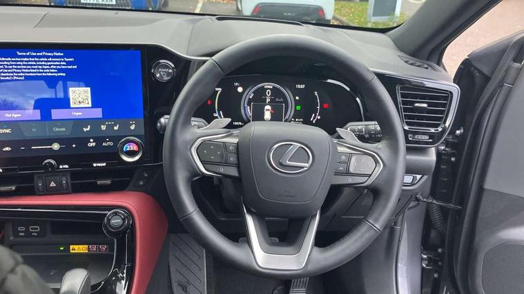 360 degree panoramic view monitor, 4 driving modes EV/Eco/Normal/Sport, 7" display in instrument binnacle, Blind spot monitoring with rear cross traffic alert, Bluetooth telephone connectivity, eCall emergency system, Electric speed sensitive power steering, Extended lexus safety+ system includes front cross traffic alert and lane change assist, Fully automated parking, Head up Display, Intelligent parking sensors - 4 front and 4 rear, Lane change flasher function, Lexus link connect - Cloud based navigation, cloud based voice assistant, always online, 14" HD touchscreen, embedded nav and faster CPU, Push button starter, Reversing camera with back guidelines, Service interval indicator, Tailgate, Tazuna cockpit with 7" improved meters display, 10" HUD and capacitive touch steering wheel switches, Wireless Apple CarPlay and wired Android Auto, Wireless Smartphone charger, 6.6 kW onboard charger, All Wheel Drive (AWD), Hybrid automatic transmission, Vehicle Dynamics Integrated Management (VDIM), Vehicle Stability Control (VSC), 4 USB ports - 2 front, one USB C, 2 rear USB C, DAB Digital radio, 4 eye LED headlight with adaptive high beam, Automatic headlights, Digital rear view mirror, Double hidden exhaust pipes, Electric sunroof, Front and rear one touch power windows, with anti-jam protection, Headlight cleaners, Heated, auto-folding, auto-dimming outside mirrors with reverse tilt function and turn indicators, Illuminated door handles with puddle light, LED brake lights and rear lights with emergency brake signal, LED cornering lights, LED daytime running lights, LED front fog lights, LED Indicators, Power back door with kick sensor, Privacy glass, rear doors and tailgate, Rain sensor windscreen wipers, Rear side wing doors, Rear wiper, 12V accessory port centre console and luggage compartment, 2 cupholders in front centre console, 2 x fixed shopping bag hooks in boot, 2 x sun visors with vanity mirror and lamp, 3 seat bench in 2nd row, 4 way electrical lumbar adjustment for driver, 4 x tie down hooks in the boot, 60/40 split folding rear seat, 8 way driver/passenger electrically adjustable front seats, Adjustable rear seat backrest, Card holder installed in driver and passengers sun visors, Centre armrest with storage box, Door courtesy lights, Driver seat memory function, Dual zone climate control air conditioning system with humidity sensor, Front and rear head restraints, Front and rear textile carpet mats, Front passenger seat, Heated and ventilated front seats, Heated rear seats, Heated steering wheel, Leather gear lever, LED ambient lighting, LED interior illumination, Power adjustable leather steering wheel with paddle shifts, Rear centre armrest with 2 cupholders, Smooth leather upholstery, Whiplash Injury Lessening (WIL) feature (active headrest) for seats, 2 x Isofix child rear seat restraints, 3 point ELR front seatbelts with pretensioners, 3x3 point rear seat belts, ABS, Adjustable seat belt anchor points, Driver and front passenger 2 stage airbag, Driver/front passenger side airbags, Drivers knee airbag, E-Latch with safe exit assist, EBD + Brake Assist, ECB (Electronically Controlled Brake System), Electronic parking brake, Front and rear curtain shield airbags, Front center airbag, Front passenger seat cushion airbag, Hill assist control, Lexus safety system - dynamic radar cruise control, pre collision system day and night, lane tracing assist, road sign, OTA, Manual rear child locks, Passenger airbag cut-off device, Traction control, Tyre pressure warning, Anti-theft system with alarm, intrusion sensor, glass breakage sensor, tilt sensor and engine immobiliser, Locking wheel nuts, Smart card key, Smart keyless entry, Speed sensitive auto door locking, Two motion door lock with double lock, Ultra Wide Band (UWB) Anti-theft system, VIN Window etching, Organic inlay, Sumi blackwood inlay,