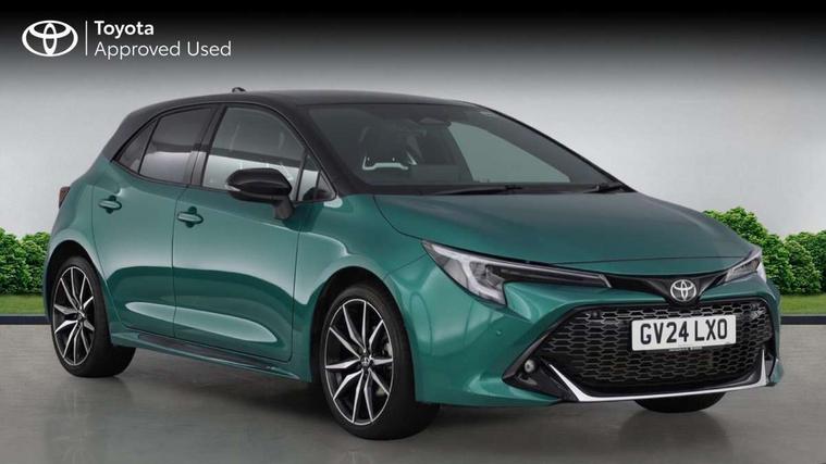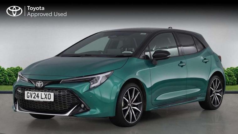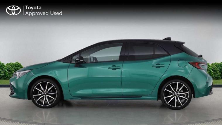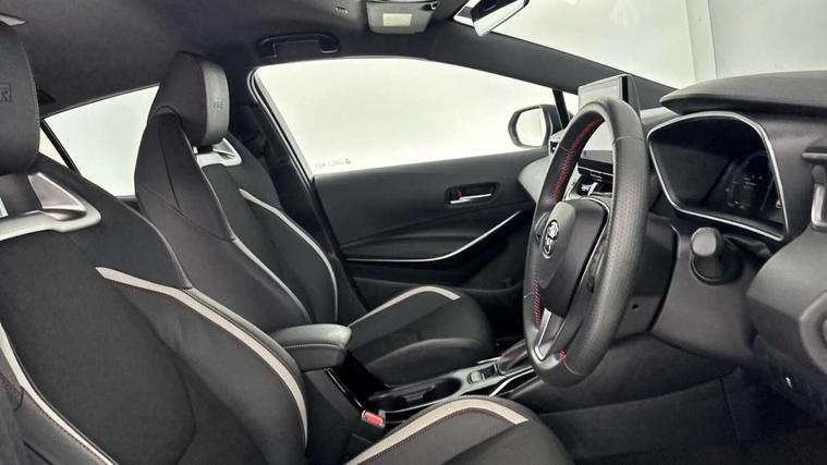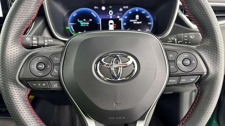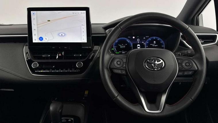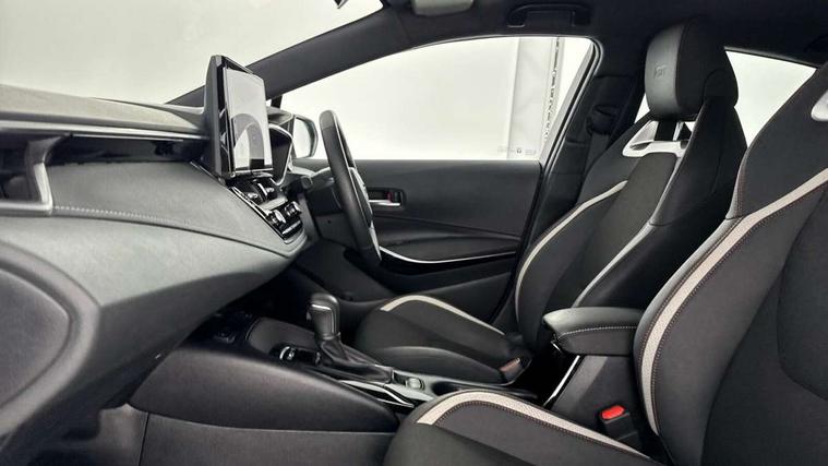 10.5" Multimedia display screen, Bluetooth telephone connectivity, Connected car functionality upgrade, tracker, remote status and e-care, Drive mode select (Eco, Normal), E-call, Electrically assisted power steering, EV drive indicator, Front and rear parking sensors with auto brake, Full Digital 12.3" TFT Digital Combimeter, Key reminder warning, Lane Departure Alert (LDA) switch on steering wheel, Memory on adjustable speed limiter, MyT connected services, Proactive driving assist (PDA), Reversing camera, Smart entry and push button start with GR Logo, Smartphone integration with Apple CarPlay and wired android auto, Tailgate, Toyota remote services, Toyota smart connect navigation, Wireless charger, Gasoline particulate filter, Vehicle Stability Control (VSC), 6 speakers, AM/FM radio, DAB Digital radio, Front USB-C in centre console, Front USB-C in dashboard, Smart voice assist/ Voice recognition, USB and Aux in connectors + 12V front outlet, Anti-jam protection on power windows, Auto up and down function on all power windows, Automatic folding mirrors, Automatic headlights with high beam assist, Black centre and side air vents, Black toyota logo in front, Body coloured bumpers, Body coloured door mirrors, Body coloured outside door handles, Dark chrome lower grille, Electrochromatic mirror, Follow me home headlights, GR Sport dark chrome front mesh grille and black rear grille, GR Sport exclusive under guard, GR sport scuff plates, LED daytime running lights, LED dual beam projector headlights, LED front fog lights, LED High mounted stop light, LED rear combi lights with LED lightguide, Manual headlight levelling system, New grille pattern, Noise reduction layer on windscreen, Piano black diffuser, Power adjustable heated door mirrors, Power front windows, Power rear windows, Privacy glass with UV filter, Rain sensing wipers, Rear side wing doors, Rear window defogger, Rear window wiper, Reverse tilting door mirrors, Rocker and door lower moulding, Roof spoiler, Satin chrome insert on front air vents, Satin chrome insert on front door assist grips, Satin silver front spoiler, Shark fin antenna, Tailgate release with push button, Time adjustment on intermittent wiper, Turning signal integrated indicators in door mirrors, Unique lower skirt, Unique side rocker with black insert, UV-filter on driver and passenger windows, 2 Shopping bag hooks in luggage compartment, 3 rear headrests, 3 seat bench in 2nd row, 3 spoke leather steering wheel with satin insert/red stitching + gear knob, 4 tie down hooks in luggage compartment, 60/40 split folding rear seat, Adaptive cruise control (ACC) switch on steering wheel, Adjustable speed limiter switch on steering wheel, Audio, multimedia and telephone switches on steering wheel, Black armrest on centre console box, Black gear shift console, Boot light, Centre room light, Driver and front passenger personal light, Driver and passenger assist grip, Driver and passenger seatback pockets, Driver and passenger sun visor with mirror and light, Dual zone automatic air conditioning with ECO mode switch, Fabric/synthetic leather upholstery, Front and rear cup and bottle holders, Front door pockets, Front head restraints, Front passenger seat, Front sliding synthetic leather armrest, GR Sports seats with partial leather bolsters, Heated seats, Illuminated entry system in room lamp, ISOFIX seat fixing (2 fixings on rear outer seats), Manual height adjustable for driver and front passenger seat, Manually tilt with sliding driver and front passenger seat, Nanoe-X air purifier, Parcel shelf, Pollen filter, Power window switches with satin chrome inserts, Rear armrest with 2 cupholders, Rear passenger coat hooks (2), Red stitching on gear shift, Remote air conditioning, Satin chrome inside door handles, Satin chrome surround on speedometer, Sliding armrest on centre console box, Slow opening glovebox with lights, Textile floor mats, Tilt/telescopic steering column, Voice recognition switch on steering wheel, Whiplash Injury Lessening (WIL) feature (active headrest) for seats, White ambient lighting on open tray and front cup holder, Toyota safety sense 3 pack - Corolla, 3x3 point rear seatbelts, Adjustable driver and front passenger seat belt extender to top anchor point, Anti lock braking system + Electronic brake force distribution, Brake assist function, Child locks on rear doors, Downhill Assist Control (DAC), Electronic parking brake, Emergency brake light signal (EBS), Front passenger airbag on/off switch, Front seatbelt reminder, HAC - Hill start assist control, Rear seat belt reminder, Seatbelt pretensioners and force limiters, Supplemental restraint system (SRS) 7 airbags - dual driver, dual side curtain, side impact and driver knee airbags, Traction control, Tyre pressure warning system, Acoustic vehicle alert system (AVAS), Alarm with motion sensor and immobilizer, Power passenger window lock, Remote central locking + deadlocks, GR Sport interior styling with accents and exterior styling, Satin chrome dash trim, Soft touch texture on upper dashboard, Stitching on lower dashboard, 18" Black machined face 10 spoke alloy wheels, Tyre repair kit, Unique wheel finish with red wheel cap,