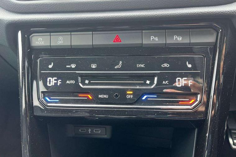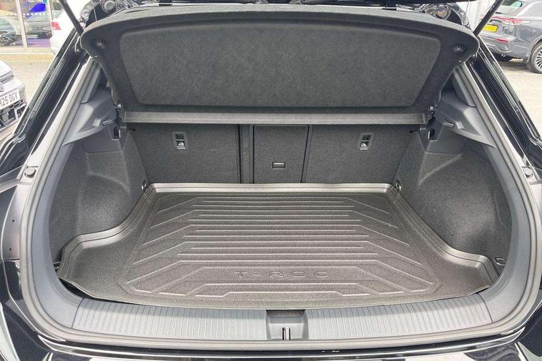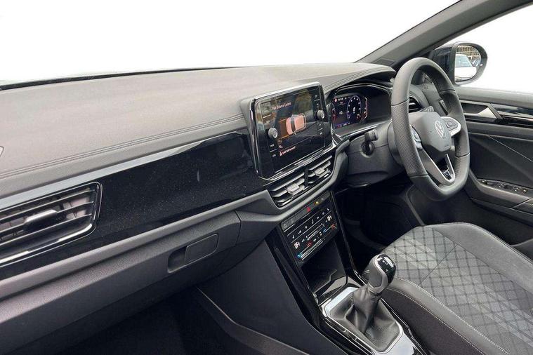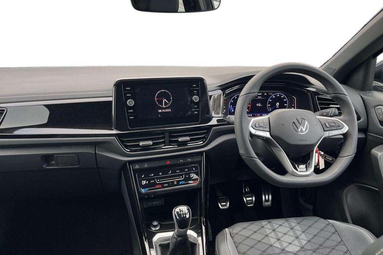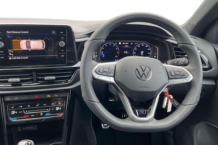 10.25" Digital cockpit pro, Advanced driver attention and drowsiness monitor, Emergency call service, Lane keeping system Lane Assist, Mobile phone interface, Modified key software - reduce switch off time for key status change to Long no motion, Online services, Park assist including front and rear parking sensors, Service interval indicator, Tailgate/trunk lid release from outside, Think blue trainer driver tips and journey analysis, Warning sound and light for front seatbelts unfastened, Wireless app connect, Battery regeneration during braking, Start/stop function with battery regeneration, DAB Digital radio, Diversity antenna for FM reception, Front and rear 6 speakers, Music playback - MP3, WMA and AAC files, Premium USB cable in choice of either Apple or Android smartphone compatibility, SD card slot, Simultaneous pairing of 2 compatible mobile devices, Title and cover art display, We Connect and We Connect Plus functionality, Auto dimming interior rear view mirror, Automatic hazard lights activation under emergency braking, Automatic headlight control with LED separate daytime running lights with coming/leaving home function, Body coloured exterior mirror housings and door handles, Electrically adjustable and heated door mirrors, Extended roof spoiler, Exterior mirrors aspherical on driver side, convex on front passenger side, External USB type C socket and charging sockets, Front windscreen wiper with intermittent wipe and 4 position delay, Heated rear window, LED 3rd brake light, LED rear combination lamps, LED rear number plate lights, Power windows with comfort operation and circuit breaker, Privacy glass for rear side windows and rear window, R-Line design body coloured bumpers, Rain sensor, Rear exhaust tailpipe, Rear fog light on one side and reversing lights on both sides, Rear side wing doors, Rear wash/wipe with intermittent wipe setting, Remote electrically foldable door mirrors, puddle lights and reverse activated passenger's door mirror, 12V power socket in centre console, 3 rear head restraints, 3 seat bench in 2nd row, 4 load lashing points in luggage compartment, Air care climatronic air conditoning system with active combination filter and 2-zone temperature control, Black roof lining, Chrome plated decorative trims, Chrome plated radiator grille inserts, air vent surrounds and light switch surrounds, Door and side trim panel with leatherette insert, Front + rear carpet mats, Front centre armrest, Front cupholders x 2, Front footwell illumination, Front reading light, Front scuff plates with R Line logo, Front seat back storage pockets, Glove compartment door with light, Instrument lighting, white adjustable panel illumination, Interior ambient lighting and surround lighting, Interior light delay, Isofix child seat preparation, Leather gearshift handle, Load-through provision with cup holder when folded down ('Unsplit rear seat bench, split folding backrest, with centre armrest), Luggage compartment lighting, Single front passenger seat, Stainless steel pedals, Storage compartment in left and right luggage area, Storage compartment in rear doors, Storage compartments in driver and front passenger doors, Sunvisors with illuminated vanity mirrors, Variable boot floor, height adjustable and removable, Driver assistance pack without proactive passenger protection - T-Roc, 3 point height adj front seatbelts + pretensioners, 3 point seatbelts in outer rear with ECE label, ABS, Child locks on rear doors, City emergency braking and pedestrian monitoring, Driver and front passenger airbag with front passenger airbag deactivation, Driver and front passenger safety-optimised head restraints, Drivers seatbelt reminder, Electronic parking brake, Electronic Stability Control (ESC) inc EDL (Electronic Differential Lock) and ASR (Traction Control), Front and rear passengers curtain airbag system including front side airbags, Hill start assist, Predictive pedestrian protection, Rear disc brakes, Two tone horn, Tyre pressure loss indicator, Volkswagen roadside assistance, Piano black decorative inserts in dashboard and front door trim panels, Trims for alloy wheels,