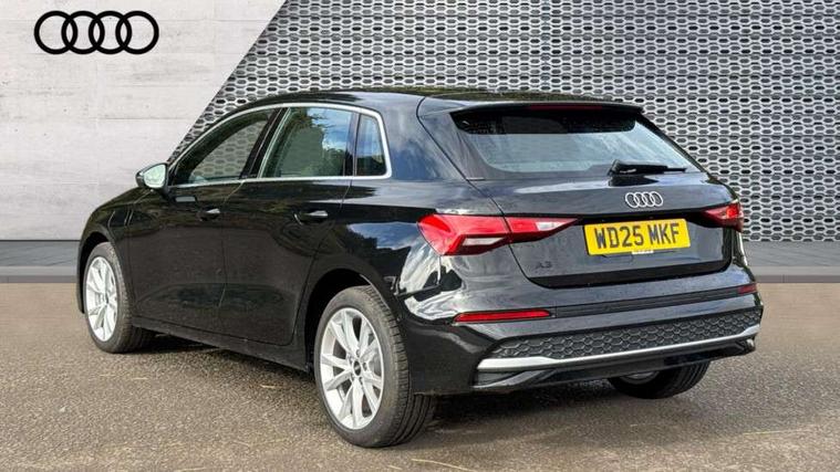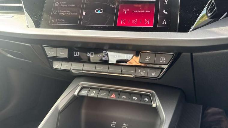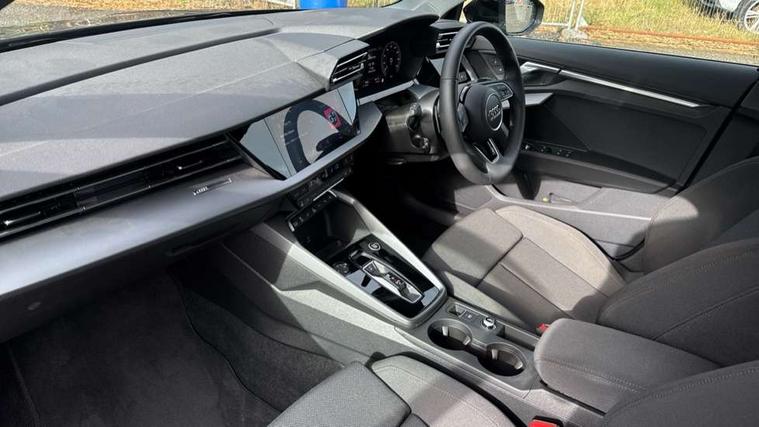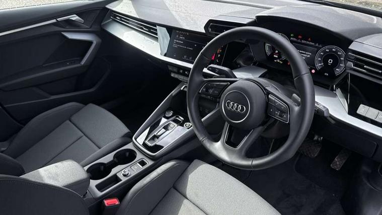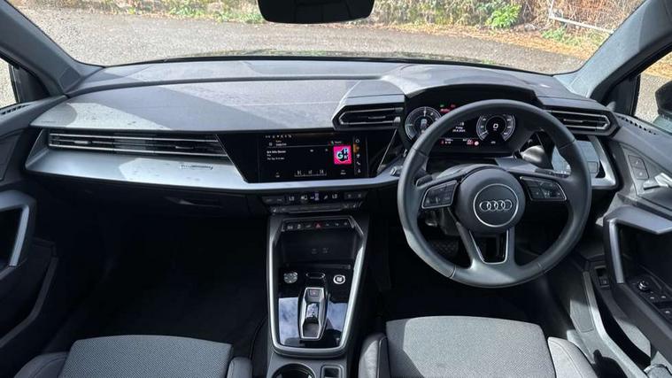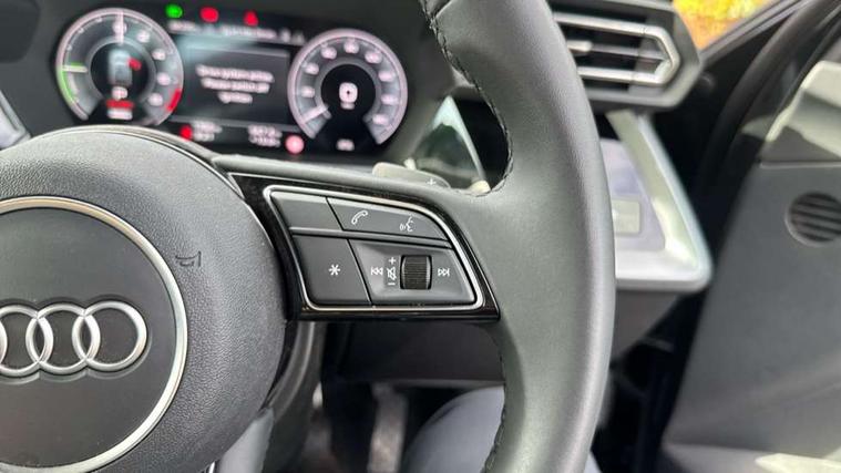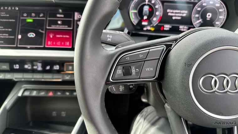 Adjustable speed limiter, Audi drive select, Audi smartphone interface with app store includes wireless Apple carplay, Android auto and Amazon alexa integration, Audi virtual cockpit plus - 12.3" full HD resolution dynamic digital instrument cluster, Automatic start/stop system with recuperation, Bluetooth interface, Camera based traffic sign recognition, Collision avoidance assistant, Cruise control, Distraction and Fatigue warning, e-Call (emergency call), Electromechanical power speed sensitive steering, Emergency assist, Lane departure warning system, MMI Navigation Plus with high resolution 10.1" colour touch screen display, Park Assist with parking system Plus, Service indicator, Trip computer, Voice control system with natural language interaction, 3 pin 10 amp domestic charging cable, CCS socket for DC charging, Charging cable for public charging, mode 3 (type 2), 32 A, Compact charging system, Industrial connector CEE 32 A, 230 V, length 1.6 m, Standard suspension, Type 2 socket for AC charging, Audi Phonebox light with wireless charging, Audi sound system - 10 loudspeakers including centre loudspeaker and subwoofer, DAB Digital radio, USB ports with charging function in the rear, 3rd brake light, Acoustic glass windscreen, Aluminium window trim, Auto dimming frameless rear view mirror, Body colour exterior mirrors, Body colour roof spoiler, Dipped beam, main beam, position light and turning light, Electrically adjustable/heated/folding/auto dimming door mirrors with integrated LED indications + kerb view function for passenger side, Exterior model badging, Front electric windows, Front radiator grill in high gloss dark chrome, Front side air inlets in grained matt black with silver frame, Heat insulating glass windscreen, LED daytime running lights, LED headlights and halogen rear lights, Light and rain sensors, Rear diffuser and grill in grained matt black with silver frame, Rear electric windows, Rear side wing doors, Rear window, rear door windows and rear side windows in clear glass, Rear wiper, 12V socket and storage compartment in front centre console, 3 seat bench in 2nd row, 3 spoke leather multifunction steering wheel with gear shift paddles, 3-zone deluxe automatic air conditioning, 4 way electrically adjustable lumbar support for driver and front passenger, 60/40 split folding rear seat bench, Black front and rear floor mats, Convenience auxiliary air conditioning, Front and rear headrests, Front centre armrest, Front door sill trims with aluminium inlay, Heated front seats, Height and reach adjustable steering wheel, Manual boot compartment lid, Manually adjustable front seats, Routine cloth upholstery with front sports seats, Seat side bolsters, Single front passenger seat, Steel grey cloth headlining, Aluminium interior elements pack - A3, LED interior lighting pack -A3, 3x3 point rear seat belts, Acoustic vehicle alerting system, Driver and front passenger airbag with passenger airbag deactivation, Electronic Stabilisation Control (ESC) including ABS, ASR and EDL, First aid kit with warning triangle and 2 safety vests, Front side airbags with head airbags and interaction airbag, Hill hold assist, Pre-sense front with pedestrian and cyclist detection, Seatbelt monitoring, Tyre pressure loss indicator, Anti theft alarm, Anti-theft wheel bolts, Electronically operated child locks, Immobiliser, Remote central locking with safelock, Black dashboard, Inlays in volcano grey fine paint finish, Tyre repair kit,