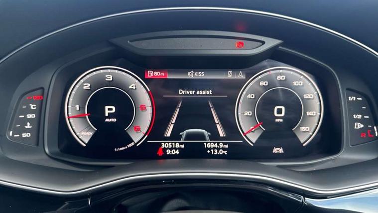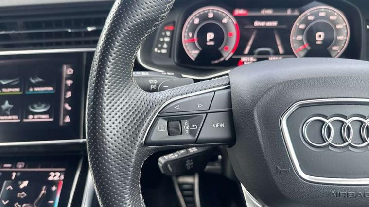 10.1" and 8.6" Dual colour touchscreens, Audi connect safety and service (e-call), Audi connect with Amazon Alexa Integration, Audi drive select, Audi parking system plus includes 360 degree display with front and rear sensors, Audi phone box light with wireless charging, Audi virtual cockpit - 12.3" high resolution LCD display with fully customisable instrument cluster, Automatic start/stop system, Electro-mechanical PAS, Low washer fluid indicator, MMI - Multi Media Interface control system, MMI navigation plus with MMI touch, Natural voice recognition, On board computer, Operating buttons in black, glass look with haptic feedback, Power operated tailgate, Rear view camera, Service interval indicator, Smartphone interface includes wireless Apple carplay/Android Auto, 48V Mild hybrid technology, Adaptive sport air suspension, Diesel particulate filter, Quattro all wheel drive with self locking centre differential, Audi music interface with 2 USB ports with charge and data functions, Audi sound system with 6 channel amplifier, 180 watt amplifying capacity and 10 loudspeakers including subwoofer, Aux-in socket, DAB Digital radio, 3rd brake light, Acoustic windscreen, Aluminium window trim, Audi beam, Audi HD Matrix LED headlights with dynamic front and rear indicators, Auto dimming frameless rear view mirror, Black Audi rings and black badging, Coming/leaving home lighting function, Electric front+rear windows, Electrically folding auto dimming/adjustable/heated door mirrors with memory function, LED side indicators and kerb view function for passenger side, Headlight washers, Heat insulating glass in windshield, LED signature daytime running lights, Platinum grey front spoiler lip and diffuser insert with honeycomb grille in black, Privacy glass - dark tinted rear and rear side windows from B-pillar backwards, Rain and light sensors, Rear side wing doors, Rear wiper, 2 zone automatic climate control, 3 bench rear seats in 2nd row, 4-way lumbar support for front seats, 40:20:40 split folding rear bench seat, Audi phone box light, Black cloth headlining, Comfort front centre armrest, Driver seat memory function, Electrically adjustable front seats, Front head restraints, Front/rear floor mats, Heated front seats, ISOFIX child seat mounting for front passenger seat and 2 outer rear seats with top tether child seat mounting for all 3 rear seats, LED interior ambient lighting, Luggage compartment sill protection in stainless steel, Rear centre armrest with 2 cupholders, Rear headrests, Seat cushion displaceable by 100mm in the ratio 60:40, Single front passenger seat, Stainless steel pedals, Sunvisors with illuminated vanity mirrors, 3 point seatbelts on all seats, Audi pre sense front, Child locks on rear doors, Driver and front passenger, front side and curtain airbags, Electromechanical parking brake, Electronic Stability Control (ESC) including ABS, ASR and EDL, Front passenger airbag deactivation, Hill descent control, Hill hold assist, Predictive pedestrian protection, Seatbelt monitoring, Traction control, Tyre pressure loss indicator, Warning triangle and first aid kit, Anti theft alarm with tow away protection, Anti-theft wheel bolts and wheel loosening detection, Immobiliser, Keyless go with remote central locking, Polished oak trim with grey finish inlay, Tool kit, Tyre repair kit,