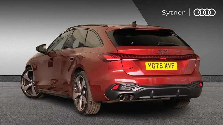 Adaptive cruise control, Advanced driver attention and fatigue montior, Audi application store, Audi assistant, Audi connect emergency call and service, Audi drive select, Audi virtual cockpit plus with 11.9" OLED colour display, Automatic start/stop system with coasting functionality, Camera based traffic sign recognition, Intersection assist, Lane change assistant with exit warning system, rear cross traffic alert and rear turn assist, Lane departure warning with emergency assist, MMI 10.9" front passenger touch display, MMI navigation plus with high resolution 14.5" OLED touchscreen colour display, Park assist plus, Parking system plus with 360 display, Progressive steering with servotronic, Smartphone interface, Swerve assist and turn assist, Top view camera, Traffic sign based speed limiter, Sports suspension lowered by 20mm, 2 USB-C ports in both the front and rear, Audi sound system impressive sound with 8 loudspeakers including centre speaker and subwoofer, 6-channel amplifier with a total output of 180 watts, DAB digital radio reception, Smartphone compartment with wireless charging, Aluminium window trims, Auto dimming rear view mirror, Black door handles, Black roof rails, Dark chrome-plated tailpipe trims, Door mirrors - electrically adjustable, heated, folding and auto dimming on both sides, Front and rear electric windows, Front door sill trims with aluminium inlays, illuminated with 'S' logo, Headlight cleaning system, High beam assist, LED daytime running lights, LED rear lights pro incl. dynamic rear indicators and illuminated light strip with animated coming and leaving home function, LED third brake light, Matrix LED headlights with eight light signatures selectable via the MMI or the myAudi app, Privacy glass, Rear and side windows with heat insulating glass, Rear side wing doors, Rear wash/wipe, S Line badges on the front wings, S line bumpers, radiator grille and diffuser in phantom black and diffuser insert in matt anthracite, White rhombus logo projection light in exterior mirrors, Windscreen with acoustic glazing, 3 rear headrests, 3 seat rear bench, 3 spoke leather steering wheel with multi-function buttons with touch control, flattened on top and bottom, with S badging and contrast stitching, 3-zone automatic climate control, 40:20:40 split folding rear seat bench with centre armrest and cup holders, Comfort front centre armrest, Electrically adjustable front seats, Front and rear floor mats, Front sport seats with integrated headrest and S embossed logo, Headlining in black cloth, Heated front seats, i-Size child seat mounting on the front passenger side and outer rear seats, i-Size and top tether on the outer rear seats, Luggage compartment lid, electrically opening and closing, Manual steering column height and depth adjustment, Memory function for driver seat, Single front passenger seat, Stainless steel pedals and footrest, Steering wheel grips in perforated leather and shift paddles, Ambient lighting package plus - A5, Black styling package plus - A5, 3x3 point rear seat belts, Acoustic vehicle alerting system, Convenience key with safelock, Driver airbag, Electric child safety locks, First aid kit with warning triangle and vests, Front emergency brake assist, Front passenger airbag, Front passenger airbag deactivation, Hill hold assist, Occupant detection in rear seat area, Proactive passenger protection system for front, sides and rear, Red brake calipers, Seat belt monitoring with rear seat occupant reminder, Side airbags in front and rear with head airbag system and front interaction airbag, Tyre pressure loss indicator, Anti theft alarm, Anti-theft wheel bolts, Keyless Go, Accent surfaces and control buttons in gloss black, Black dashboard with contrast stitching, Softwrap in Dinamica with contrast stitching, Upper and lower interior elements in dinamica microfiber, 20" 5 arm fold design Audi sport alloy wheels in silk matt grey and gloss turned finish, Tyre repair kit,