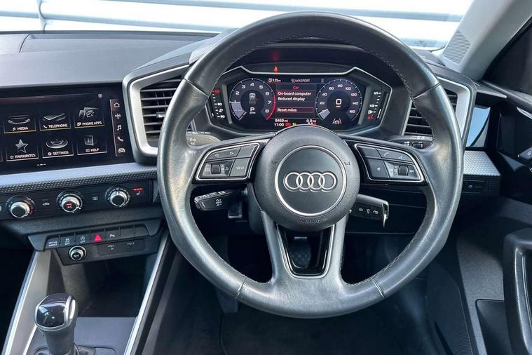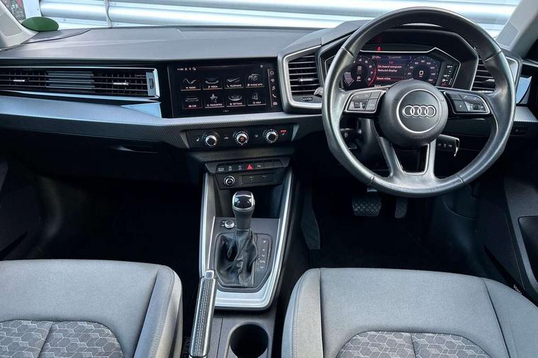 10.25" Digital instrument cluster display classis style instrument dials + speed, odometer, time, outside temperature, telephone menu + fuel level warning, Audi drive select - power steering assistance + engine + gear shift 3 preset modes (auto, dynamic, efficiency and an Individual mode), Audi smartphone interface with connect compatible smartphone via USB directly MMI display + Nav, music, third party apps controlled via MMI controller, Automatic start/stop system, Bluetooth interface, Cruise control, Driver's information system, Electromechanical power steering, Emergency e-call, Lane departure warning system, Rear parking sensor, Service interval indicator, Speed limiter, Voice control system, Washer fluid level indicator, Dynamic suspension, 2 x USB type C connection points, 6 passive loudspeakers, DAB Digital radio, MMI radio plus with 10.1" colour MMI display screen and MMI touch, Auto dimming rear view mirror, Body coloured bumpers, Body coloured door mirrors, Electric front and rear windows, Electrically adjustable, heated, folding door mirrors with integrated LED side indicator, Front side air inlets in grained matt black and C frame in anthracite black, Heat insulating glass windscreen and side windows, Heated rear windscreen, High level LED brake light, LED headlights with LED rear lights + dynamic rear indicators + headlight adjustment and high beam, turning light + LED daytime running lights, Radiator grille and rear diffuser in matt anthracite black, Radiator protective grille frame in matt aluminium silver, Rain and light sensors, Rear fog lights, Rear side wing doors, Rear wiper, Side front spoiler lips in grained matt black, 12V socket in centre console with two cup holders, 3 rear seats with headrests, 3 seat bench in 2nd row, 3 spoke leather multifunction plus steering wheel, 40:60 Split folding rear seat or folded fully, Black front and rear floor mats, Door sill trims with aluminium inlay, Driver and passenger seat with manual height adjust with forward and backwards adjustment, Front head restraints, Front passenger seat, Grey cloth headlining, Height and reach adjustable steering wheel, ISOFIX child seat mounting for front passenger and outer rear seats including top tether attachment point of outer rear seats, Leather gear knob with aluminium trim, Leatherette handbrake grip, Luggage compartment light with front and rear reading lights, Manual air conditioning, Manually adjustable lumbar support in front seats, Novum cloth upholstery with front sport seats, Luggage compartment pack - A1, 3x3 point rear seatbelts, Audi pre-sense front with pedestrain and cyclist recognition, Brake assist function, Driver and front passenger airbag with front side and head airbags, Electronic Stability Control including ABS, EBD, ASR and EDL, Front passenger airbag deactivation switch, Hill hold assist, Manual rear child locks, Seatbelt height adjustment for front seats, Seatbelt monitoring, Tyre pressure warning light, Warning triangle and first aid kit, Anti theft alarm, Anti theft wheel bolts and loose wheel warning, Immobiliser, Remote central locking with 2 foldaway keys, Aluminium trim for control switches, air vents and digital instrument cluster, Black dashboard, Silver grey accent areas including air vents, door handle recesses and centre console in diamond paint finish, Slate grey inlays polygon structure in fine paint finish,
