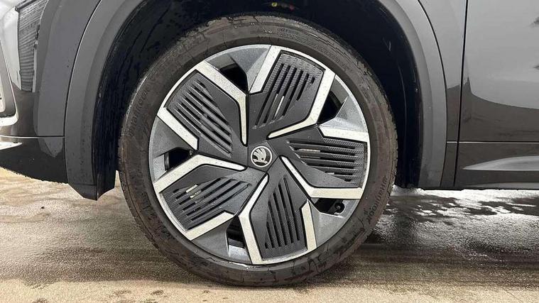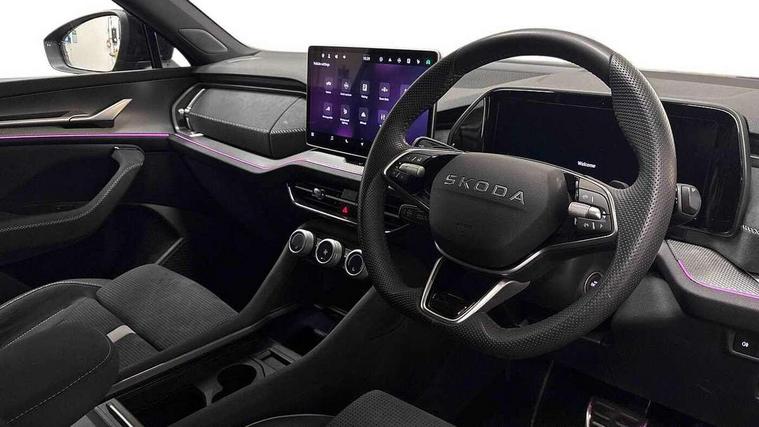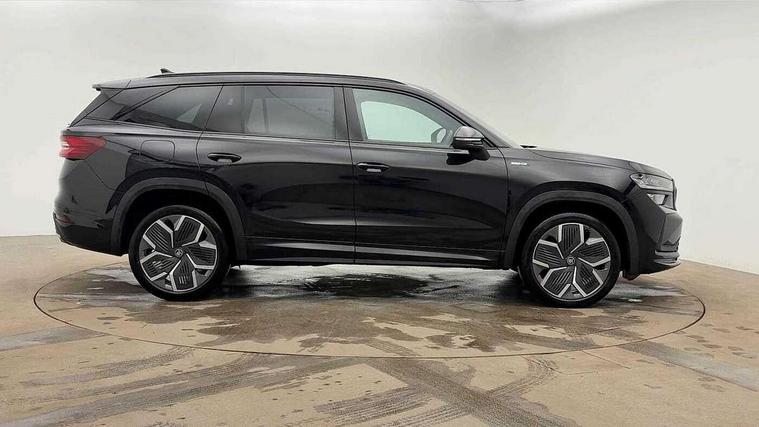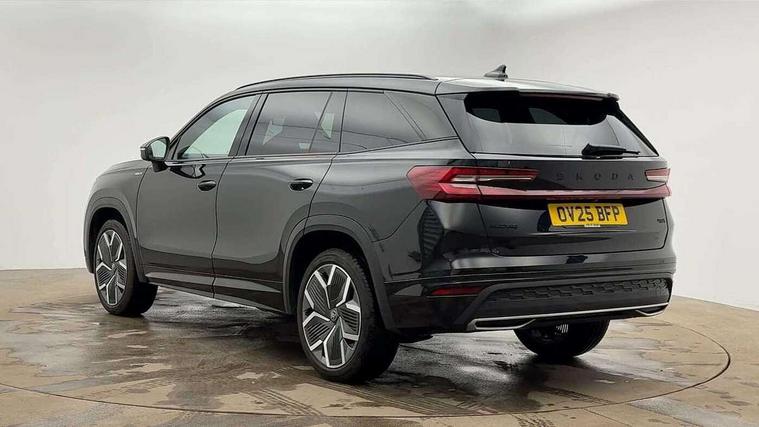 13" satellite navigation touchscreen display, Blind spot detection with door exit warning, Bluetooth system, ChatGPT functionality, Driver alert - Fatigue and drowsiness monitor, Dry display cleaner, Emergency call, Front and rear parking sensors, Front cross traffic assist, Lane assist, Off road modes, PAS, Rear traffic assist, Tailgate unlocking from outside, Traffic sign recognition, USB C Port x 2 in front centre console, Virtual Cockpit - 10.25" digital display, Voice control system, Wireless charging for two smartphones (15W) with cooling function, Wireless SmartLink for Apple CarPlay and Android Auto, Stop/start function, 2x USB-C in the rear, DAB Digital radio, Aero front windscreen wipers with intermittent function, Auto dimming rear view mirror, AWL (all weather lighting) and all weather light with cornering function, Black diffuser and decorative tailpipe with a unique dark chrome finish, Black roof rails, Black sports styling including front grille and window surrounds, Black wheel arch surrounds, Body colour door handles, Cornering light and poor weather light, Electric folding /adjustable/separted heated/folding door mirrors, auto dimming with boarding sports and memory function, Electric front and rear windows, Exterior black decorative trims, Front and rear sports bumpers including lower rear chrome strip, Gloss black door mirrors, Gloss black window frame and D pillar, Heat insulating glass in windshield, Heated rear window, Ice scraper in fuel tank cap, LED daytime running lights, LED third brake light in rear spoiler, Light assistant with automatic headlight control and coming home feature, Logo projection in door mirrors, Privacy glass, Rear roof spoiler, Rear side wing doors, Rear window wiper, Red decorative strip between rear LED lights, Safety reflectors on front and rear doors, Sportline badge on front fenders, Tailgate lettering in Black, Unique dark chrome design logo on alloy wheels, Window control switches with black trim, Windscreen wipers with rain sensor, Without engine designation, 1.5l bottle holder points in all door, 1x centre rear reading light, 2 seat bench in 3rd row, 3 configurable smart dials with 32mm coloured display, 3 seat bench in 2nd row, 4 foldable roof handles with rear coat hooks, Aluminium pedals, Ambient interior lighting - Dashboard, front-door stowage compartments, front and rear door panels and footwell lighting, Automatic gear selector on steering column, Chrome interior door handles, Driver/front passenger reading lights, Fabric headlining, Fixed bench 40:60:40 split folding backrests, Front and rear floor mats, Front centre armrest with jumbo box storage compartment, cup holder and 12V socket, Front sport seats, Height adjustable front headrests, Interior black decorative trims, Isofix child seat fittings in outer middle row rear seats and front passenger with top tether, Manually adjustable steering column, Pollen filter, Rear centre armrest with cupholders, Rear seat boot backrest release, Single front passenger seat, Skoda lettering on steering wheel, Storage pocket including mobile phone pockets on the backs of the front seats, Sunvisors with illuminated vanity mirrors, Three rear height adjustable headrests, Ticket holder on A Pillar, Tri zone climate control, Umbrella in door panel x1 made from sustainable materials, Upper and lower glovebox with card holder and coin compartment, USB C port by rear view mirror for charging only (15W), Acoustic package - Kodiaq, Performance package - Kodiaq, Sportline design selection pack - Kodiaq, Auto door release and activation of warning lights in the event of an accident, Driver and front passenger airbag with knee airbag and front passenger airbag deactivation, Electric child locks, Electronic parking brake, ESC (incl. ABS+EMD+MSR+ASR+EDL+HBA+DSR+RBS+ESBS+MCB+TSA+XDS), Front assist with braking reaction to vehicles, pedestrians and cyclists, Front disc brakes, Fuel cut off safety device, Height adjustable front 3 point seatbelts + pretensioners, Hill hold assist, Junction assist with automatic emergency braking, Rear disc brakes, Safety vest holder in door, Seat belt reminder for all seats, Three point rear seat belts, Two tone horn, Tyre pressure monitor, Alarm with interior monitoring and tilt sensor with safe function, Anti-theft wheel bolts, Immobiliser, Remote central locking with 2 keys, 20" Rila anthacite polished alloy wheel with black matte aero covers,