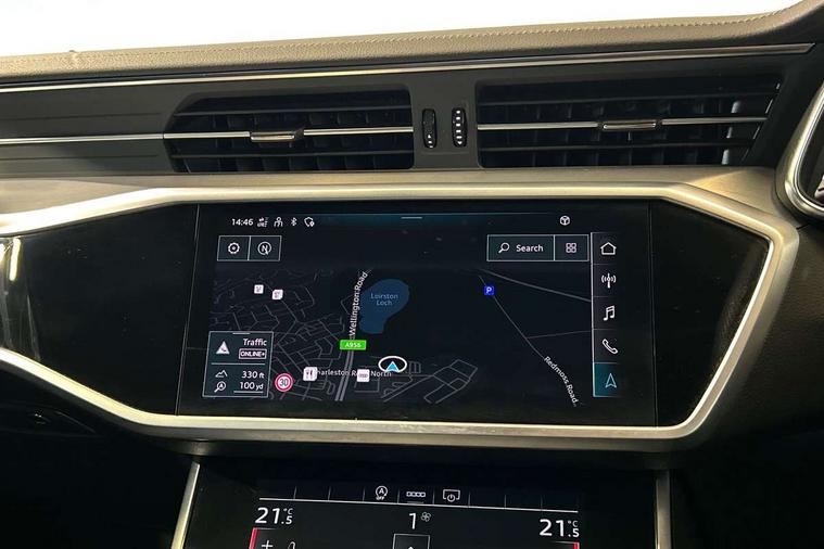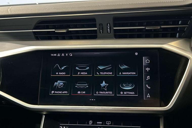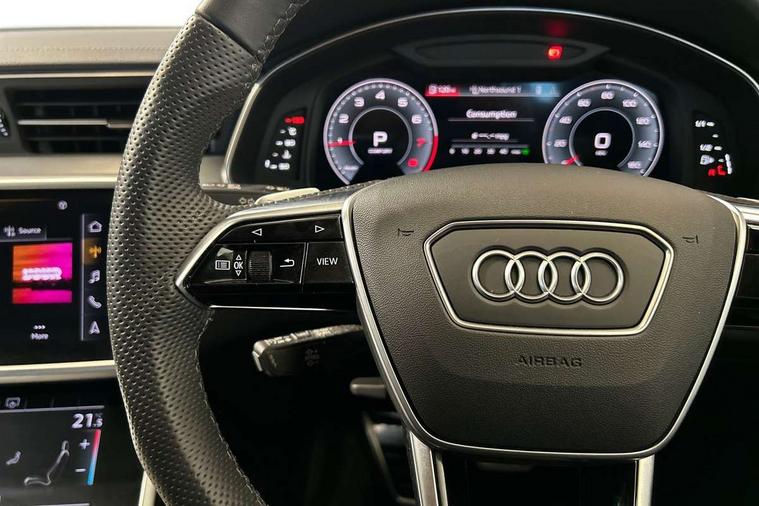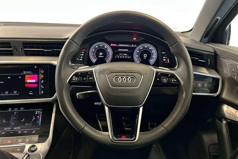7" high resolution colour driver information display system, Audi connect safety and service (e-call), Audi connect with Amazon Alexa Integration, Audi drive select, Audi parking system plus - acoustic and visual park assist system for front and rear, Automatic start/stop system with coasting functionality, Bluetooth interface, Lane departure warning system, Power operated tailgate, Progressive steering, Rear view camera, Service interval indicator, Smartphone interface includes wireless Apple carplay/Android Auto, Voice control system, Sports suspension, Audi front music interface, Audi sound system, Auxiliary input socket, DAB Digital radio, USB connection, Aluminium roof rails, Body coloured door mirrors, Electric front/rear windows, Frameless auto dimming interior rear view mirror, Front intermittent wipers, Headlight washers, Heat insulating darkened glass in side and rear windows, Heat insulating glass in windshield, LED signature front daytime running light, LED third brake light, Matrix LED headlights, Matt black side air intake grille with inlay in matt aluminium, Privacy glass, Radiator grille in anthracite black matt, single frame in chrome and horizontal struts in matt aluminium silver, Rain and light sensors, Rear side wing doors, Rear wiper, S line air inlet design with inlay in matt aluminium, S Line badge on front fender, S Line front and rear bumpers, S line rear diffuser and grille in matt black with matt aluminium tailpipes, S Line roof edge spoiler, S Line side skirts, Signature rear LED light design, 2 zone deluxe electronic climate control, 4 way electric lumbar support for driver and front passenger, 40/20/40 split folding 3 rear seat bench in 3 parts with rear centre armrest, Black cloth headlining, Black steering wheel insert, Electrically adjustable front seats with driver memory, Front centre armrest, Front head restraints, Heated front seats, Height/reach adjust steering wheel, Illuminated door sill trims with S logo, Illuminated sun visors with vanity mirrors, ISOFIX child seat mounting and Top Tether with front passenger airbag deactivation, Leather gear knob, Luggage compartment system, Perforated leather steering wheel with contrast stitching, Rear headrests, S line front and rear black carpet floor mats with contrast stitching, Single front passenger seat, Stainless steel pedals and foot rest, LED Interior Ambient Lighting Pack - A6, Non smoking pack - A6, Technology pack - A6, 3 point seatbelts on all seats, Airbags - Front side, front and rear including head, Audi pre-sense front, Black seatbelts, EBD - Electronic brakeforce distribution, Electromechanical parking brake, Electronic Stability Control (ESC) including ABS, ASR and EDL, Extended pedestrian protection measures, Manual child proof rear door locks, Seatbelt monitoring, Tyre pressure warning light, Warning triangle and first aid kit, Anti theft alarm with tow away protection, Anti-theft wheel bolts and wheel loosening detection, Immobiliser, Keyless Go, Remote central locking, Matt brushed aluminium dark inlays,