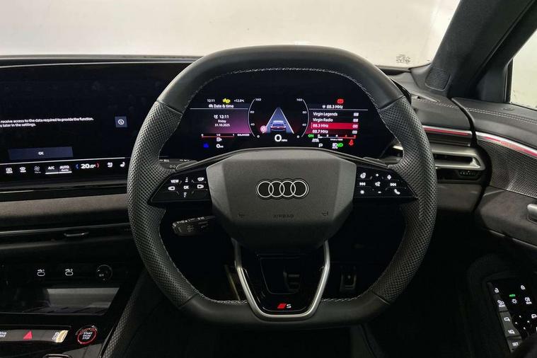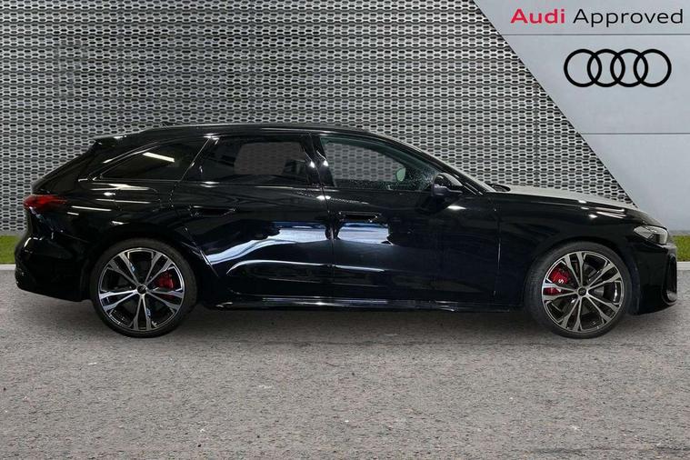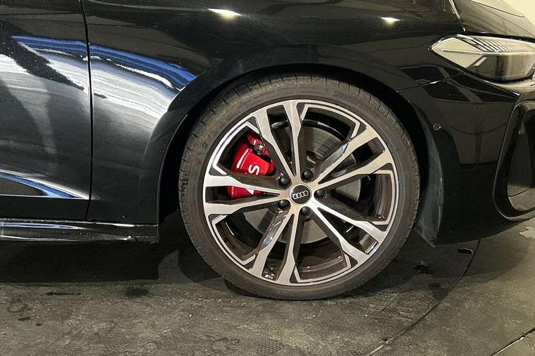 Adaptive cruise assist plus with steering intervention, Advanced driver attention and fatigue montior, Audi application store, Audi assistant, Audi connect emergency call and service, Audi drive select, Audi smartphone interface, Audi virtual cockpit plus with 11.9" OLED colour display, Automatic start/stop system with coasting functionality, Camera based traffic sign recognition, Garage door opener, Intersection assist, Lane change assistant with exit warning system, rear cross traffic alert and rear turn assist, Lane departure warning with emergency assist, MMI 10.9" front passenger touch display, MMI navigation plus with high resolution 14.5" OLED touchscreen colour display, Park assist plus, Parking system plus with 360 display, Progressive steering with servotronic, Swerve assist and turn assist, Top view camera, Traffic sign based speed limiter, Quattro with sport differential, S sports suspension with damper control lowered by 20mm, 2 USB-C ports in both the front and rear, DAB digital radio reception, Smartphone compartment with wireless charging, Aluminium window trims, Auto dimming rear view mirror, Black door handles, Black roof rails, Dark chrome-plated tailpipe trims, Digital OLED tail lights including communication light, Door mirrors - electrically adjustable, heated, folding and auto dimming on both sides, Front and rear electric windows, Front door sill trims with aluminium inlays, illuminated with 'S' logo, Headlight cleaning system, High beam assist, LED daytime running lights, LED third brake light, Matrix LED headlights with eight light signatures selectable via the MMI or the myAudi app, Panoramic glass roof with switchable transparency, Privacy glass, Rear and side windows with heat insulating glass, Rear side wing doors, Rear wash/wipe, Red S rhombus badging with S lettering on rear, S bumpers, radiator grille and diffuser in titanium matt black and diffuser insert in matt silver, White rhombus logo projection light in exterior mirrors, Windscreen with acoustic glazing, 3 rear headrests, 3 seat rear bench, 3 spoke leather steering wheel with multi-function buttons with touch control, flattened on top and bottom, with S badging and contrast stitching, 3-zone automatic climate control, 40:20:40 split folding rear seat bench with centre armrest and cup holders, Comfort front centre armrest, Electric steering wheel adjustment, Electrically adjustable front seats, Front and rear floor mats, Front sport seats plus with integrated headrest and S embossed logo, Headlining in black cloth, Heated front and outer rear seats, Heated steering wheel, i-Size child seat mounting on the front passenger side and outer rear seats, i-Size and top tether on the outer rear seats, Luggage compartment lid, electrically opening and closing, Memory function for driver seat, Pearl Nappa leather upholstery, Pneumatically adjustable lumbar support, Single front passenger seat, Stainless steel pedals and footrest, Steering wheel grips in perforated leather and shift paddles, Ventilation seat and massage function for the driver and front passenger, Black styling package plus - A5, Sound and vision pack - A5, 3x3 point rear seat belts, Acoustic vehicle alerting system, Convenience key with safelock, Driver airbag, Electric child safety locks, First aid kit with warning triangle and vests, Front emergency brake assist, Front passenger airbag, Front passenger airbag deactivation, Hill hold assist, Occupant detection in rear seat area, Proactive passenger protection system for front, sides and rear, Red brake calipers, Seat belt monitoring with rear seat occupant reminder, Side airbags in front and rear with head airbag system and front interaction airbag, Tyre pressure loss indicator, Anti theft alarm, Anti-theft wheel bolts, Keyless Go, Accent surfaces and control buttons in gloss black, Black dashboard with contrast stitching, Softwrap in Dinamica with contrast stitching, Upper and lower interior elements in dinamica microfiber, 20" 5 twin spoke design Audi Sport alloy wheels in metallic black and gloss turned finish, Tyre repair kit,