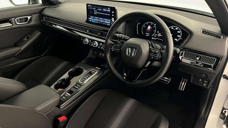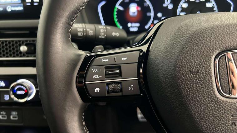 7" Multi information display screen, Adaptive cruise control, Adaptive motion for electric power steering, Adjustable speed limiter, Agile handling assist, BLIS (Blind Spot Information System) with Cross Traffic Monitor, Bluetooth hands free telephone connection, Driving modes, Economy mode, Electric power steering wheel with variable gear ratio steering, Emergency call service, Emergency stop signalling system, Forward collision warning, Front and rear parking sensors, Honda CONNECT with Navigation 9" touchscreen, AM/FM/DAB, Apple Carplay and Android Auto, live traffic info, Honda sensing, Idle stop, Intelligent speed limiter, Lane departure warning system, Lane keep assist, Low speed following, Power meter, Rear parking camera, Road departure mitigation, Smartphone wireless charging plate, Tailgate, Traffic jam assist, Traffic sign recognition, Wireless apple carplay, Vehicle stability assist, 'Shark fin' mobile antenna, 2x USB Front socket (1 data & 1 charge), 8 Speakers, Digital Audio Broadcast (DAB) Tuner, Front tweeters, Steering wheel mounted audio controls, Aspherical driver door mirrors, Auto dimming rear view mirror, Auto headlight adjuster, Auto headlights, Automatic coming/leaving home lighting function, Automatic rain sensing wipers, Black window frames, Body colour door handles, Electric adjustable heated door mirrors, Electric front and rear windows, Electrically folding door mirrors, Headlight extension black, High beam assist, High level LED brake light, LED daytime running lights, LED front fog lights, LED front turn type, LED Headlights, LED rear lights, Low gloss black window garnish, Material finish grille, Pop up hood, Privacy glass, Rear side wing doors, Rear wiper, Single hidden exhaust pipe, Variable front intermittent wipers, 3 seat bench in 2nd row, 60/40 split folding rear seat, Cargo accessory power socket, Cargo net hooks, Driver and front passenger seat armrests, Driver's electric lumbar adjustment, Driver's seat height adjustment, Dual climate control air conditioning system, Fabric/synthetic leather upholstery, Front accessory power socket, Front map lights, Front/rear courtesy lights, Glovebox light, Heated front seats, Hybrid emblem, Isofix points/i size, Leather steering wheel, Meter Illumination white, Passenger seat back pocket, Platinum chrome interior door handles, Rear air vents, Rear head restraints, Rear reading lights, Rear seat centre armrest, Single front passenger seat, Stainless steel sports pedals, Sunvisors with illuminated vanity mirrors, Tilt/telescopic adjustable steering wheel, Tonneau cover, Trunk light, USB Rear number 2 x charge, White ambient roof light, 3x3 point rear seatbelts, ABS+EBD+Brake assist, Airbags - driver and front passenger, Airbags - Knee (AS), Airbags - Knee (DR), Anti-whiplash front headrests, Brake hold function, Collision mitigation braking system, Collision mitigation throttle control, Deflation detection system, Driver SRS airbag (single stage inflation), Electronic parking brake with auto hold, Front and rear curtain airbags, Front and rear seat belts with emergency locking retractor (ELR), Front centre airbag, Front side airbags, Hill start assist, Low speed brake system, Manual child lock in rear doors, Passenger airbag deactivate switch, Rear airbags, Regenerative braking/deceleration paddle control, Immobiliser, Mirrors and windows key fob, Remote central locking with 2 jack knife keys, Security alarm, Selectable door unlock, Smart entry + Smart start, Superlocking, Tilt sensors, Ultrasonic security sensor, Tyre repair kit,