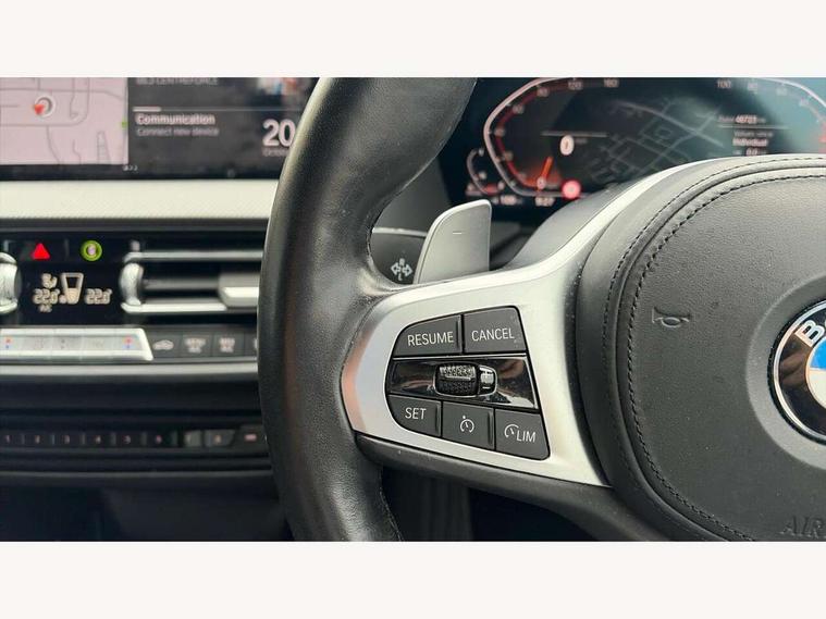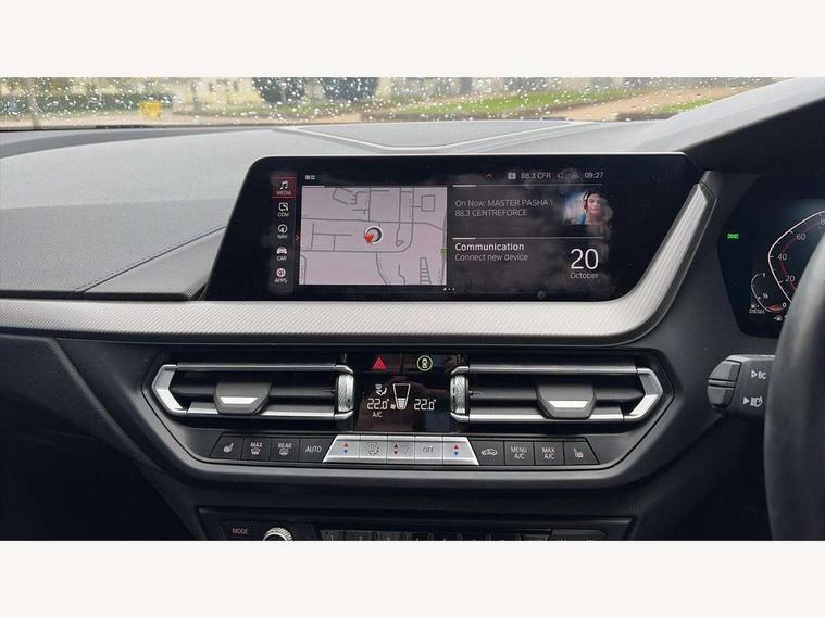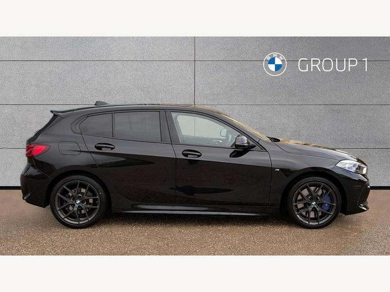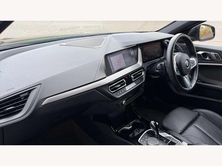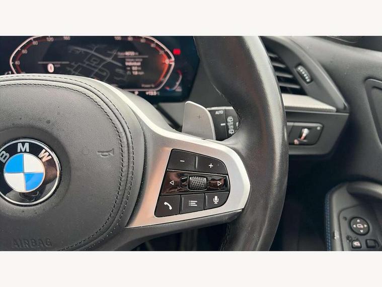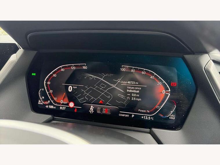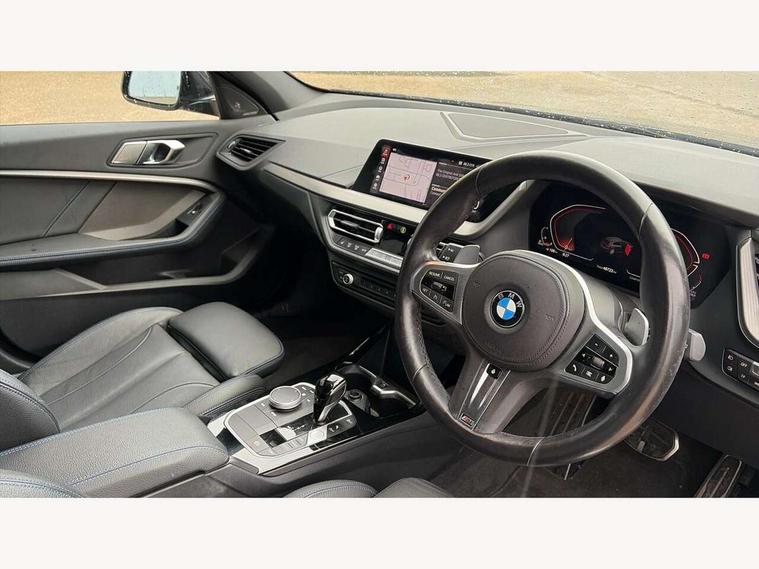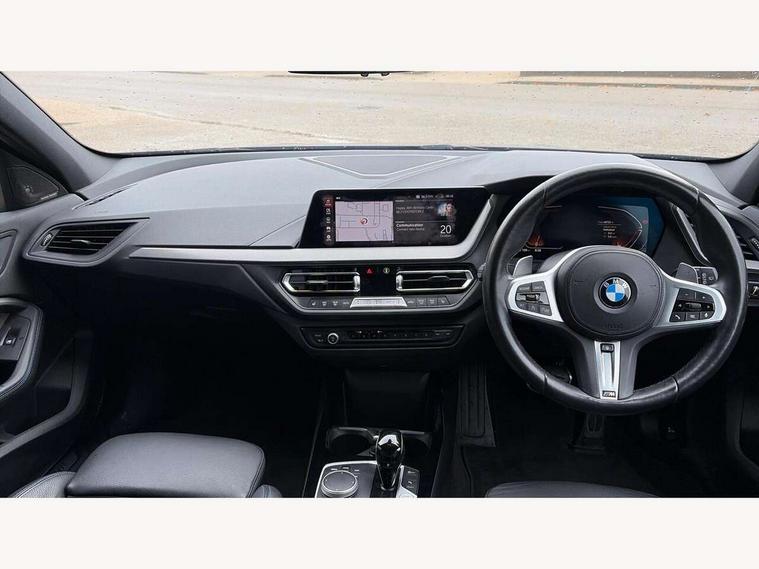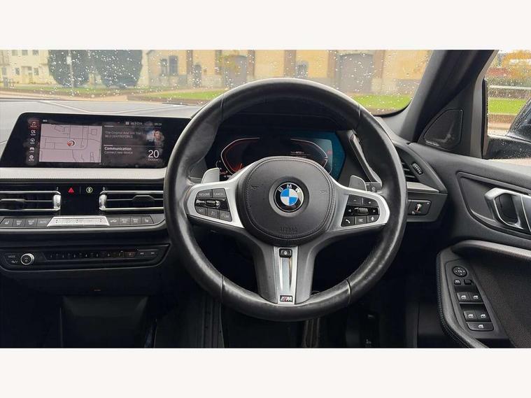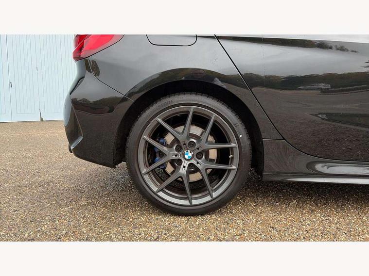 Active guard plus, Attentiveness assist, BMW ConnectedDrive online services, BMW Teleservices, Characteristic map controlled oil pump system, Check Control warning system for monitoring of lights and door/luggage compartment open warning, Cruise control with brake assist, Eco pro mode, Front axle single joint with specific axle kinematics to minimise drive influences on steering + provide increased rigidity agile driving behaviour, Integrated owners handbook, Lane departure warning system, Oil sensor for level and grade, On board computer, Optimum shift indicator, Personal Profile, Pull away assistant, Rigidly mounted rear subframe - Multi link construction with separate spring / damper configuration and excellent driving characteristics, Speed limit Info including no-overtaking indicator, Speed limiter, AdBlue tank, Aluminium lightweight construction, Anti roll bar front and rear, Balancer shaft, Diesel particulate filter, DOHC valve train with two overhead camshafts, Drive Performance Control, Eight speed sport automatic transmission with gearshift paddle switches, Electronic differential lock, Single turbo charger with variable vane geometry, Twin tube gas filled shock absorbers with degressive characteristic curve, Two-stage charging, DAB Digital radio, Auto dimming rear view mirror, Automatic headlight beam throw control, Automatic windscreen wipers and automatic headlight, Body colour door handles, Body colour mirror caps, Body colour roof trims, Chrome 'M' logo side designation, Chrome exhaust twin tailpipes round 90mm in left and right split, Chrome kidney grille frame with Satin Aluminium struts, Direction indicator side lights in exterior mirrors, Fading support, Folding side mirrors with auto dimming/folding wing mirrors with auto dimming, Follow me home headlights, Front and rear bumper system with replaceable deformation elements, Front and rear electric windows with open and close fingertip control, anti trap facility and comfort closing, Front door sill finishers in black plastic with M designation in metallic look, Green tinted heat protection glazing, Heated, electrically adjustable exterior mirror aspheric on driver side, convex on passenger side, High gloss shadowline window frame, Recess cover mirror frames and B/C pillar embelisher trim, High level third brake light, Integrated front windscreen with washer jets, LED daytime running lights, LED eyebrow turn indicators, LED front fog lights, LED Headlights, Lightweight engineering, Matt black air guide grilles, Matt black wheel arch trim, Model designation on electric bootlid, Nearside reverse light in rear light cluster, Preparation for high beam assistant, Rear fog lights, Rear side wing doors, Rear window wiper, Shark fin antenna, Trailer stabilisation logic, Visible VIN plate, Welcome lighting, 12V power socket in front centre console with blanking plug, 3 rear seat head restraints, 3 seat bench in 2nd row, 3 spoke sports leather steering wheel with black leather and stitching, pearl chrome decorative finish, specific M Badge, Anthracite headlining, Black boot net with lashing eyes, Cargo function on 2nd seat row, Child seat ISOFIX attachment for two outer rear seats and front passenger seat with anchorage points, Conditioned based service, Driver and front passenger seat heating, Folding rear clothes hook, Four grab handles integrated in roof lining, Front and rear door pockets with bottle holders, Front and rear side armrest integrated into door trim, Front armrest, Front sports seats, Glove compartment, Height adjustable front head restraints, Luggage compartment for bag hooks on left and right, foldable luggage compartment liner and four lashing eyelets, Manual adjust steering wheel, Multi-function controls for steering wheel, Single front passenger seat, Storage compartment in centre console, Sun visors with vanity mirrors and insert tab, Two front centre console cupholders, Two zone automatic air conditioning, Velour floor mats, Additional interior lighting pack - 1 Series, BMW live cockpit professional pack- 1 Series, Connected pack professional - 1 Series, Interior lights pack - 1 Series, M Sport exterior styling aerodynamics pack - 1 Series, 2 tone horn, 3 point seatbelts on all seats, front pyrotechnic belt tensioners, stopper and belt force limiters, rear coded belt buckles, Airbags - Front driver/passenger, front and rear curtain head protection, front side, manual deactivation of front passenger airbag, Anti lock braking system (ABS) with brake assist, BMW emergency call, Brake drying, Braking readiness, Child proof locking system in rear door, City braking function, Comfort modes, Cornering brake control, Crash sensor activating central locking release, hazard warning lights, fuel cut off, interior lighting + activation of safety battery terminal clamp, Driver and front passenger seat belt security check, Dynamic stability control + (DSC+), Dynamic Traction Control - DTC, Electrically operated hand brake including automatic hold function, Front and rear disc brakes, Seatbelt warning, Side impact protection, Tyre pressure monitoring system, Warning triangle and first aid kit, Central locking switch for all doors, fuel filler cap and luggage compartment, Deadlocking function system to all doors, Drive away locking system on all doors and luggage compartment, Incorrect fuel protection system, Locking wheel bolts, Remote control with integrated key with High-gloss Black inlay and M designation and 1 button for open/ close lock, window, open luggage compartment, Start/stop button illuminated in centre console with keyless engine start and auto start stop deactivation button, Thatcham Cat.1 alarm and immobiliser, Wheel slip limitation close to the actuator (ARB), Contrast stitching on instrument panel, Electrically powered 12V compressor, Reduced rolling resistance tyres,