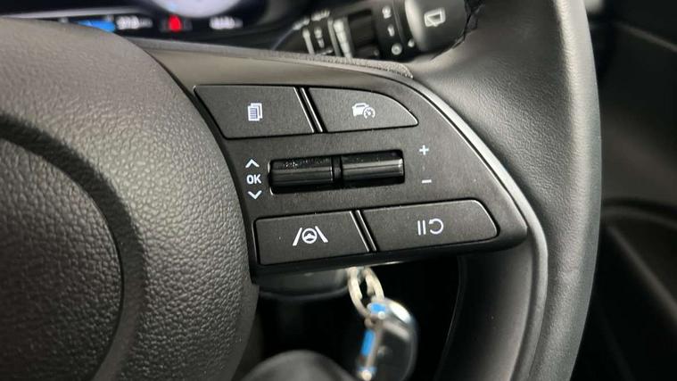 10.25" touchscreen + navigation, 2nd Gen eCall, 8" Touchscreen DAB Radio with android auto and apple carplay, Cruise control + speed limiter, Forward collision assist with car, pedestrian and cycle detection, Intelligent speed assist, Intelligent speed limit warning, Lane follow assist, Lane keep assist, PAS, Rear parking sensor, Rear view camera with dynamic guidelines, USB C port front, Automatic headlights with dusk sensor, Electric adjustable heated door mirrors, Front grille mesh pattern design, High beam assist, LED 3rd brake light, LED daytime running lights, LED Headlights, LED taillights, Rain sensor, Rear side wing doors, Rear wiper, Repositioned flat metal hyundai emblem, Trailer wiring, 3 seat bench in 2nd row, Adjustable head restraints, Air conditioning, Cloth upholstery, Floor mats, Leather steering wheel, Single front passenger seat, 3x3 point rear seatbelts, ABS with front and rear diagonally split, Autonomous emergency braking, Child locks on rear doors, Front ventilated disc brakes, Rear solid disc brakes, Tyre pressure monitoring system, 16" alloy wheels, Tyre repair kit,