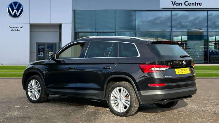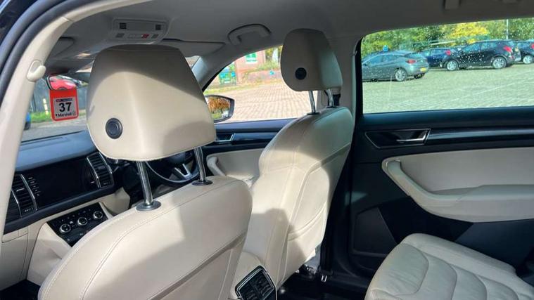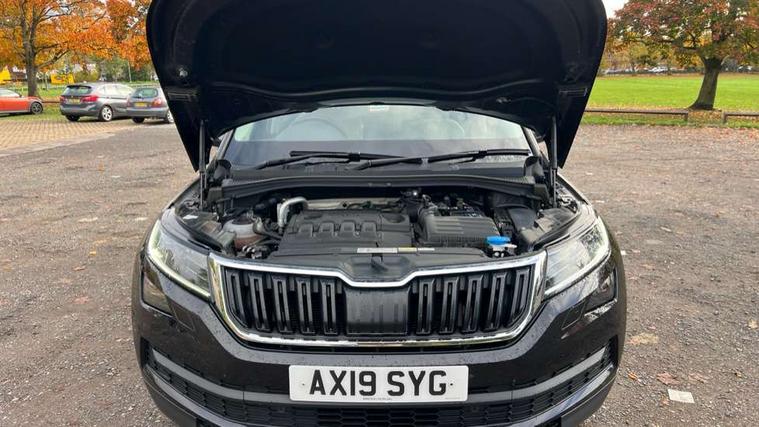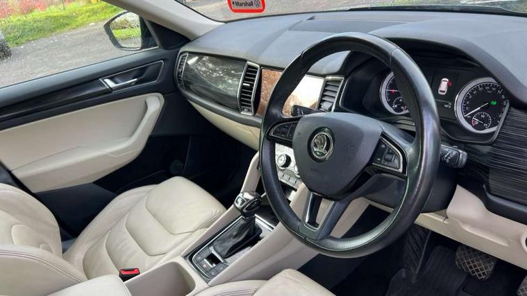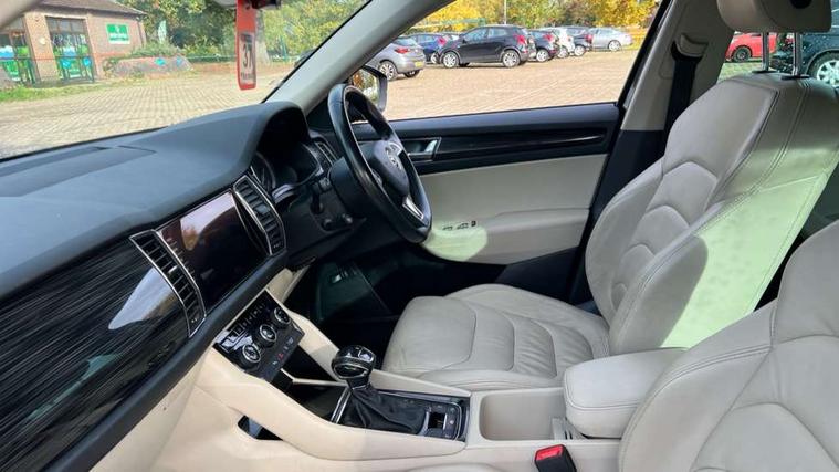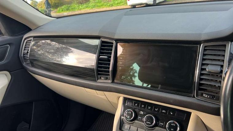 Bluetooth system, Colour multifunction trip computer, Columbus satellite navigation with 9.2" touch screen and integrated Wi-Fi + WLAN, Digital voice enhancement, Drive mode selector, ECO Stop/start function, Exterior temperature indicator, Phone box, SmartLink plus, Speed limiter, Tailgate unlocking from outside, Bolero Radio, DAB Digital radio, DVD System, USB and SD card connectivity, Aero front windscreen wipers with intermittent function, Aero rear window wiper, Auto dimming rear view mirror, Automatic activation of hazard warning lights, Black wheel arch surrounds, Body colour bumpers, Body colour door mirrors and handles, Electric front and rear windows, Electrically adjustable heated foldable and auto dimming door mirrors with boarding spots, Front and Rear door steps, Full LED Headlights with adaptive front light system and LED daytime running lights, Headlight washers, Heated rear window, High beam assist, Invisible tailpipe, LED front fog lights with static cornering light function, LED rear fog light, LED third brake light in rear spoiler, Light assistant (coming home/tunnel light), Radiator grille frame in matt black with chrome strip, Rain and light sensors, Rear spoiler, Safety reflectors on front and rear doors, Silver roof rails, Sunset privacy glass, Tinted windows, 12V socket in boot, 2 rails with 2 hooks including 4 hooks for net programme, 4 foldable roof handles with rear coat hooks, 4 lashing points on luggage floor, 60:40 foldable rear seat with sliding adjustment and backrest angle adjustment, Bottle holders in door panel in the 1.5 litre front and 1 litre rear, Cargo storage compartments, Centre console with open storage box, cup holder and 12V socket, Chrome headlight control button, Chrome interior door handles, Coat hooks on B pillar, Covered storage compartment on driver side, Electrically adjustable front seats with lumbar support and memory function, Front centre armrest with storage compartment, Front/rear courtesy lights, Gear shift lever with chrome frame and black gloss insert, Height adjustable front headrests, Illuminated and cooled glovebox, Illuminated luggage compartment, Isofix system on outer rear seats, Manually adjustable steering column, Net programme in boot (1x horizontal Net, 2x vertical Nets), Overhead glasses storage compartment, Passenger side net compartment on centre console, Pollen filter, Rear centre armrest with cupholders, Removable lamp in luggage compartment, Roll up luggage compartment cover with intermediate position, Small Bags on the inner sides of the front backrests, Small pockets on the inner side of the front backrests, Storage compartment in lower middle Instrument panel, illuminated with closing, Sunvisors with illuminated vanity mirrors, Three rear height adjustable headrests, Ticket holder on A Pillar, Umbrella in door panel, Chrome pack - Kodiaq, Auto door release and activation of warning lights in the event of an accident, Driver and passenger airbags, Electronic parking brake with hill hold control, Emergency rear braking signal, ESC (incl. ABS+MSR+ASR+EDS+HBA+DSR+RBS+MKB), Front and rear three point safety belt on all seats, Front assist includes AEB city/urban, Front side airbags, Fuel cut off safety device, Head and knee airbags, Passenger airbag deactivate switch, Rear disc brakes, Safety vest holder in door, Seat belt reminder for all seats, Two tone horn, Tyre pressure monitor, Warning lights in front doors, Alarm with interior monitoring and tilt sensor with safe function, Immobiliser, Keyless entry and start system (KESSY), Remote central locking,