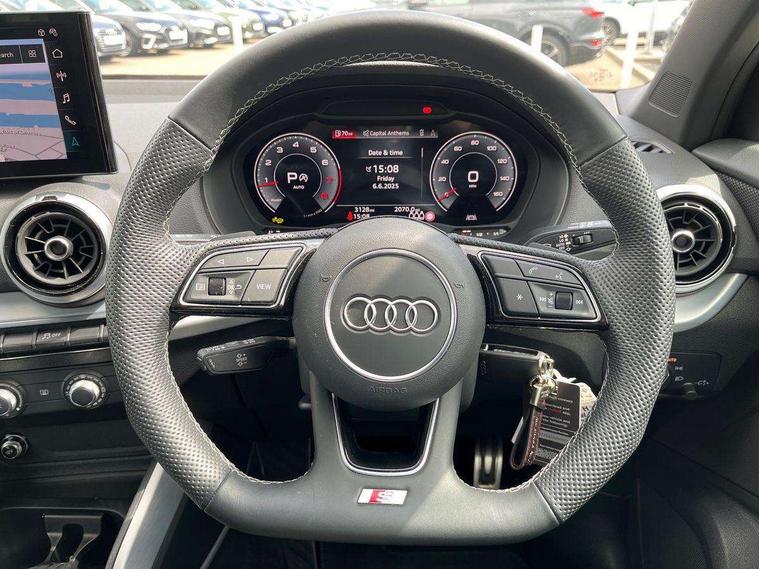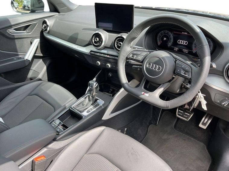 3D map display, Audi connect navigation and infotainment includes innovative services, Audi connect remote and control connects your vehicle to your smartphone, Audi drive select: S tronic - power steering assistance + engine + gearshift (modes: comfort, auto, dynamic, efficiency, individual), Audi smartphone interface - Apple carplay/Android Auto, USB connect, 2xSDXC card readers, voice control for navi, telephone, music and 3rd party apps, Audi virtual cockpit, Automatic start/stop system with recuperation, Bluetooth interface includes bluetooth audio streaming, Camera based traffic sign recognition, Cruise control, Distraction and Fatigue warning, E-call, Jukebox hard drive memory for music (10GB), Lane departure warning, MMI navigation plus with 8.8" touchscreen, Natural voice recognition, Power operated tailgate, Progressive steering, Rear parking sensors, Sport suspension, 6 passive loudspeakers, DAB Digital radio, USB type C port, Audi beam, Auto dimming rear view mirror, Black window trims, Bumper in full body colour paint finish, Electrically adjustable, folding, auto dimming and heated door mirrors with integrated LED side indicators, Front windscreen with grey tinted sunband, LED daytime running lights, LED headlights with dipped beam, high beam, position lights, indicators, LED rear lights, LED third brake light, Privacy glass - dark tinted rear and rear side windows from B-pillar backwards, Rear side wing doors, Rear wiper, Variable front intermittent wipers, Wheel arch trims in manhattan grey, 12v socket in front, 3 seat bench in 2nd row, 3 spoke flat bottomed multi-function leather sport steering wheel with gear shift paddles, 4-way electric lumbar support for front seats including manual seat height adjustment for both front seats, 60/40 split folding rear seat bench, Black carpets, Black cloth headlining, Front and rear head restraints, Front centre armrest, Front sport seats, Front/rear floor mats, Height/reach adjust steering wheel, Illuminated door sill trims with S logo, ISOFIX child seat mounting in front passenger and rear outer seats, Manual air conditioning, Single front passenger seat, Stainless steel pedals, Black styling pack - Q2, 3x3 point rear seatbelts, 6 airbags - Front, curtain and front side airbags, Electromechanical parking brake, Electronic stabilisation control including ABS, ASR and EDL, Front passenger airbag deactivation, Hill hold assist, Pre-sense front with pedestrian recognition, Seatbelt monitoring, Tyre pressure warning light with visual and acoustic warning, Warning triangle and first aid kit, Anti theft alarm, Anti theft wheel bolts, Electronically operated child locks, Remote central door locking, Aluminium interior element, Black dashboard, Gloss black centre console, Matt brushed aluminium trim inlays, Tool kit,