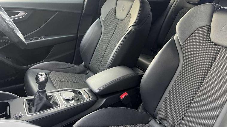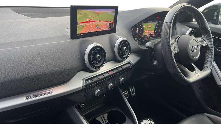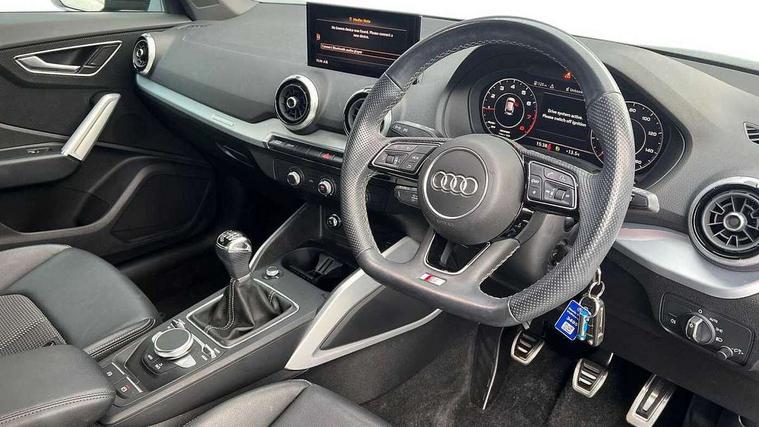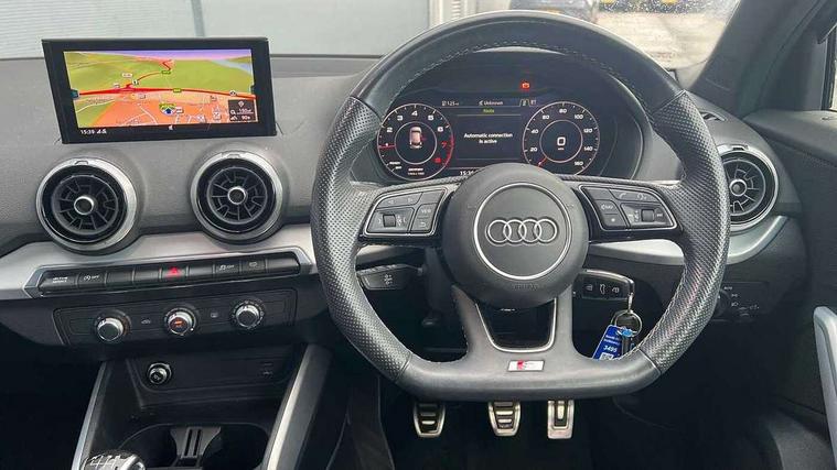 Audi connect navigation and infotainment includes innovative services, Audi connect remote and control connects your vehicle to your smartphone, Audi drive select, Audi drive select with efficiency, Audi smartphone interface, Audi virtual cockpit, Automatic start/stop system with recuperation, Bluetooth interface includes bluetooth audio streaming, Cruise control, MMI navigation plus with MMI touch, Power operated tailgate, Progressive steering, Rear parking sensors, 2 x SDXC card reader, 8 passive loudspeakers, DAB Digital radio, DVD Drive, Auto dimming rear view mirror, Black window trims, Bumper in full body colour paint finish, Electrically adjustable, folding, auto dimming and heated door mirrors with integrated LED side indicators, Front windscreen with grey tinted sunband, LED headlights with LED rear lights, Privacy glass - dark tinted rear and rear side windows from B-pillar backwards, Wheel arch trims in manhattan grey, 3 spoke flat bottomed multi-function leather sport steering wheel, 4-way electric lumbar support for front seats including seat height adjustment for both front seat, 60/40 split folding rear seat bench, Black cloth headlining, Front and rear head restraints, Front centre armrest, Front/rear floor mats, Height/reach adjust steering wheel, Illuminated door sill trims with S logo, ISOFIX child seat mounting for front passenger with airbag deactivation and outer rear seat including top tether attachment point for outer rear seats, Stainless steel pedals, Tool kit, Black styling pack - Q2, 3x3 point rear seatbelts, 6 airbags - Front, curtain and front side airbags, Electromechanical parking brake, Electronic stabilisation control including ABS, ASR and EDL, Hill hold assist, Pre-sense front with pedestrian recognition, Seatbelt monitoring, Tyre pressure warning light, Warning triangle and first aid kit, Anti theft alarm, Anti theft wheel bolts, Electronically operated child locks, Aluminium interior element, Matt brushed aluminium trim inlays,