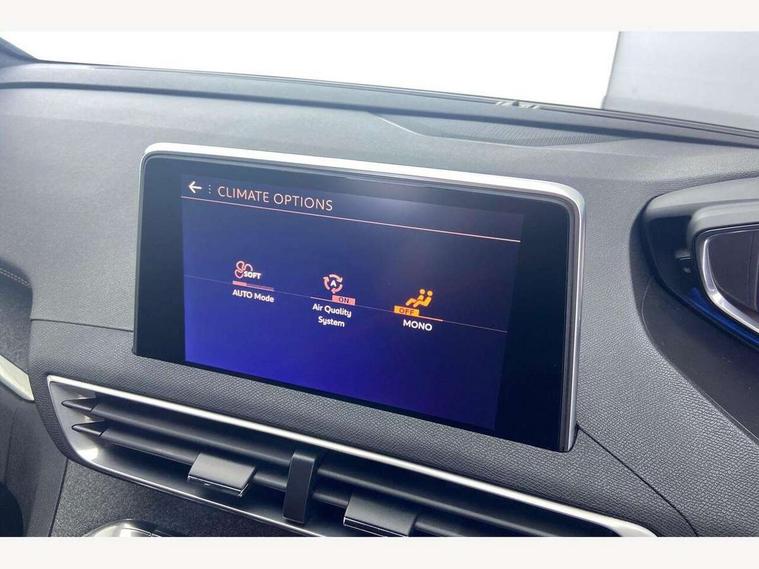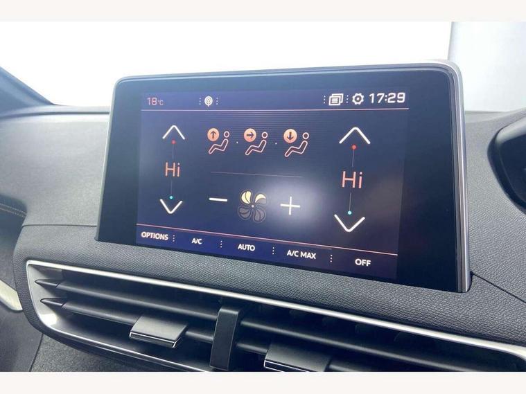 3D connected navigation + voice control + Peugeot connect SOS and assistance, Blind spot monitoring, Digital clock, Exterior temperature gauge, Lane departure warning system, Lane keep assist, Mirror screen with mirror link and car play, Multi function trip computer, Peugeot i-cockpit with amplify configurable interior ambiences, headup display with distance alert, touch screen, Programmable cruise control and speed limiter, Rear parking aid, Smartphone cradle, Speed sensitive power steering, DAB Digital radio, Peugeot connect with USB and bluetooth, Radio/MP3 player, Steering column mounted multifunction controls, Automatic activation of hazard warning lights, Automatic headlamp levelling, Black diamond roof, Black door mirrors, Body colour door handles, Body colour rear spoiler, Body coloured bumpers, Chrome bumper inserts, Chrome front fog light surround, Chrome radiator grille and surround, Chrome side window trim, Dark tinted rear windows, Electric folding door mirrors with courtesy approach lighting, Electric operated/heated door mirrors, Heated rear windscreen, LED daytime running lights, LED headlights with LED front fog light and static cornering light, LED rear lights, One touch electric front/rear windows, Peugeot smart beam assist, Rear wiper, Sports front bumper, Twin exhaust tailpipe, 1/3 to 2/3 split folding rear seats, 3 x 12V power sockets, 4 Lashing eyes in boot, Blue ambient lighting, Centre console cupholder, Centre front armrest with illuminated cool compartment, Cupholders - 2 in rear centre armrest, Dual zone automatic climate control, Fold flat front passenger seat with picnic table, Front headrests, Front reading lights, Front seat back map pockets, Gear shift indicator, Grab handles, Height adjustable headrests, Height adjustable passenger seat, Height/reach adjust steering wheel, Illuminated glovebox, Illuminated vanity mirrors, Instrument panel light dimmer, ISOFIX on front passenger and rear outer seats, LED interior illumination, Mistral floor mats, Mistral full grain perforated leather steering wheel with aikinite stitch, Rear centre armrest/ski flap, Rear coat hook, Rear headrests, Rear passenger footwell storage, Rear reading lights, Reclining front seats, Roof lining - Tramontane black, Satin chrome interior door handles, Visibility pack - 3008, 3 point front seat belts, 3 point seatbelts on all rear seats, ABS + EBD + EBA, Auto city emergency braking, Driver SMART airbag, Electronic parking brake, ESP with ASR, Front and rear curtain airbags, Front and rear pre-tensioning and force limiting seatbelts, Front passenger SMART airbag with deactivate switch, Height adjustable front seatbelts, Hill start assist, Seatbelt warning lamp and buzzer, Side airbags x 2, Tyre pressure sensor, Automatic door lock/re-lock after 30 seconds, Central locking button on dash, Child lock control of rear doors and windows, Deadlocks, Locking wheel bolts, Perimetric and volumetric anti theft alarm, Remote control central locking with two plip keys, Rolling code transponder immobiliser, Brumeo fabric interior trim,