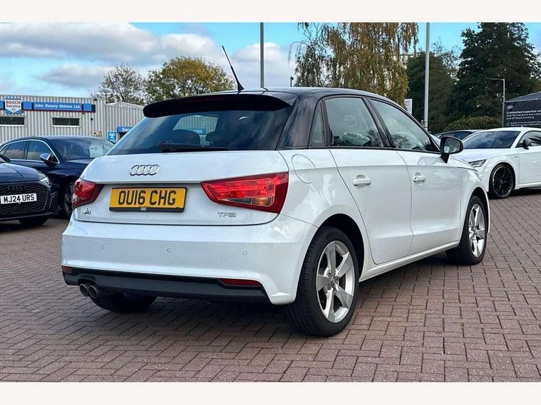 Audi drive select, Electro-mechanical PAS, Low washer fluid indicator, Service interval indicator, Voice control system, Additional SD card reader, Audi music interface, Bluetooth audio streaming, DAB Digital radio, Adaptive brake lights, Electric adjustable door mirrors, Electric front windows, Electric rear windows, Front fog lights, Heat insulating glass, Heated door mirrors, Heated rear windscreen, Rear wiper, 12V Accessory socket in centre console, 3 spoke leather multifunction sports steering wheel, Adjustable rear head restraints, Cupholders in centre console, Door sills trims with aluminium inlays, Front floor mats, Front head restraints, Front sports seats, Height adjustable front seats, Illuminated glovebox, Isofix attachments on outer rear seats, Jack and tool kit, Leather handbrake, Lumbar adjustment for front seats, Rake/reach adjustable steering wheel, Split folding rear seats, ABS/EBD, Brake assist function, Driver and passenger side airbags, Driver/Front Passenger airbags, EDL, ESP with ASR, First aid kit, Front and rear seatbelt reminder, Front passenger airbag deactivation, Head airbags, Height adjustable front seatbelts, Tyre pressure monitor, Warning triangle, Locking wheel bolts, Remote control central locking, Thatcham category 1 alarm + immobiliser, Tyre repair kit,