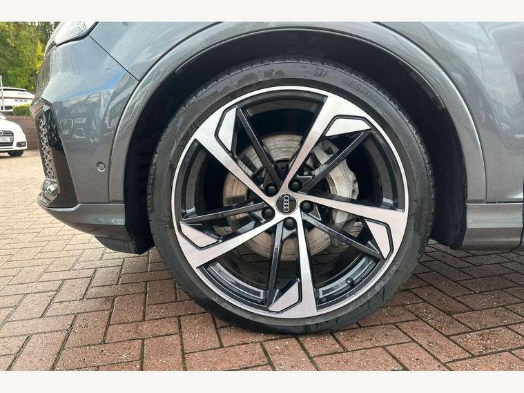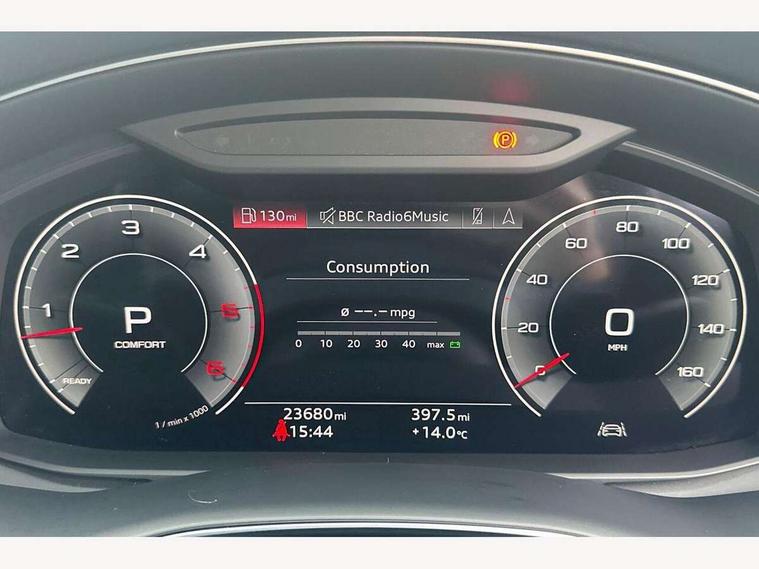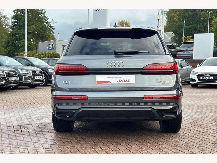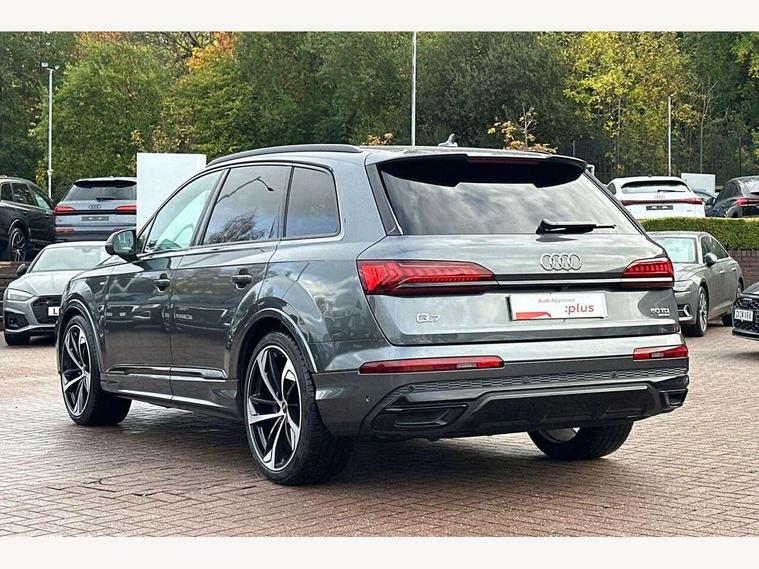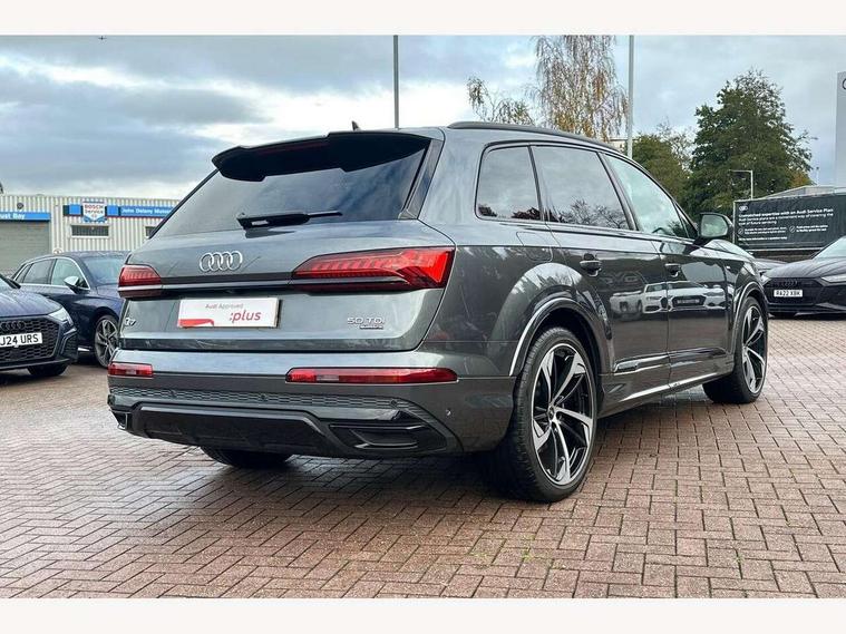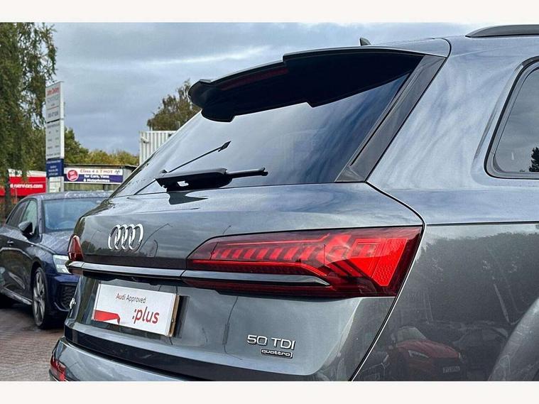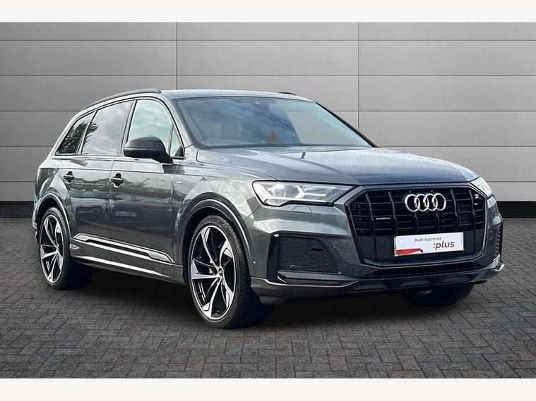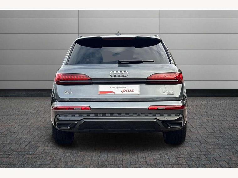 Audi connect safety and service (e-call), Audi connect with Amazon Alexa Integration, Audi drive select (Auto, Comfort, Dynamic, Efficiency, Individual, Off-road and All road), Audi phone box light with wireless charging, Audi virtual cockpit - 12.3" high-resolution LCD display with fully customisable instrument cluster, Bluetooth interface, Camera based traffic sign recognition, Electromechanical steering, MMI navigation plus with MMI touch screens includes 10.1" and 8.6" screens with haptic feedback, Natural voice recognition, Power operated tailgate, Smartphone interface includes wireless Apple carplay/Android Auto, Start/stop system, 48V Mild hybrid technology, Adaptive air sports suspension, Quattro all wheel drive with self locking centre differential, Audi music interface - front 2 USB-C ports with charger and data functions, DAB digital radio module, 3rd brake light, Aluminium window trim, Audi Beam uses LEDs to project S emblem with red rhombus onto the ground when opening the side doors (front/rear), Auto dimming frameless rear view mirror, Black roof rails, Bumpers in contrast paint scandium grey finish includes door trim and wheel arch trim strips, inlays in door strip contain quattro embossing, Dark tinted Matrix LED headlights with dynamic front and rear indicators, Electrically adj heated/folding + automatically dimming exterior mirrors with memory + automatic kerb side function for passenger side exterior mirror, Heat insulating glass in windshield, Integrated LED indications in door mirrors, LED daytime running lights, LED rear tail lights, Privacy glass - dark tinted rear and rear side windows from B-pillar backwards, Rear side wing doors, Rear wiper, 2 seat bench in 3rd row, 3 seat bench in 2nd row, 7 seat layout with ISOFIX points for the front passenger seat and rear passenger seat, Black cloth headlining, Comfort front centre armrest, Electric adjustable front seat with 4 way lumbar support, driver memory functionality, Folding rear seats, Front head restraints, Front/rear floor mats, Heated front seats, Illuminated door sill trims with S logo, Luggage compartment sill protection in stainless steel, Rear head restraints, Single front passenger seat, Stainless steel pedals, Sunvisors with illuminated vanity mirrors, Black styling pack plus - Q7, Technology Pack Pro - Q7, 3 point seatbelts on all rear seats, Audi pre sense front, Child locks on rear doors, Driver and front passenger, front side and curtain airbags, Electromechanical parking brake, Electronic Stabilisation Control (ESC) including ABS, ASR and EDL, Extended pedestrian protection measures, Hill hold assist, Seatbelt monitoring, Tyre pressure loss indicator, Warning triangle and first aid kit, Anti theft alarm, Anti-theft wheel bolts and wheel loosening detection, Remote central locking, Polished oak trim with grey finish inlay, Tool kit, Tyre repair kit,