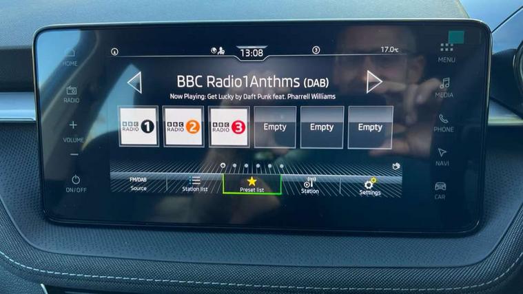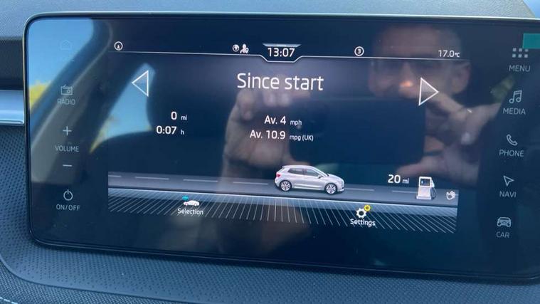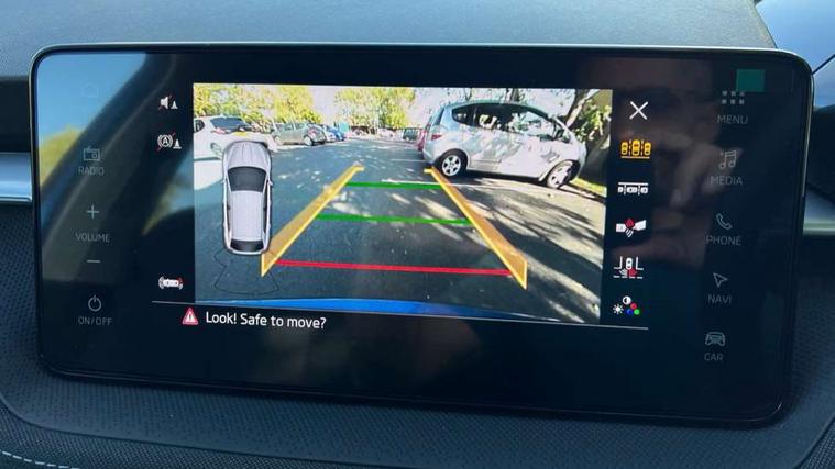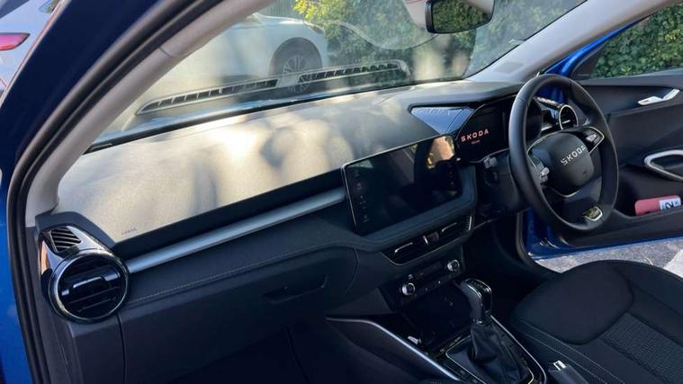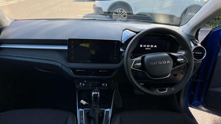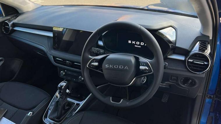 Advanced driver attention and drowsiness monitor, Bluetooth connection, Driver alert system, Electromechanical power steering, Exterior temperature gauge, Service interval indicator, Traffic sign recognition, Virtual cockpit with 10.25" colour display, Wireless SmartLink for Apple CarPlay and Android Auto, 6 Speakers (4 in front and 2 in rear), 9.2" colour display skoda navigation system with voice control and web radio, Auxiliary socket for external MP3 player, DAB digital radio reception, Auto dimming rear view mirror, Body colour door mirrors, Body coloured bumpers, Chrome window surround, Door mirror integrated indicators, Front and rear electric windows, Front window wiper intermittent control, Headlight range control - Automatic, Ice scraper in fuel cap, LED 3rd brake light, LED daytime running lights with coming and leaving home feature, LED rear lights, Privacy glass, Rear LED fog light, Rear side wing doors, Rear window wiper with washing nozzles, Roof mounted spoiler, SKODA tailgate lettering in chrome, Unique dark chrome design logo on alloy wheels, 2 LED reading lights in front and rear, 3 rear headrests, Backrest split and folding, Central console with fixed cup holder and storage box, Chrome handbrake release button, Comfort seats, Door sills with fabia badging, Dual zone air conditioning with climatronic electronic control, Fabric upholstery, Front centre armrest, Gearshift knob/handle in leather, Grain satin black interior door handles, Hand brake lever handle in leather, Height adjustable front headrests, Height adjustable front seats, Height adjustable steering wheel, ISOFIX and TopTether anchorage points to the outer rear seats, ISOFIX and TopTether on the front passenger seat, Luggage compartment lighting, Manually adjustable lumbar support in front seats, Pollen filter, Rear seat bench unsplit, Single front passenger seat, Skoda lettering on steering wheel, Storm grey headlining, Sun visors with mirror and airbag label on passenger side, Textile floor mats, Ticket holder, Umbrella in drivers door, Ambient lighting pack - Fabia Hatchback, 3-point height adjustable front seats belts with pretensioner and force limiter, Automatic warning lights in case of crash, Driver and passengers airbag with switch off function, e-Call+, ESC including ABS, MSR, ASR, EDS, HBA and XDS, Front and rear seat belt warning, FRONT ASSIST (AEB City and AEB Inter Urban), Front side airbags, Head airbags, Hill hold control, One tone horn, Pedestrian protection, Three rear 3-points safety seat belts with pretensioner and force limiter including stop function for outer rear seat belts, Tyre pressure monitoring system, Anti-theft alarm system including immobiliser, interior monitoring, backup horn, and towing protection, Central locking with radio remote control, interior controls, SAFE function and 2 foldable keys, Chrome edged air vents, Grain satin black central console cover, Metallic grey upper decorative trim, Satin black door and side trim panel in front, Textile microsuede grey lower decorative trim with art grey stitching, Anti-theft wheel bolts protection, Super-low rolling resistance tyres,