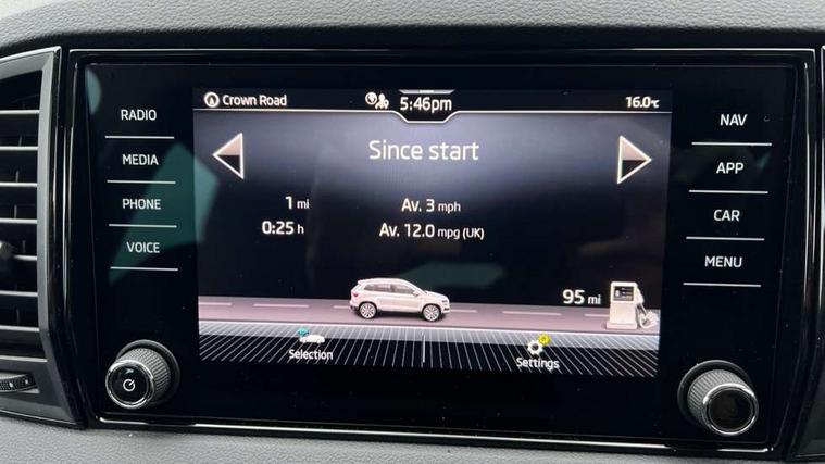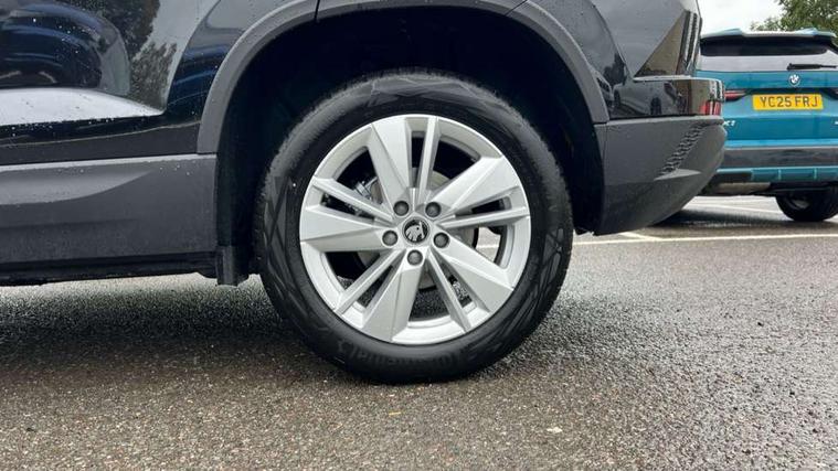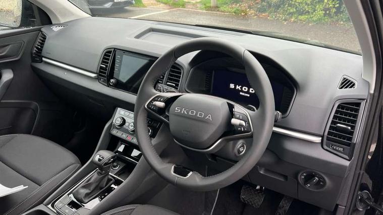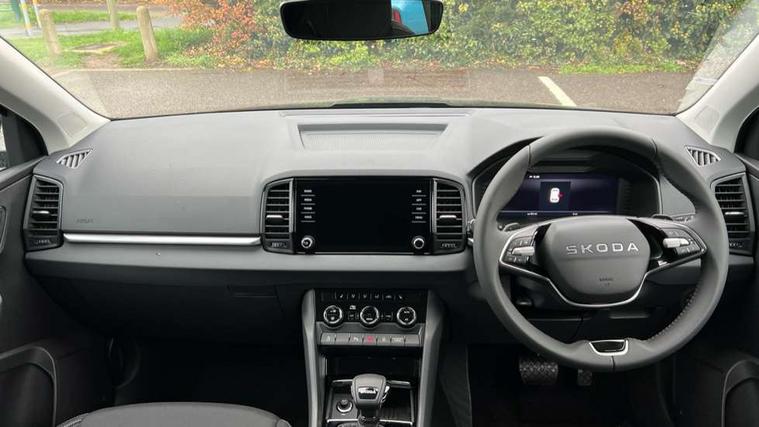 Advanced driver attention and drowsiness monitor, Amundsen navigation system with 8" touchscreen display and integrated WLAN and web radio, Electro-mechanical PAS, Emergency services call system, Lane assist, Outside temperature gauge, Sensor for driver assistance systems, Service interval indicator, SmartLink wireless for Apple and wired for Android, Start/stop system with regenerative braking, Traffic sign recognition, USB C Port x 2 in front centre console, Virtual Cockpit - 10.25" digital display, Wireless smartphone charging, 8 Speakers, DAB radio with Bluetooth, USB connection, Acoustic glass, Aero front windscreen wipers with intermittent function, Auto dimming rear view mirror with light and rain sensors, Black electric window control buttons, Body colour door mirrors and handles, Electric front and rear windows with child proof lock, Electrically adjustable heated folding and auto dimming door mirrors, Front fog lights, Headlight range control, Heated rear windscreen, LED daytime running lights, LED Headlights, LED rear lights with high functionality welcome effect and dynamic indicators, Light assistant (coming/leaving home/tunnel light), Plastic scuff plates in door apertures, Privacy glass, Rear side wing doors, Rear window wiper with washer system and intermittent control, Safety reflectors on front doors, Third brake light, Unique dark chrome design logo on alloy wheels, 1.5 litre bottle holders in driver and front passenger door panels, 12V socket in boot, 12v socket in front centre armrest with storage compartment and rear air vents, 2 spoke leather heated multifunction steering wheel with DSG paddles, 2 x Tablet holder, 3 rear height adjustable headrests, 3 seat bench in 2nd row, 4 foldable roof handles with rear coat hooks, Black floor carpet, Cargo elements in boot, Chrome inner door handles, Driver/front passenger reading lights, Foldable hooks in the boot, Folding tables on the front seat backrests, Front head restraints, Height adjustable driver and passenger seat, Height adjustable front three point seats belts with tensioners, Height/reach adjust steering wheel, Ice scraper, Illuminated glovebox, Illuminated luggage compartment, Interior noise suppression, Isofix child seat preparation for front passenger seat, Isofix child seat preparation outer rear, Loft fabric upholstery, Manual lumbar support for front seats, Pearl grey interior ceiling, Pen holder, Pollen filter, Rear boot cover, Rear package tray, Rear reading lights, Rubbish bin door, Safety vest holder, Single front passenger seat, Skoda lettering on steering wheel, Storage box in upper central dashboard closed, Sunvisors with illuminated vanity mirrors, Textile floor mats, Ticket holder, Umbrella under passenger seat, Under passenger seat storage compartment, Non Smokers pack, Parking pack - Karoq, Winter pack with heated front seats - Karoq, Automatic door unlocking in case of crash, Automatic fuel cut off in case of crash, Driver airbag, Electronic parking brake with auto hold function, Emergency rear braking signal, ESC (incl. ABS+MSR+ASR+EDS+HBA+DSR+RBS+MKB), Front assist, Front side airbags, Head airbags, Hill hold control, Knee airbags, Passenger airbag with switch-off function, Pedestrian monitor, Power operated child safety locks, Seatbelt reminder signalisation and pretensioner for all seats, Three point seatbelts rear, Two tone horn, Tyre pressure monitor, Alarm with interior monitoring, back up horn and tilt sensor with safe function, Electronic engine immobiliser, Keyless entry and start/stop, Remote central locking with 2 remote folding keys, Anodized cross door decor, Black centre console, Chrome framed air vents, Satin black dashboard, Satin black door trim, Anti-theft wheel bolts protection, Breakdown and tool kit,