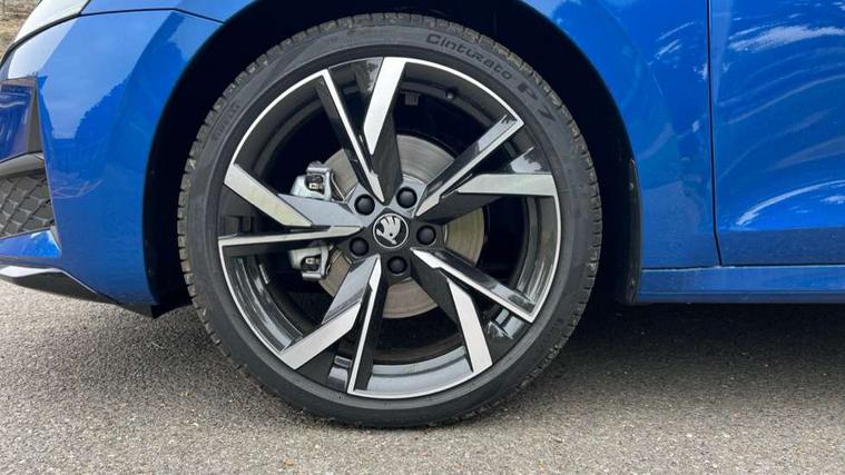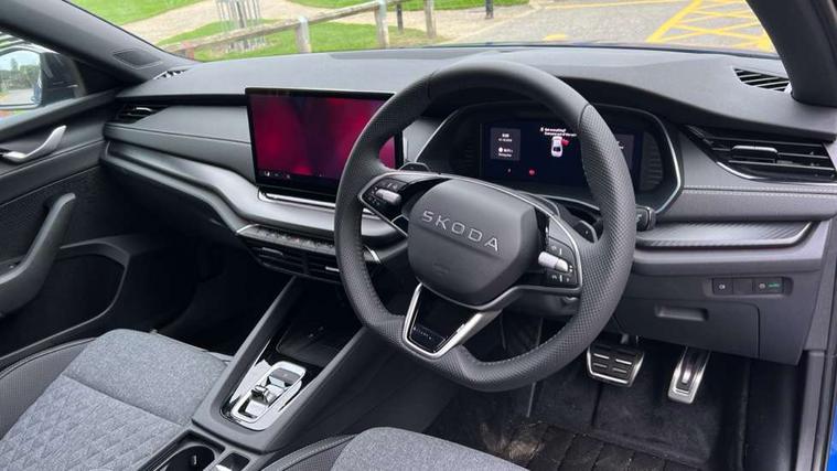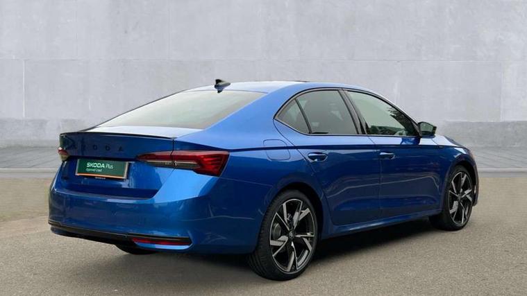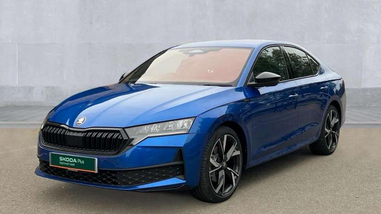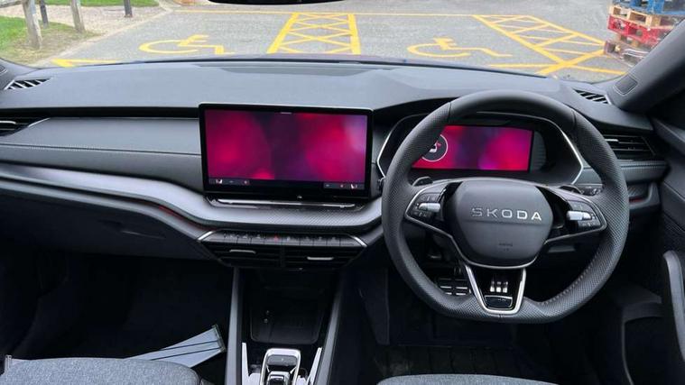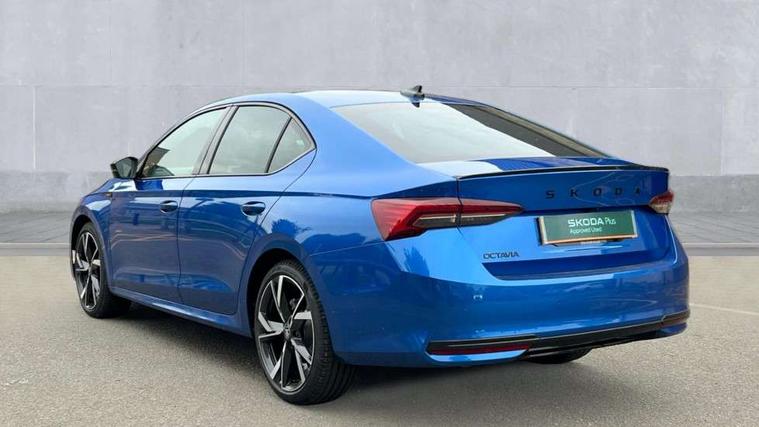 1x USB Typc C port in rear view mirror, 4x USB Type C ports - 2x in front centre console and 2x in rear (45W), Drive mode selection, Driver fatigue sensor, eCall emergency system, Front assist system, Progressive dynamic steering, Traffic sign recognition, Turn Assist, Virtual Cockpit - 10.25" digital display, Voice control system, Wireless charging (15W) with cooling function, Wireless SmartLink for Apple CarPlay and Android Auto, Sports suspension with 15mm lower, 13" touchscreen display with navigation, DAB Digital radio, Aero front windscreen wipers with intermittent function, Auto dimming rear view mirror, Body colour bumpers, Body colour door handles, Chrome strip in lower front bumper, Electric front and rear windows, Exterior gloss black sports styling including front grille, window surrounds, door mirrors and badging, Gloss black diffuser, Gloss black spoiler, Heated rear windscreen, High beam control, High level third brake light, Ice scraper in fuel cap, LED daytime running lights, Logo projection in front doors, Rain and light sensors, Rear fog light on one side and reversing lights on both sides, Rear privacy glass, Rear side wing doors, Rear wiper, 12 volt socket in boot, 3 rear headrests, 3 seat bench in 2nd row, 4 foldable roof handles, Aluminium pedals, Boot net programme, Front head restraints, Front sport seats, Heated front seats, Illuminated glovebox, Interior door handles in dark chrome, Jumbo Box storage, Luggage compartment lighting x2 lights, Mechanical rear seat release from boot, Parcel shelf - folding, Single front passenger seat, Steering wheel in black leather with black stitching, Storage compartments in left and right of boot, Sun visors with mirrors, Sunglasses storage, Three spoke leather sports multifunction steering wheel with paddles, Ticket holder, Umbrella in door panel, Unsplit rear bench seat, split folding backrest with centre armrest with cupholder, SportLine Design Selection pack - Octavia, 3x3 point rear seat belts, Alarm with interior monitoring, tilt sensor and back up horn, Curtain airbags and front side airbags, Driver and front passenger airbags, Drivers knee airbag, Electronic parking brake, ESC including ABS, EBV, MSR, ASR, EDS, HBA, DSR, Front central airbag, Hill hold assist, ISOFIX on front passenger seat and outer rear seats, Passenger airbag deactivate switch, Three point seat belts in front and rear, Two tone horn, Tyre pressure monitor, Visual and acoustic seat belt reminder, Warning reflectors in front door, Anti-theft wheel bolts, Keyless entry and start/stop, Remote central locking, Gloss black air vent surrounds,