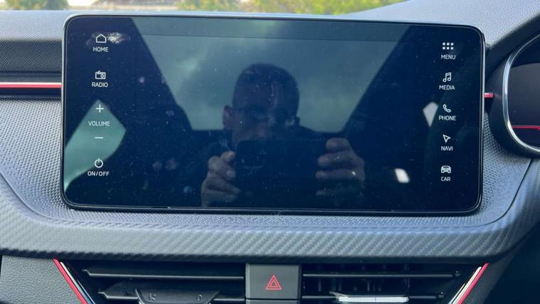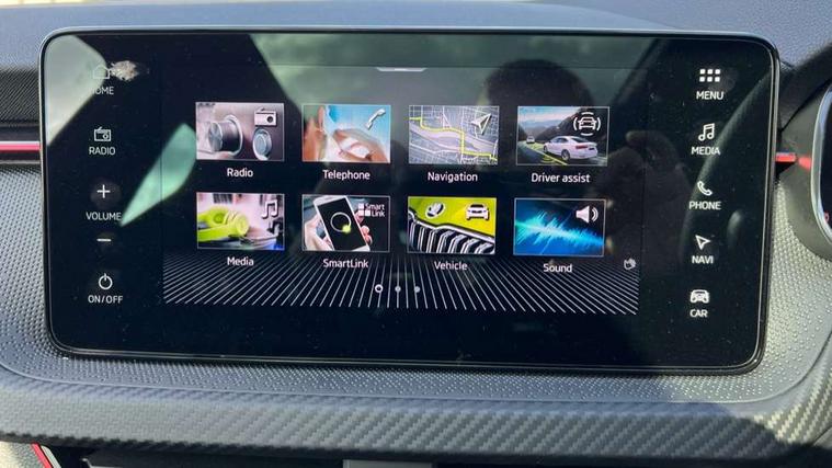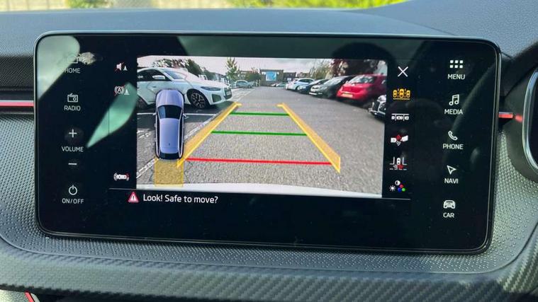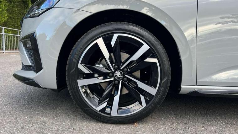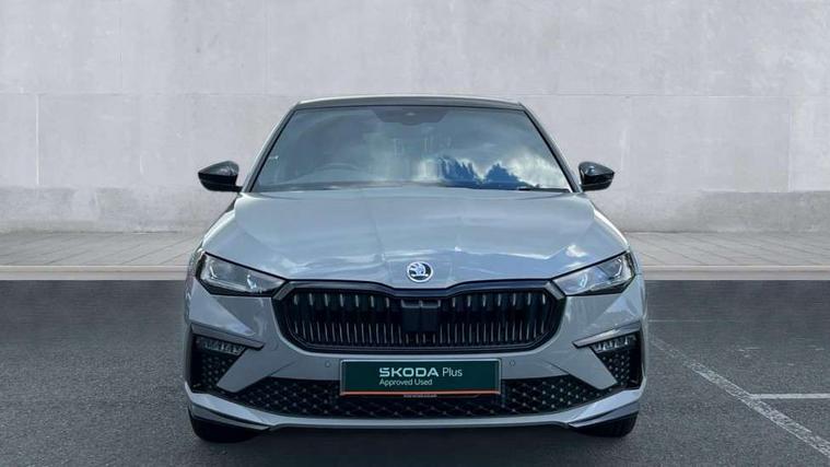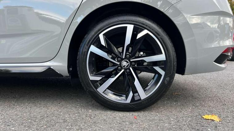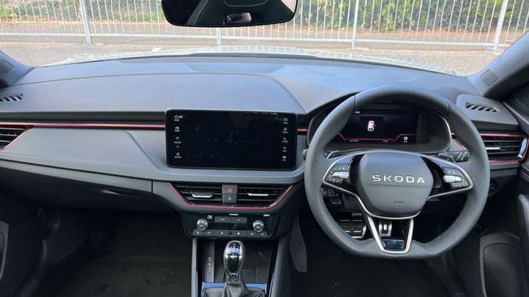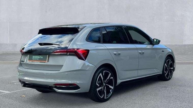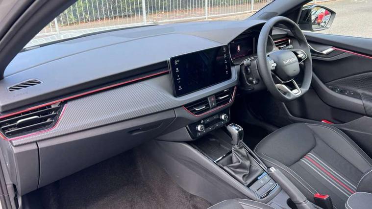 Advanced driver attention and drowsiness monitor, Bluetooth, e-Call (emergency call), Front assist system, PAS, Rear parking sensors, Rear view camera, Speed limiter, Tailgate, Traffic sign recognition, Virtual Cockpit - 10.25" digital display, Voice control system, Wireless smartlink, Drive mode select with Sport Chassis Control and ECO mode, 4 USB C ports, 8 Speakers, 9.2" Skoda navigation display, DAB radio, Auto dimming rear view mirror, Automatic headlight control with manual coming and leaving home feature, Automatic intermittent wipers, Black door mirrors, Black lettering on boot lid, Black radiator grille, Black rear diffuser, Black roof spoiler, Black window frames, Body colour bumpers, Body colour door handles, Extended tailgate glass, Front and rear electric windows, Heated rear window, LED 3rd brake light, LED daytime running lights, LED high beam, LED low beam, Light sensors, Monte carlo plaque, Panoramic glass roof, Privacy glass, Rear LED fog light, Rear side wing doors, Rear wiper, Tinted windows, Unique dark chrome design logo on alloy wheels, 12V socket in luggage compartment, 3 seat bench in 2nd row, Aluminium pedals, Ambient lighting in white/red, Black / White armrest stitching, Black roof headlining, Cargo elements, Chrome inner door handles, Door inserts in art.leather carbon, Driver and passenger sun visors with vanity mirror, Dual zone climate control, Front and rear roof lights, Front centre armrest, Front head restraints, Height adjustable driver seat, Height adjustable passenger seat, Ice scraper, Illuminated glove compartment, Inner circulation control with pollen filter, ISOFIX for front passenger seat, Isofix preparation for back seats, Leather gearknob and handbrake lever, Luggage net under rear parcel shelf, Manual lumbar support for front seats, Monte Carlo cloth upholstery, Net package and top tether hooks in boot space, Pocket on the back of both front seats, incl. mobile phone pockets, Rear centre armrest, Red hotstamping, Single front passenger seat, Skoda lettering on steering wheel, Sport seats, Textile floor mats, Third rear headrest, Ticket holder, Top tether for front passenger seat, Umbrella in driver's door, Light and view plus pack - Scala, 3x3 point rear seatbelts, ABS, Child locks, Curtain airbags and front side airbags, Disc brakes, Driver and front passenger airbags, ESP, Hill hold control, Manual leather parking brake, One tone horn, Passenger airbag switch off function, Seatbelt reminder for driver and front passenger, Tyre pressure monitoring system, Anti theft alarm system with interior monitoring, backup horn and towing protection, Anti-theft wheel bolts, Remote central locking with 2 remote folding keys, SAFE function for remote central locking, Carbon effect decorative inserts, 18" Ursa black diamond cut alloy wheels,