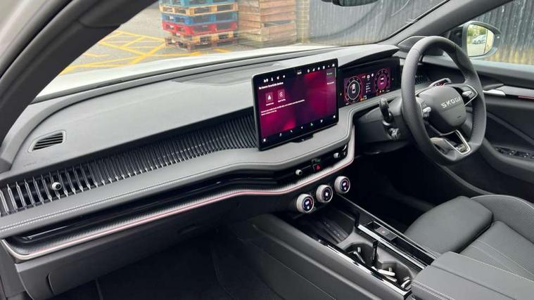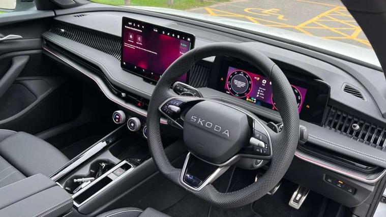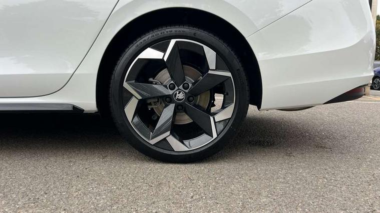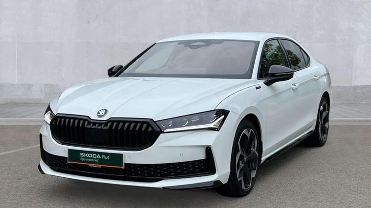 13" touchscreen display with satellite navigation, 4x USB-C ports (2x in front centre console and 2x in rear) (45W), Adaptive cruise control with speed assist, lane assist plus and traffic tram assist, Blind spot detection with door exit warning, Bluetooth system, CareConnect and Emergency Call, ChatGPT functionality, Driver fatigue sensor, Front assist with extended predictive pedestrian protection, Front cross traffic assist, PAS, Quick start all heating software functionality, Stop/start engine system, Traffic sign recognition, Turn assist with evasive assistance, Virtual Cockpit - 10.25" digital display, Voice control system, Washer for rear camera, Wireless charging for one smartphone (15W) with cooling function, Wireless smartlink apple carplay, SmartLink+ android auto, Dynamic chassis control plus with progressive dynamic steering, DAB Digital radio, Display cleaner, FM radio connection, Web radio connection, Acoustic side windows and interior noise suppression, Backdrop lighting, Black exterior styling window and grille surrounds, Body colour door handles, Dynamic range control with poor weather light and integrated fog light, Electrically adjustable, heated, folding and driver side auto-dimming door mirrors with memory function, integrated indicators and logo projection, Frameless auto-dimming rear view mirror with USB-C, Gloss black door mirrors, Ice scraper in fuel tank cap, LED 3rd brake light, Light assist with High beam control, Light assistant (coming/leaving home/tunnel light), Privacy glass, Rear fog lights (x2), Rear side wing doors, Skoda lettering in black, Sportline badging, Sports bumpers, Windscreen wipers with rain sensor, 12V socket 1x centre console 1x boot, 14-way electrically adjustable, memory, front seats with 4-way pneumatic lumbar support, and extendable thigh support with smart comfort entry aid, 2x cargo elements in boot, 2x light in boot, 3 seat bench in 2nd row, 60:40 Split folding rear seats, Aluminium pedals, Bottle holders in the front doors 1.5 litre bottle and rear 1.5 litre bottle, Cup holder in front with easy open mat, Front armrest with storage box, Front sports seats, Heated and ventilated front seats, Height adjustable front and rear head restraints, Illuminated glovebox, Interior lights with control switches, Isofix child seat fittings in outer rear and front passenger seats, LED front and rear reading lights, Single front passenger seat, Skoda lettering on steering wheel, Storage compartment with cover, Storage pockets on back of front seats, Sun visors with illuminated vanity mirrors, Ticket holder on A Pillar, Tri zone climate control, Umbrella in driver's door, Light and view package - Superb, Transport package - Superb Hatchback, 3 rear seatbelts, 8 Airbags - Front driver and passenger, front side driver and passenger, centre, curtain front and rear, drivers knee, Crew protect assist, Driver and passenger seatbelts with warning light, Electronic parking brake, ESC including ABS, EBV, MSR, ASR, EDS, HBA, DSR, RBS, CBC, multi-collision brake (MKB) and Auto hold, Hill hold assist, Power operated child lock in rear doors, Alarm with interior monitoring tilt sensor and back up horn, Backrest remote release from trunk, Electronic engine immobiliser, Keyless start/stop, Remote central locking with SAFE system, Third key, Walk away locking, Decorative front door sills, 19" Torcular polished black alloy wheels with anti theft wheel bolts,