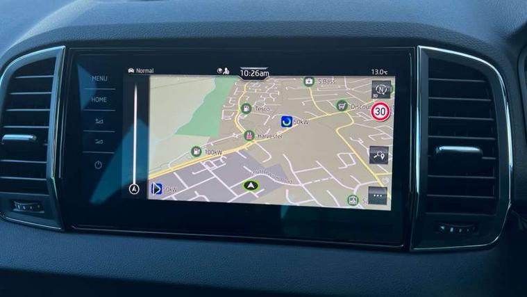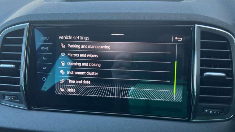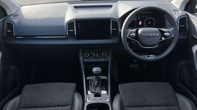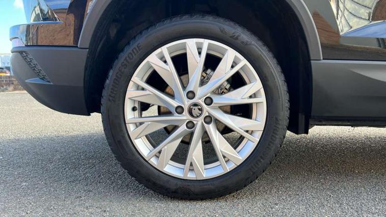 Advanced driver attention and drowsiness monitor, Drive Mode Selection including ECO function, Electro-mechanical PAS, Emergency services call system, Outside temperature gauge, Sensor for driver assistance systems, Service interval indicator, SmartLink wireless for Apple and wired for Android, Start/stop system with regenerative braking, Traffic sign recognition, USB C Port x 2 in front centre console, Virtual Cockpit - 10.25" digital display, Virtual pedal with electrically operated boot door, Wireless smartphone charging, DAB radio with Bluetooth, USB connection, Acoustic glass, Aero front windscreen wipers with intermittent function, Auto dimming rear view mirror with light and rain sensors, Black electric window control buttons, Body colour door mirrors and handles, Electric front and rear windows with child proof lock, Extended rear roof spoiler, Heated rear windscreen, LED daytime running lights, LED rear lights with high functionality welcome effect and dynamic indicators, Light assistant (coming/leaving home/tunnel light), Plastic scuff plates in door apertures, Privacy glass, Rear side wing doors, Rear window wiper with washer system and intermittent control, Safety reflectors on front doors, Third brake light, Unique dark chrome design logo on alloy wheels, 1.5 litre bottle holders in driver and front passenger door panels, 12V socket in boot, 12v socket in front centre armrest with storage compartment and rear air vents, 2 spoke leather heated multifunction steering wheel with DSG paddles, 2 x Tablet holder, 3 rear height adjustable headrests, 3 seat bench in 2nd row, 4 foldable roof handles with rear coat hooks, Black floor carpet, Cargo elements in boot, Chrome inner door handles, Decorative door sills with KAROQ badging, Foldable hooks in the boot, Front head restraints, Height adjustable front three point seats belts with tensioners, Height/reach adjust steering wheel, Ice scraper, Illuminated glovebox, Illuminated luggage compartment, Interior noise suppression, Isofix child seat preparation for front passenger seat, Isofix child seat preparation outer rear, Manual lumbar support for front seats, Pearl grey interior ceiling, Pen holder, Pollen filter, Rear boot cover, Rear package tray, Rear reading lights, Rubbish bin door, Safety vest holder, Single front passenger seat, Skoda lettering on steering wheel, Storage box in upper central dashboard closed, Sunvisors with illuminated vanity mirrors, Textile floor mats, Ticket holder, Columbus pack - Karoq, Design Pack - Karoq, Non Smokers pack, Parking pack - Karoq, Automatic door unlocking in case of crash, Automatic fuel cut off in case of crash, Driver airbag, Electronic parking brake with auto hold function, Emergency rear braking signal, ESC (incl. ABS+MSR+ASR+EDS+HBA+DSR+RBS+MKB), Front side airbags, Head airbags, Hill hold control, Knee airbags, Passenger airbag with switch-off function, Pedestrian monitor, Power operated child safety locks, Seatbelt reminder signalisation and pretensioner for all seats, Three point seatbelts rear, Two tone horn, Tyre pressure monitor, Alarm with interior monitoring, back up horn and tilt sensor with safe function, Electronic engine immobiliser, Keyless entry and start/stop, Remote central locking with 2 remote folding keys, Black centre console, Chrome framed air vents, Satin black dashboard, Anti-theft wheel bolts protection, Breakdown and tool kit,