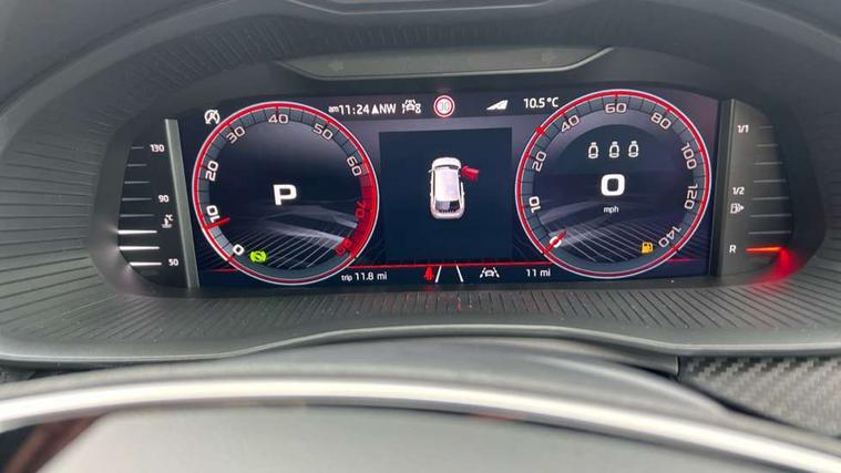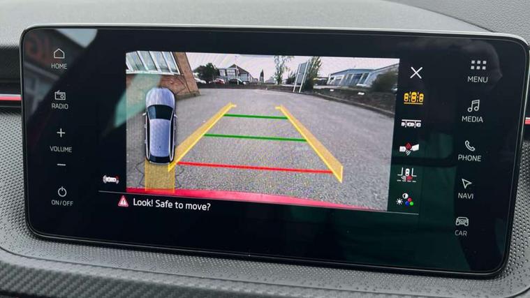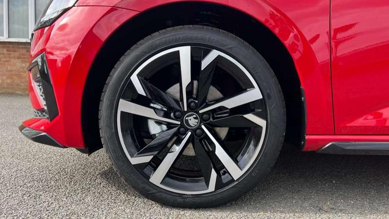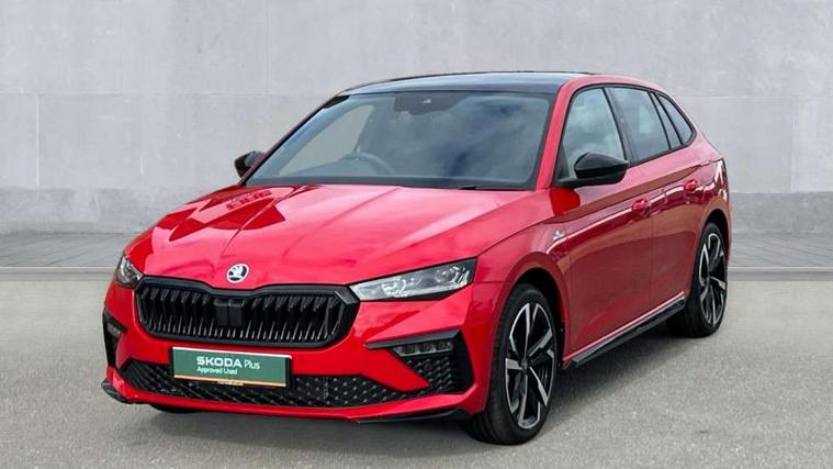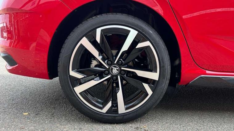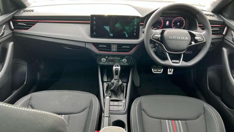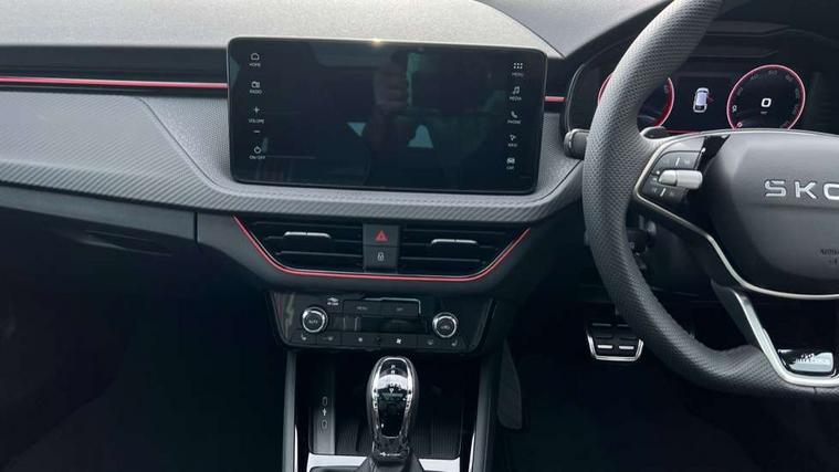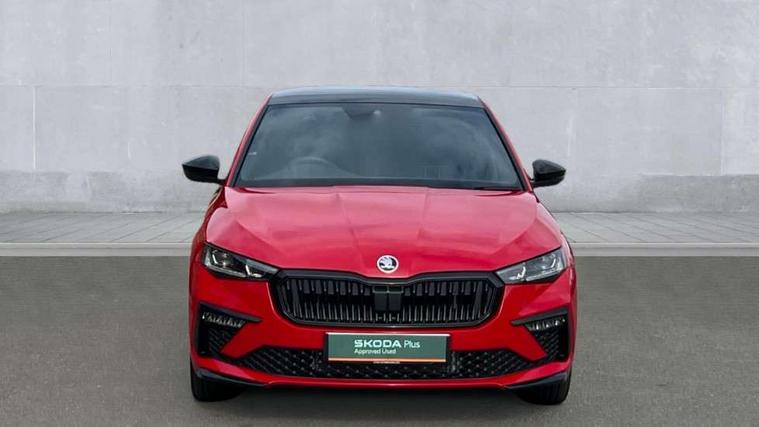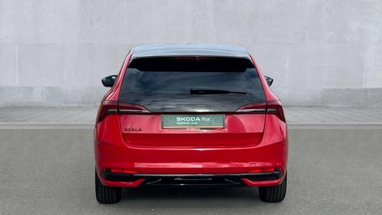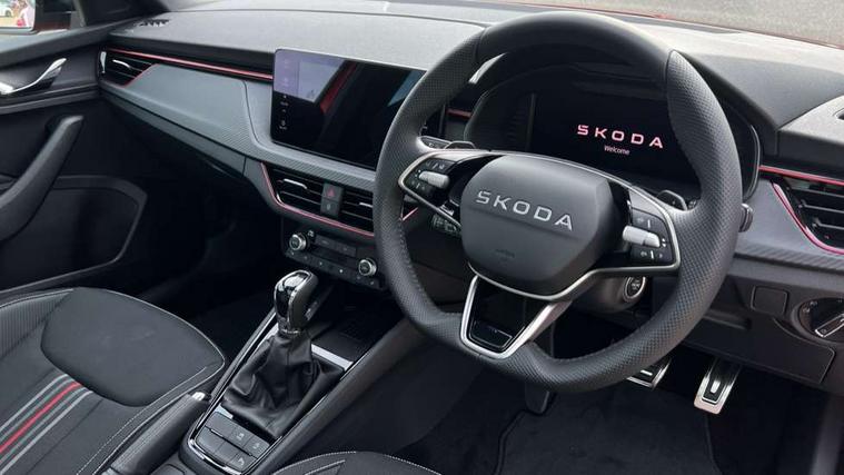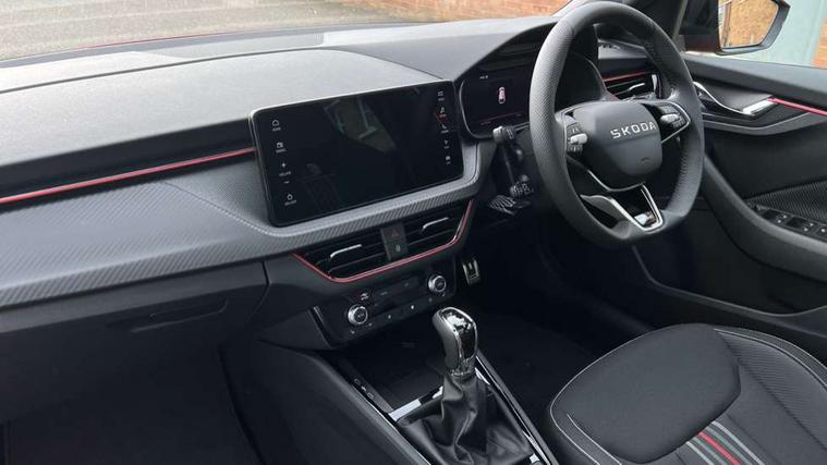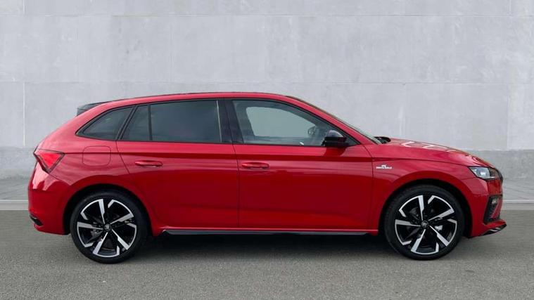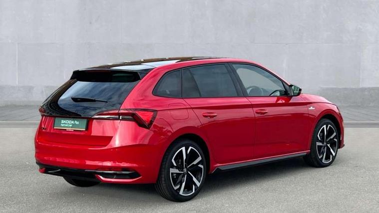 Advanced driver attention and drowsiness monitor, Bluetooth, e-Call (emergency call), Front assist system, PAS, Rear parking sensors, Rear view camera, Speed limiter, Tailgate, Traffic sign recognition, Virtual Cockpit - 10.25" digital display, Voice control system, Wireless smartlink, Drive mode select with Sport Chassis Control and ECO mode, 4 USB C ports, 8 Speakers, 9.2" Skoda navigation display, DAB radio, Auto dimming rear view mirror, Automatic headlight control with manual coming and leaving home feature, Automatic intermittent wipers, Black door mirrors, Black lettering on boot lid, Black radiator grille, Black rear diffuser, Black roof spoiler, Black window frames, Body colour bumpers, Body colour door handles, Extended tailgate glass, Front and rear electric windows, Heated rear window, LED 3rd brake light, LED daytime running lights, LED high beam, LED low beam, Light sensors, Monte carlo plaque, Panoramic glass roof, Privacy glass, Rear LED fog light, Rear side wing doors, Rear wiper, Tinted windows, Unique dark chrome design logo on alloy wheels, 12V socket in luggage compartment, 3 seat bench in 2nd row, Aluminium pedals, Ambient lighting in white/red, Black / White armrest stitching, Black roof headlining, Cargo elements, Chrome inner door handles, Door inserts in art.leather carbon, Driver and passenger sun visors with vanity mirror, Dual zone climate control, Front and rear roof lights, Front centre armrest, Front head restraints, Height adjustable driver seat, Height adjustable passenger seat, Ice scraper, Illuminated glove compartment, Inner circulation control with pollen filter, ISOFIX for front passenger seat, Isofix preparation for back seats, Leather gearknob and handbrake lever, Luggage net under rear parcel shelf, Manual lumbar support for front seats, Monte Carlo cloth upholstery, Net package and top tether hooks in boot space, Pocket on the back of both front seats, incl. mobile phone pockets, Rear centre armrest, Red hotstamping, Single front passenger seat, Skoda lettering on steering wheel, Sport seats, Textile floor mats, Third rear headrest, Ticket holder, Top tether for front passenger seat, Umbrella in driver's door, Light and view plus pack - Scala, 3x3 point rear seatbelts, ABS, Child locks, Curtain airbags and front side airbags, Disc brakes, Driver and front passenger airbags, ESP, Hill hold control, Manual leather parking brake, One tone horn, Passenger airbag switch off function, Seatbelt reminder for driver and front passenger, Tyre pressure monitoring system, Anti theft alarm system with interior monitoring, backup horn and towing protection, Anti-theft wheel bolts, Remote central locking with 2 remote folding keys, SAFE function for remote central locking, Carbon effect decorative inserts, 18" Ursa black diamond cut alloy wheels,