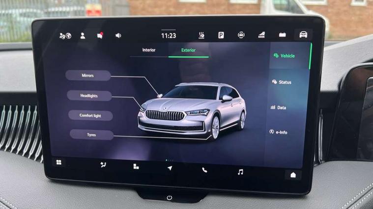 13" touchscreen display with satellite navigation, 4x USB-C ports (2x in front centre console and 2x in rear) (45W), Adaptive cruise control with speed assist, lane assist plus and traffic tram assist, Blind spot detection with door exit warning, Bluetooth system, CareConnect and Emergency Call, ChatGPT functionality, Drive mode selection, Driver fatigue sensor, Front assist with extended predictive pedestrian protection, Front cross traffic assist, PAS, Quick start all heating software functionality, Remote park assist, Stop/start engine system, Traffic sign recognition, Turn assist with evasive assistance, Virtual Cockpit - 10.25" digital display, Voice control system, Washer for rear camera, Wireless charging for one smartphone (15W) with cooling function, Wireless smartlink apple carplay, SmartLink+ android auto, Dynamic chassis control plus with progressive dynamic steering, Mode 3 charging cable, Canton sound system - 14+1 speaker, DAB Digital radio, Display cleaner, FM radio connection, Web radio connection, Acoustic side windows and interior noise suppression, Backdrop lighting, Body colour door handles, Body coloured door mirrors, Chrome roof rails, Chrome window surround, Dynamic range control with poor weather light and integrated fog light, Electrically adjustable, heated, folding and driver side auto-dimming door mirrors with memory function, integrated indicators and logo projection, Frameless auto-dimming rear view mirror with USB-C, Ice scraper in fuel tank cap, LED 3rd brake light, Light assist with High beam control, Light assistant (coming/leaving home/tunnel light), Privacy glass, Rear fog lights (x2), Rear roof spoiler, Rear side wing doors, Rear windscreen wiper, Unique dark chrome design logo on alloy wheels, Unique dark chrome grille surround with dark chrome rib elements, plus dark chrome rear diffuser strip, Windscreen wipers with rain sensor, 12V socket 1x centre console 1x boot, 14-way electrically adjustable, memory, front seats with 4-way pneumatic lumbar support, and extendable thigh support with smart comfort entry aid, 2x cargo elements in boot, 2x light in boot, 3 seat bench in 2nd row, 4x foldable bag hooks in boot, 60:40 Split folding rear seats, Advanced massage function for front seats, Bottle holders in the front doors 1.5 litre bottle and rear 1.5 litre bottle, Cup holder in front with easy open mat, Front armrest with storage box, Front sports comfort seats, Heated and ventilated front seats, Height adjustable front and rear head restraints, Illuminated glovebox, Interior lights with control switches, Isofix child seat fittings in outer rear and front passenger seats, LED front and rear reading lights, Single front passenger seat, Skoda lettering on steering wheel, Storage compartment with cover, Storage pockets on back of front seats, Sun visors with illuminated vanity mirrors, Ticket holder on A Pillar, Tri zone climate control, Umbrella in driver's door, Light and view package - Superb, Parking package - Superb, Transport package - Superb Estate, Winter package - Superb, 3 rear seatbelts, 8 Airbags - Front driver and passenger, front side driver and passenger, centre, curtain front and rear, drivers knee, Crew protect assist, Driver and passenger seatbelts with warning light, Electronic parking brake, ESC including ABS, EBV, MSR, ASR, EDS, HBA, DSR, RBS, CBC, multi-collision brake (MKB) and Auto hold, Hill hold assist, Power operated child lock in rear doors, Alarm with interior monitoring tilt sensor and back up horn, Backrest remote release from trunk, Electronic engine immobiliser, Keyless start/stop, Remote central locking with SAFE system, Third key, Walk away locking, Decorative front door sills, Tyre repair kit,
